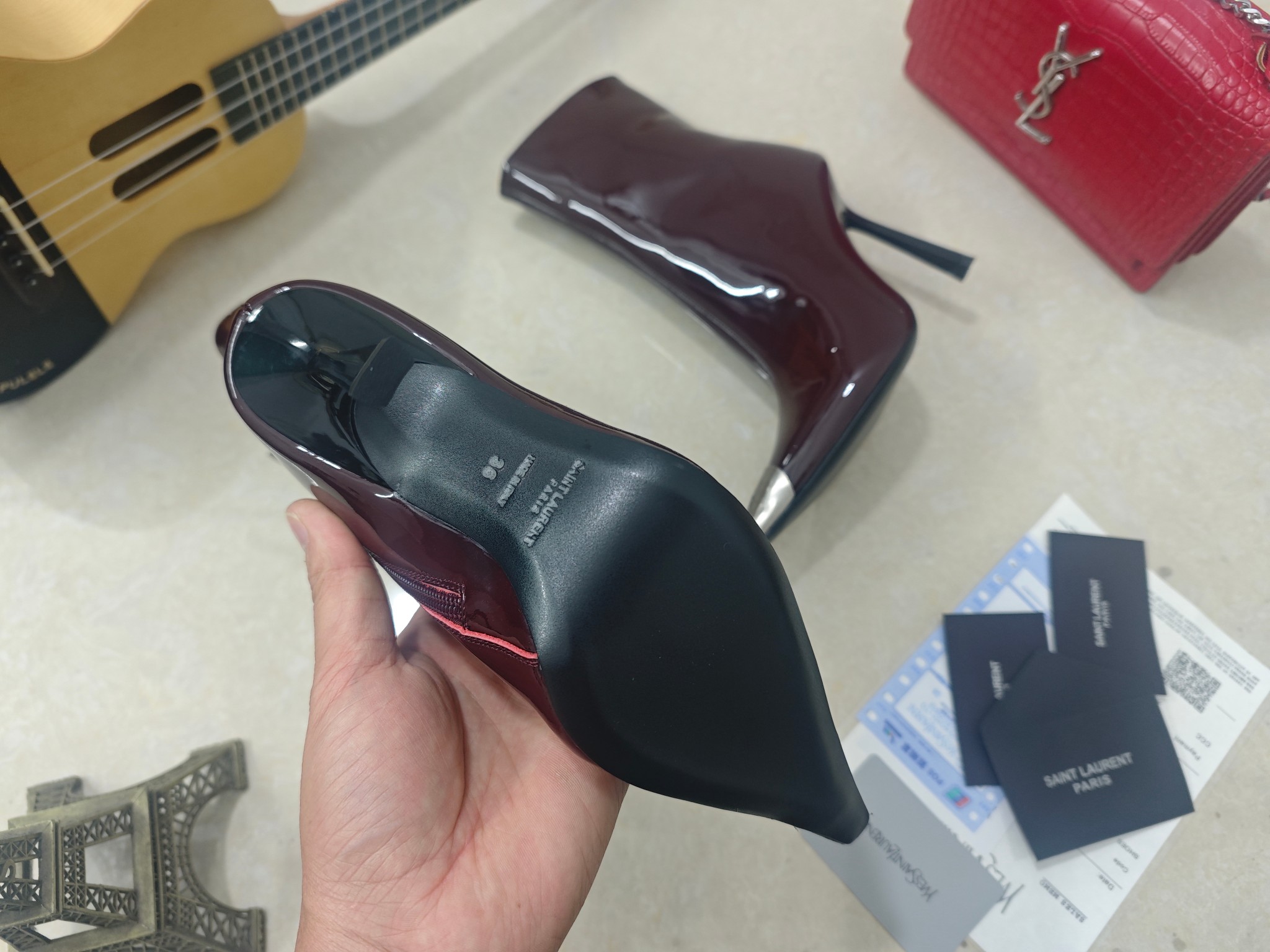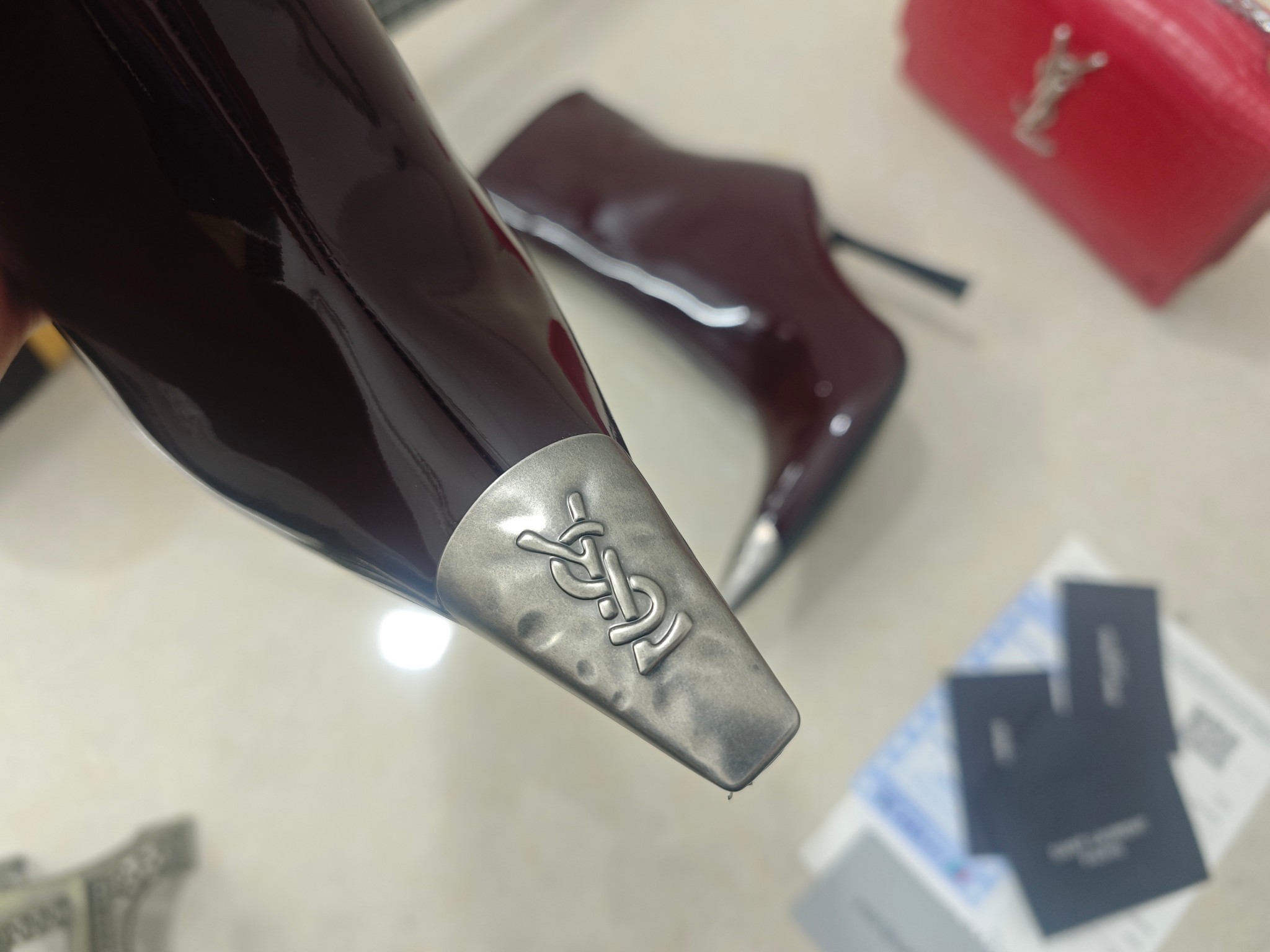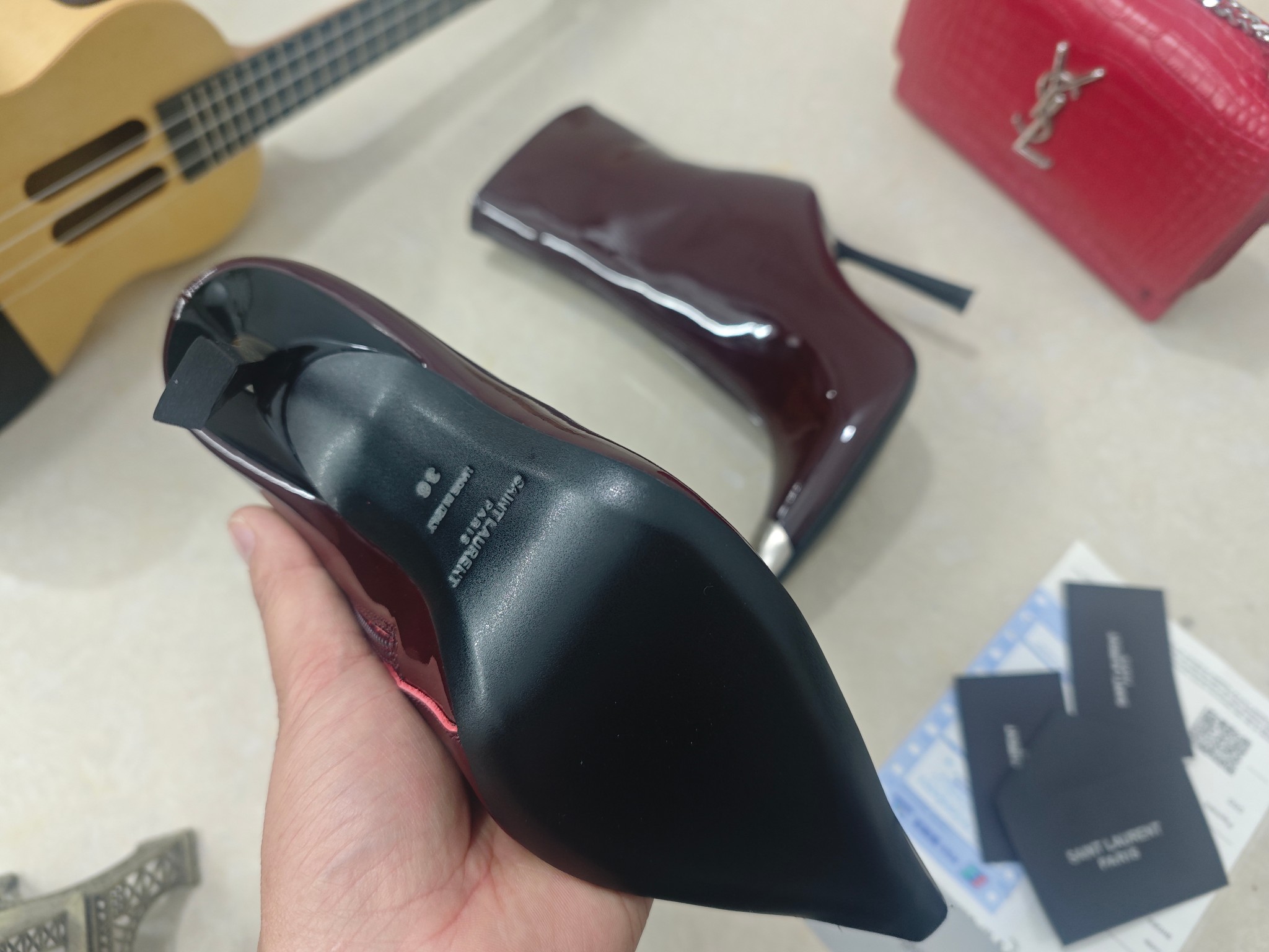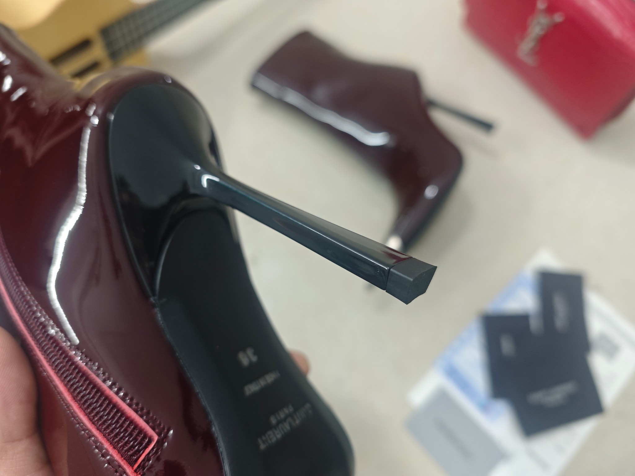 這款鞋子是AAAAA 1:1 質量(非常棒). 使用了和原版一模一樣的材料. 商標部分也保持了和聖羅蘭/Saint Laurent一樣. 圖片拍攝是實物鞋子拍攝, 您所收到的實物保證和我們圖片一模一樣.