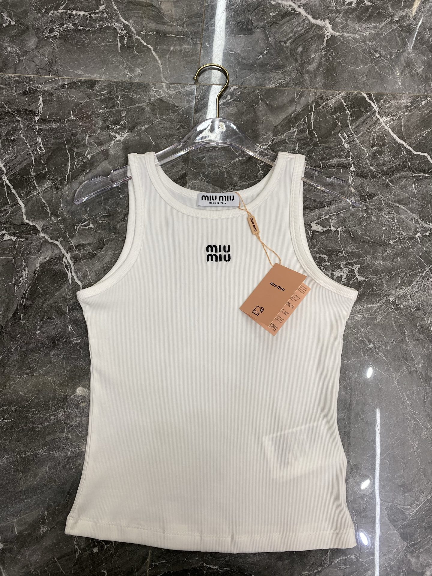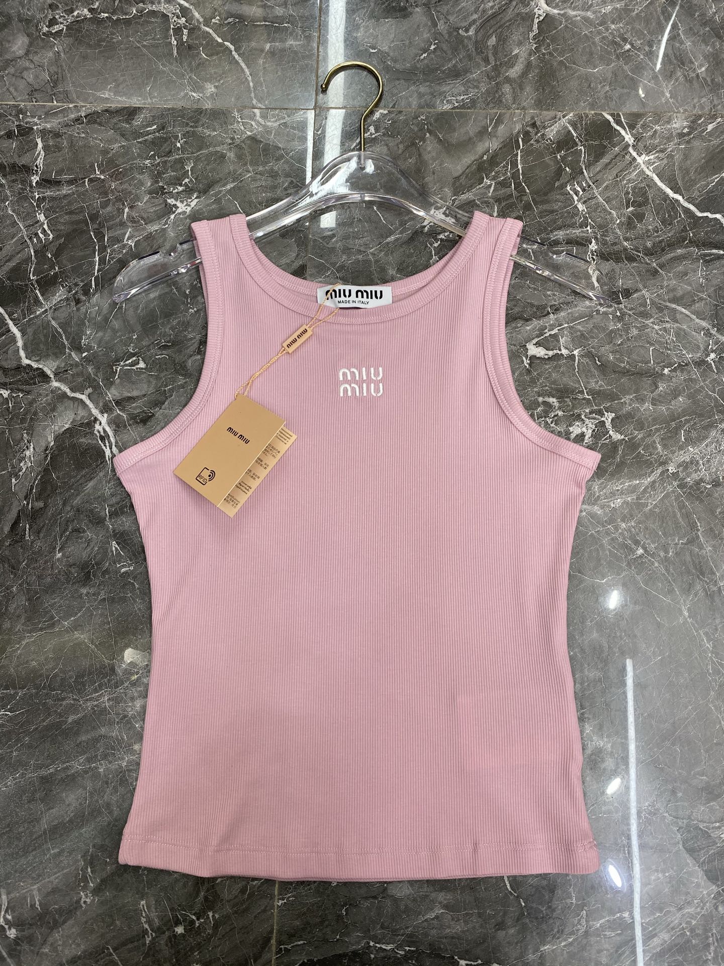 這款衣服是AAAAA 1:1 質量(非常棒). 使用了和原版一模一樣的材料. 商標部分也保持了和繆繆/Miu Miu一樣. 圖片拍攝是實物衣服拍攝, 您所收到的實物保證和我們圖片一模一樣.