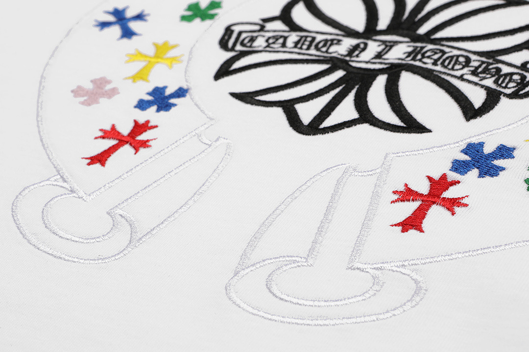 這款衣服是AAAAA 1:1 質量(非常棒). 使用了和原版一模一樣的材料. 商標部分也保持了和鉻心/Chrome Hearts一樣. 圖片拍攝是實物衣服拍攝, 您所收到的實物保證和我們圖片一模一樣.
