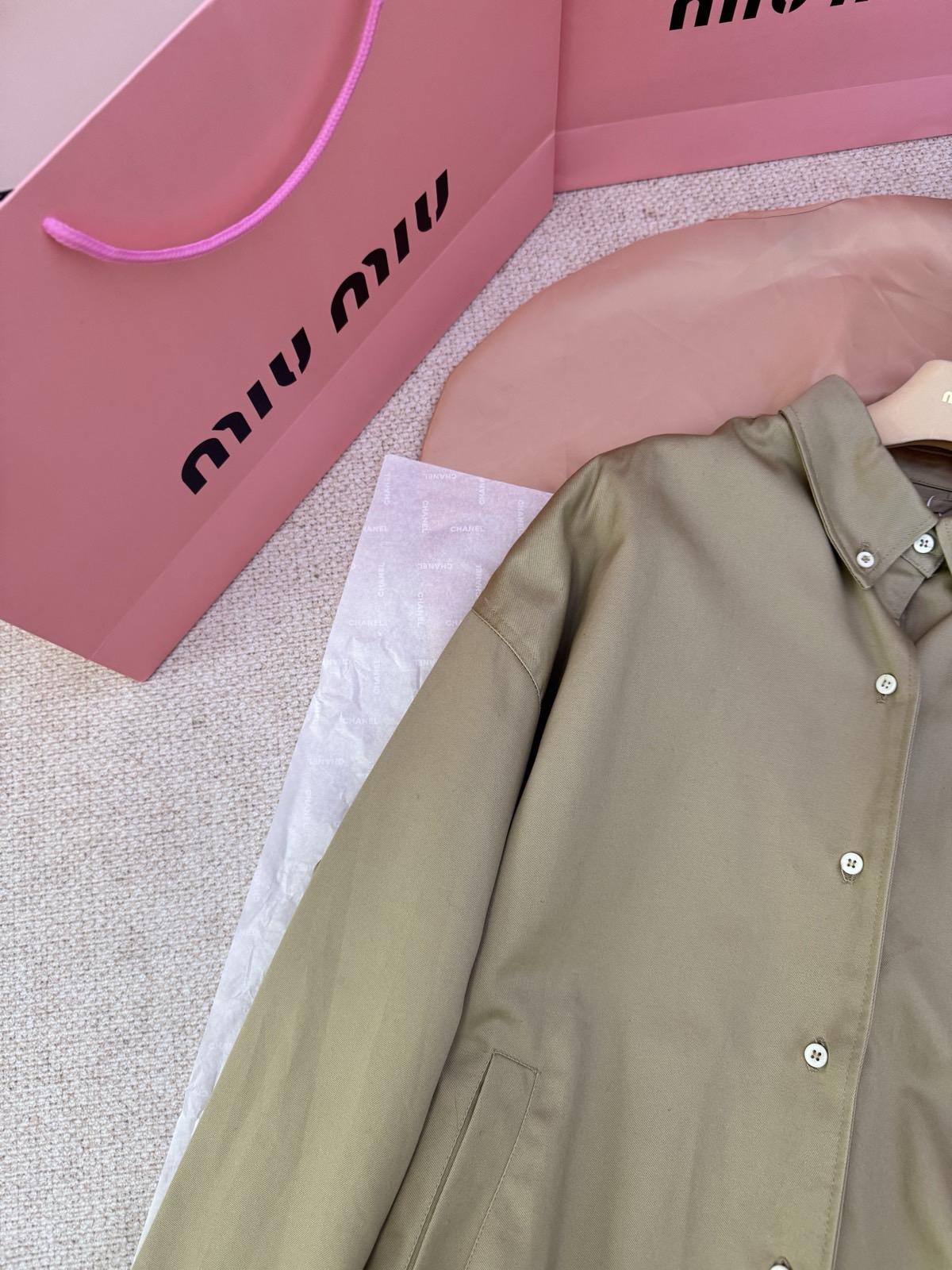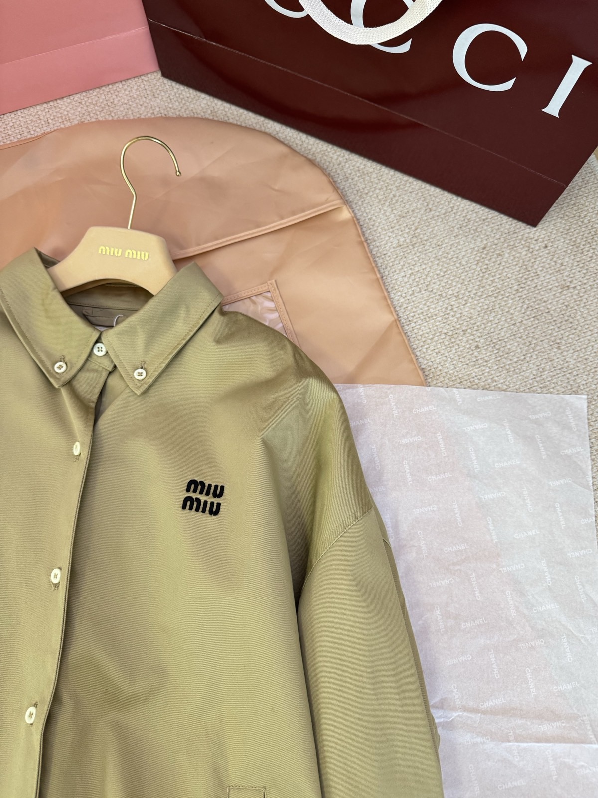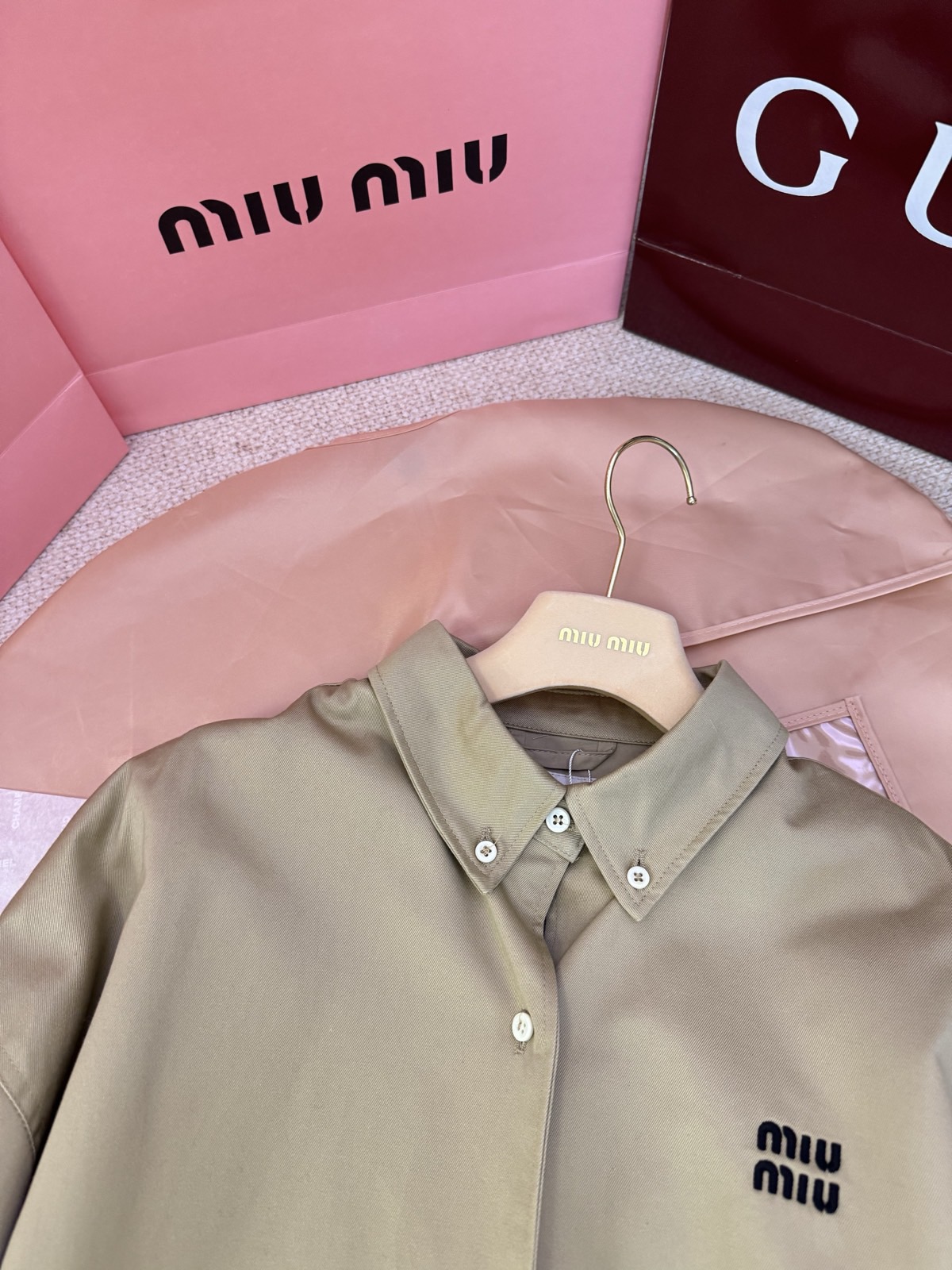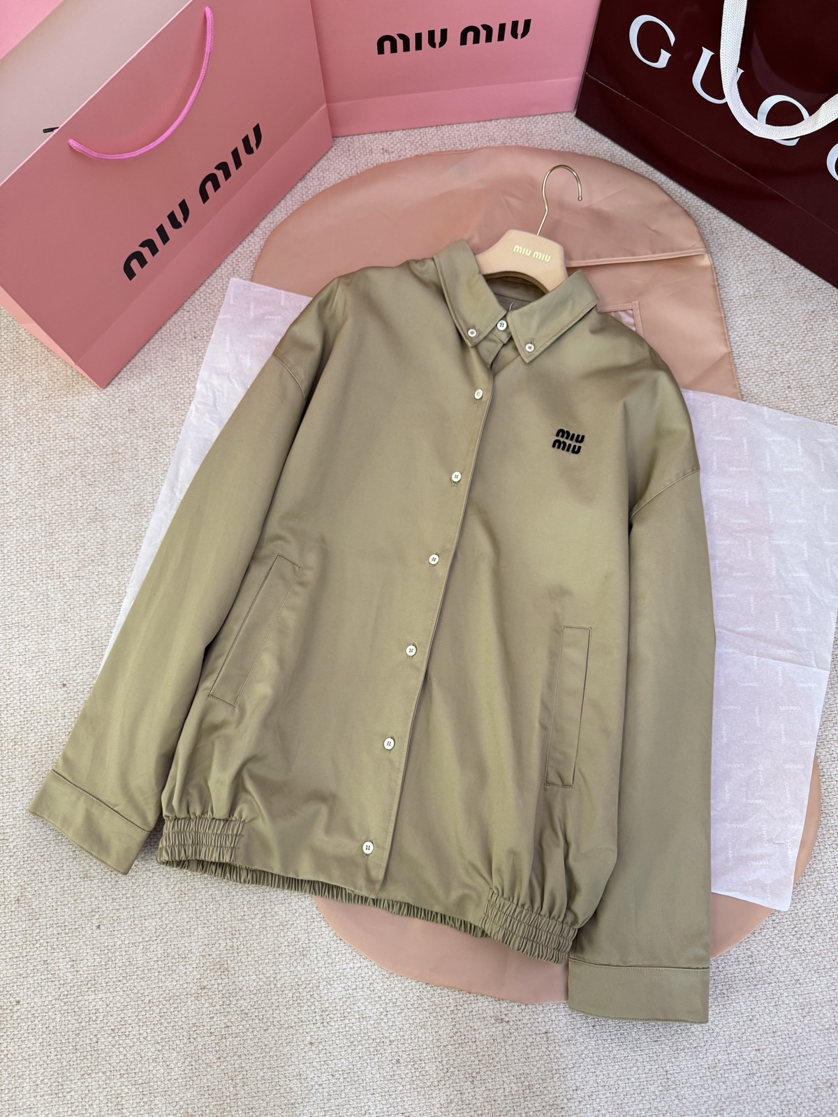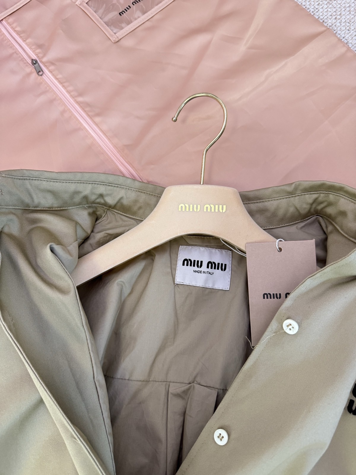 這款衣服是AAAAA 1:1 質量(非常棒). 使用了和原版一模一樣的材料. 商標部分也保持了和繆繆/Miu Miu一樣. 圖片拍攝是實物衣服拍攝, 您所收到的實物保證和我們圖片一模一樣.