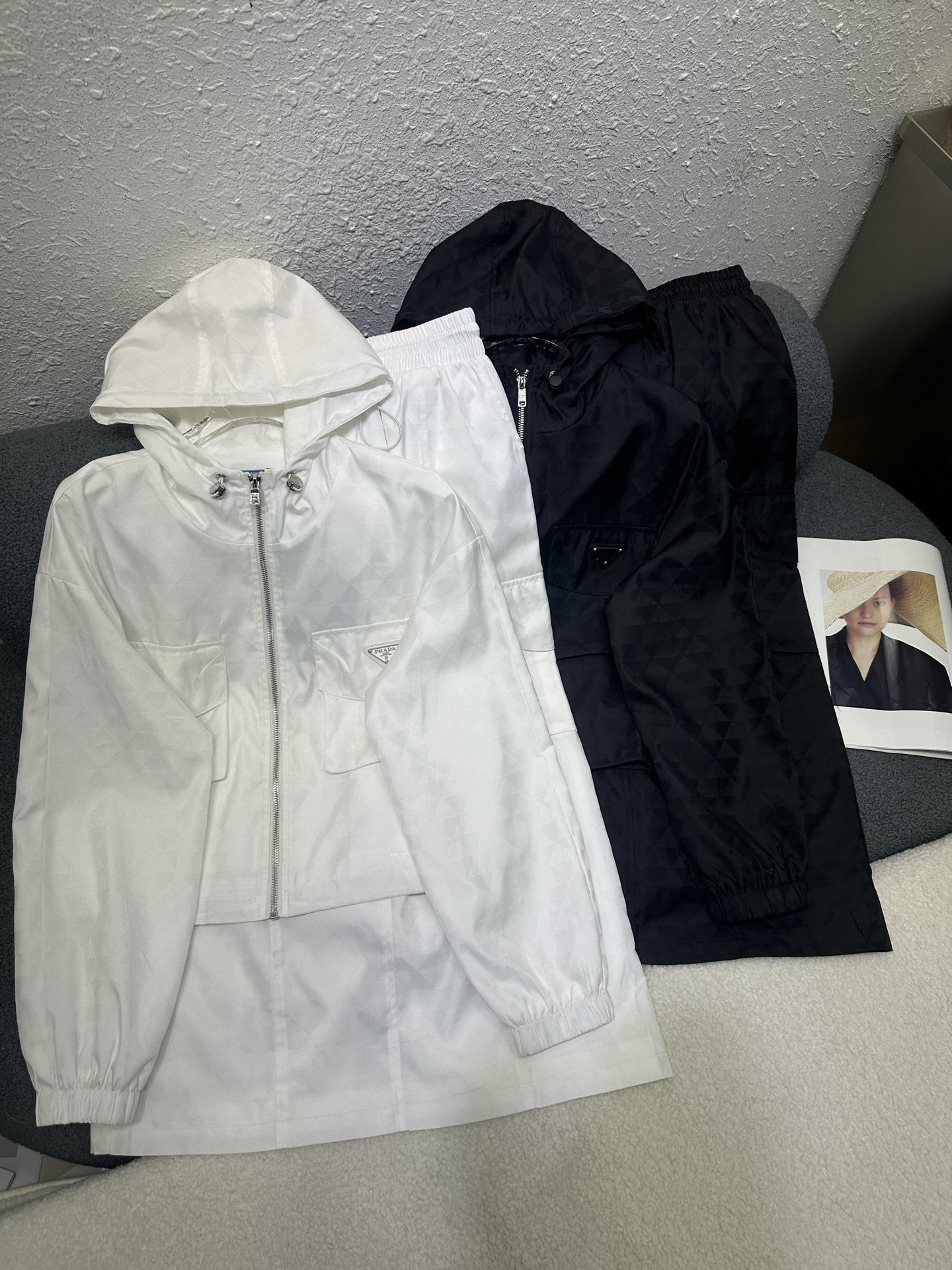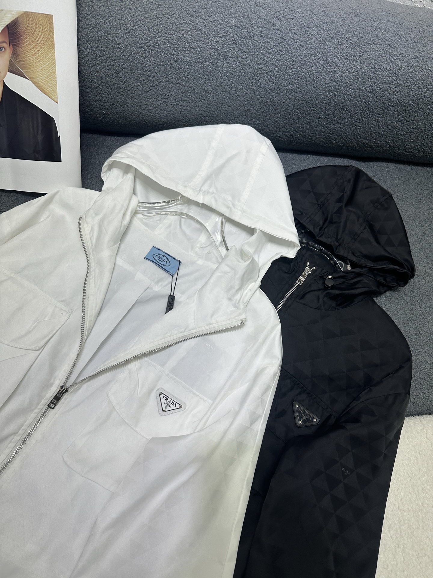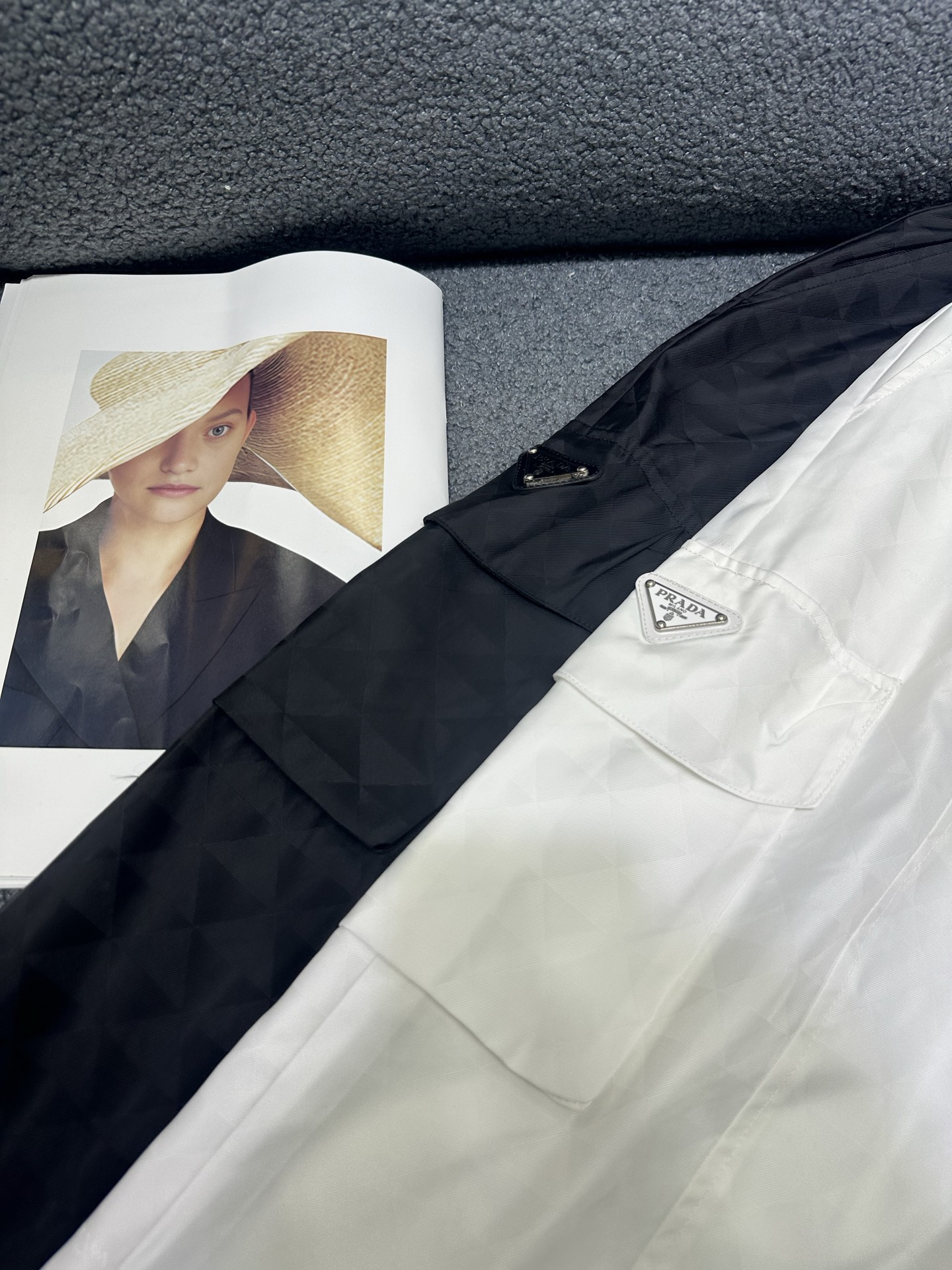 這款衣服是AAAAA 1:1 質量(非常棒). 使用了和原版一模一樣的材料. 商標部分也保持了和普拉達/Prada一樣. 圖片拍攝是實物衣服拍攝, 您所收到的實物保證和我們圖片一模一樣.
