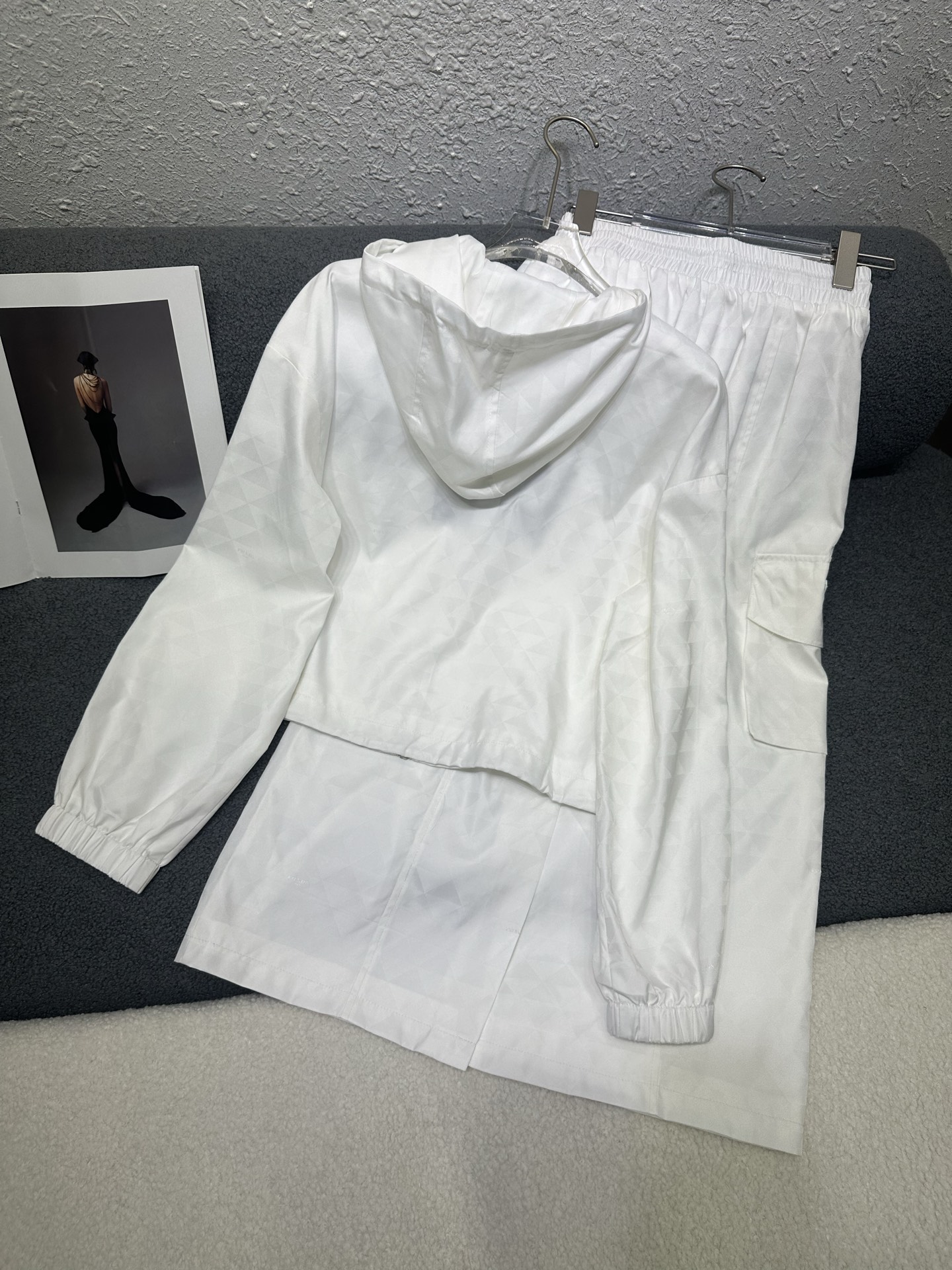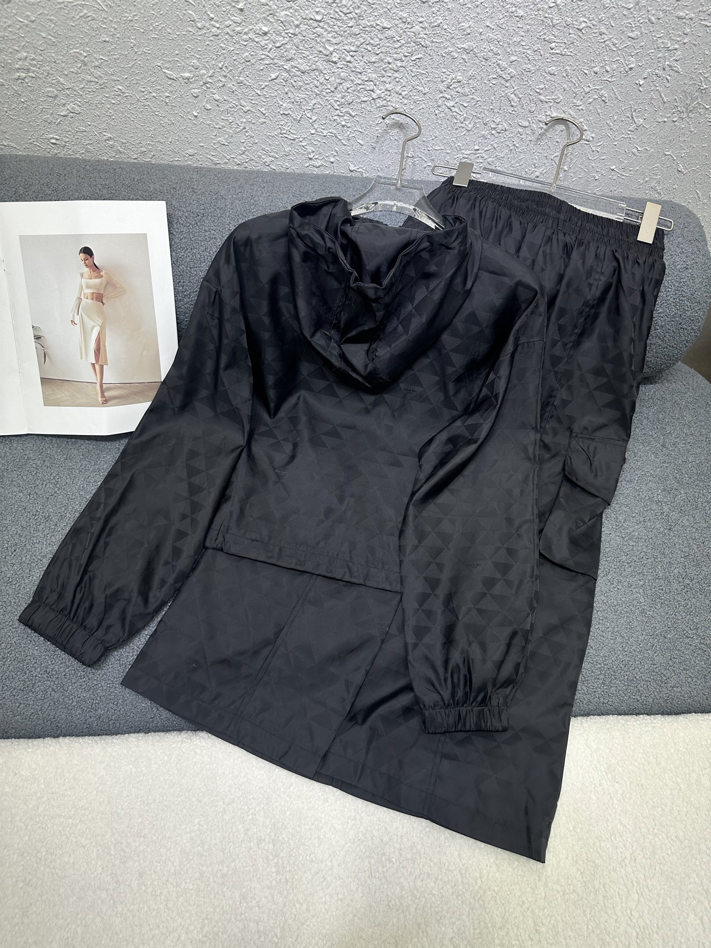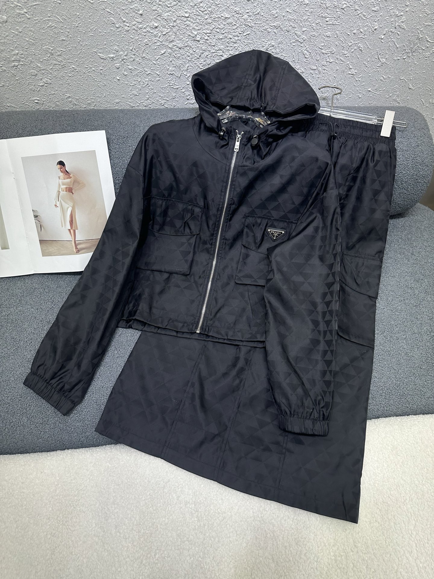 這款衣服是AAAAA 1:1 質量(非常棒). 使用了和原版一模一樣的材料. 商標部分也保持了和普拉達/Prada一樣. 圖片拍攝是實物衣服拍攝, 您所收到的實物保證和我們圖片一模一樣.