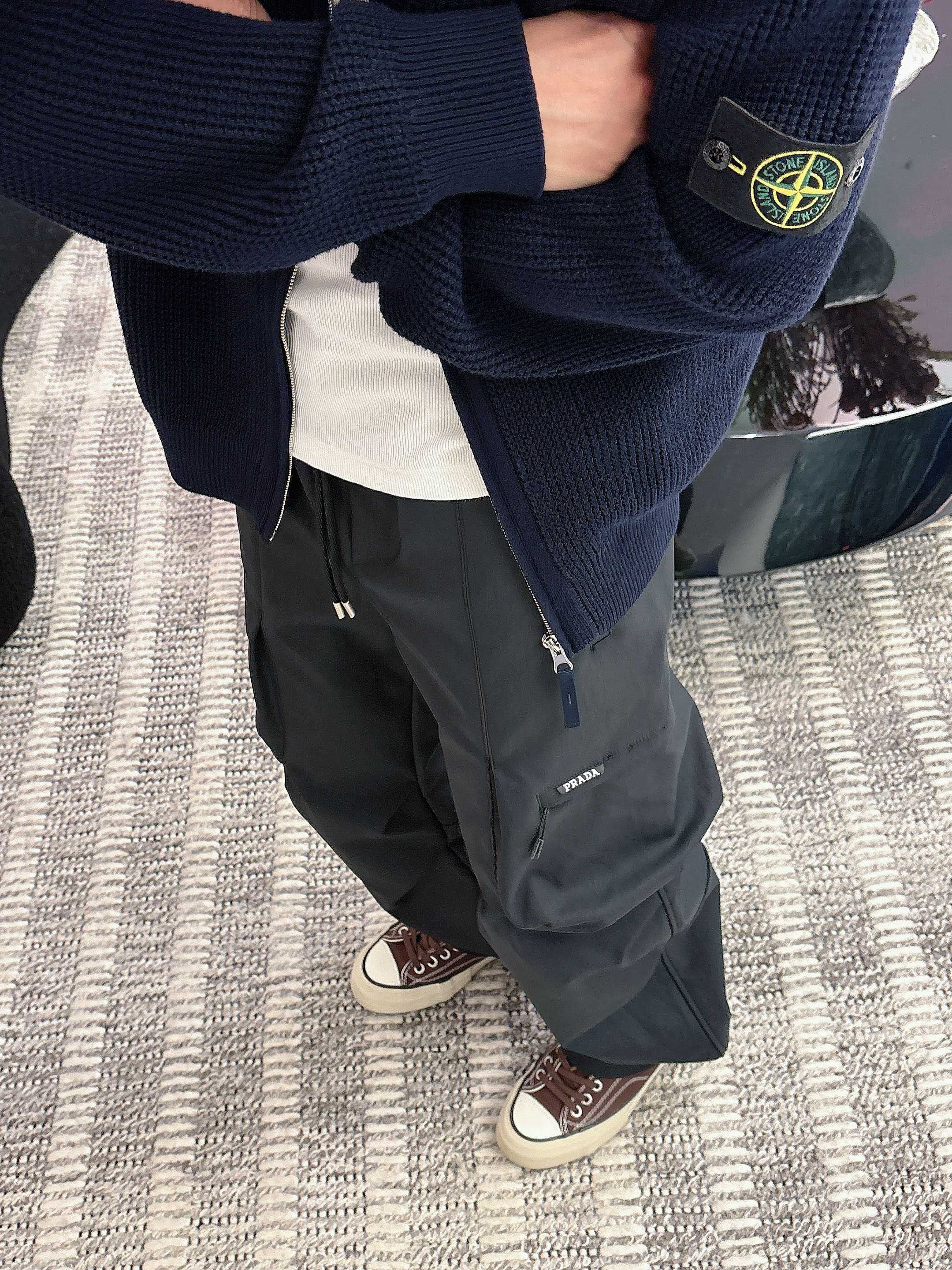 這款衣服是AAAAA 1:1 質量(非常棒). 使用了和原版一模一樣的材料. 商標部分也保持了和普拉達/Prada一樣. 圖片拍攝是實物衣服拍攝, 您所收到的實物保證和我們圖片一模一樣.