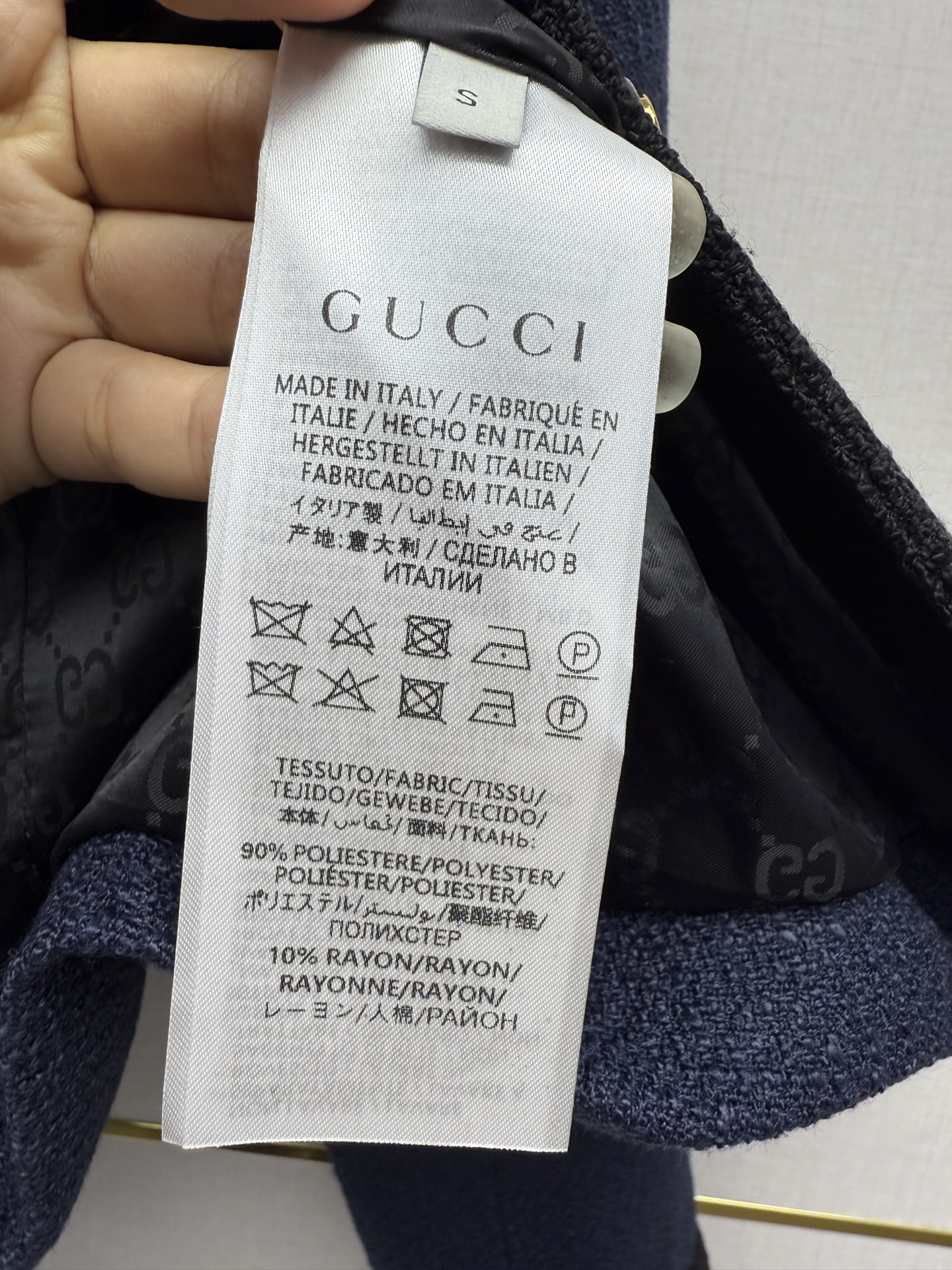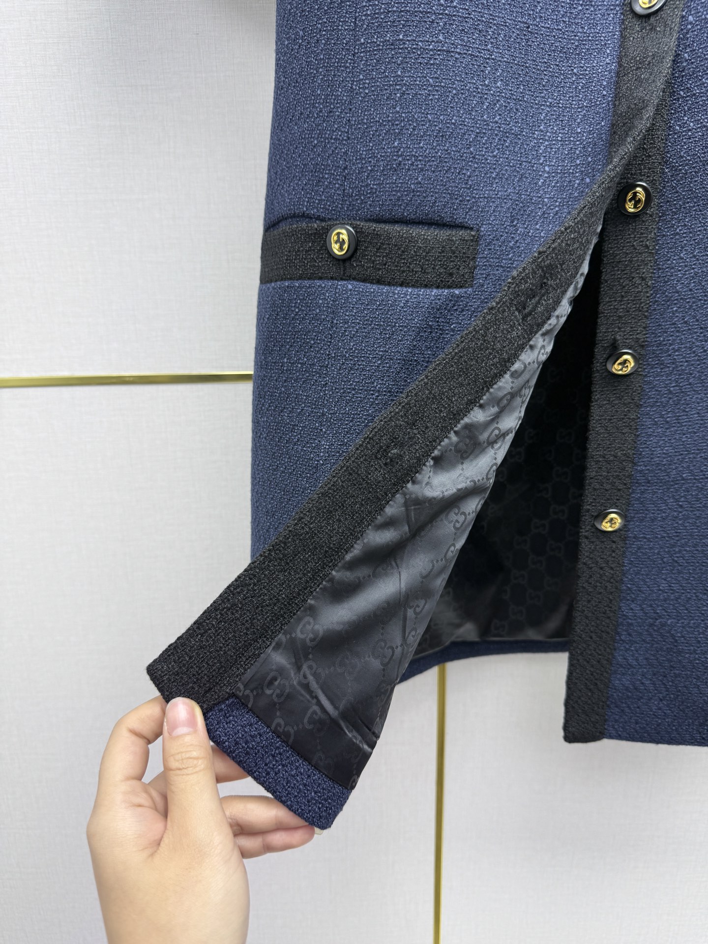 這款衣服是AAAAA 1:1 質量(非常棒). 使用了和原版一模一樣的材料. 商標部分也保持了和古奇/Gucci一樣. 圖片拍攝是實物衣服拍攝, 您所收到的實物保證和我們圖片一模一樣.