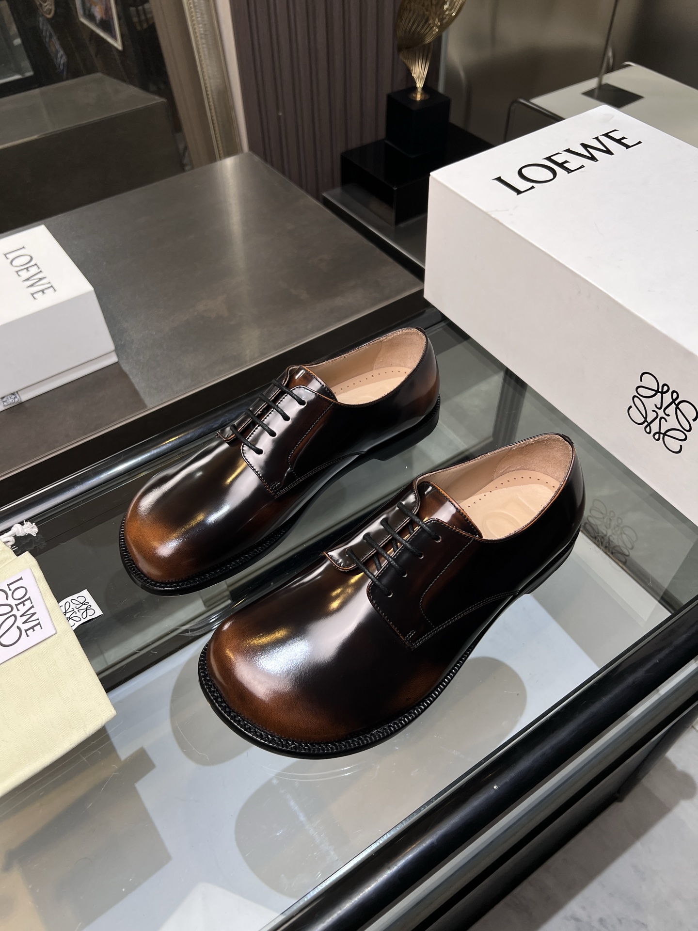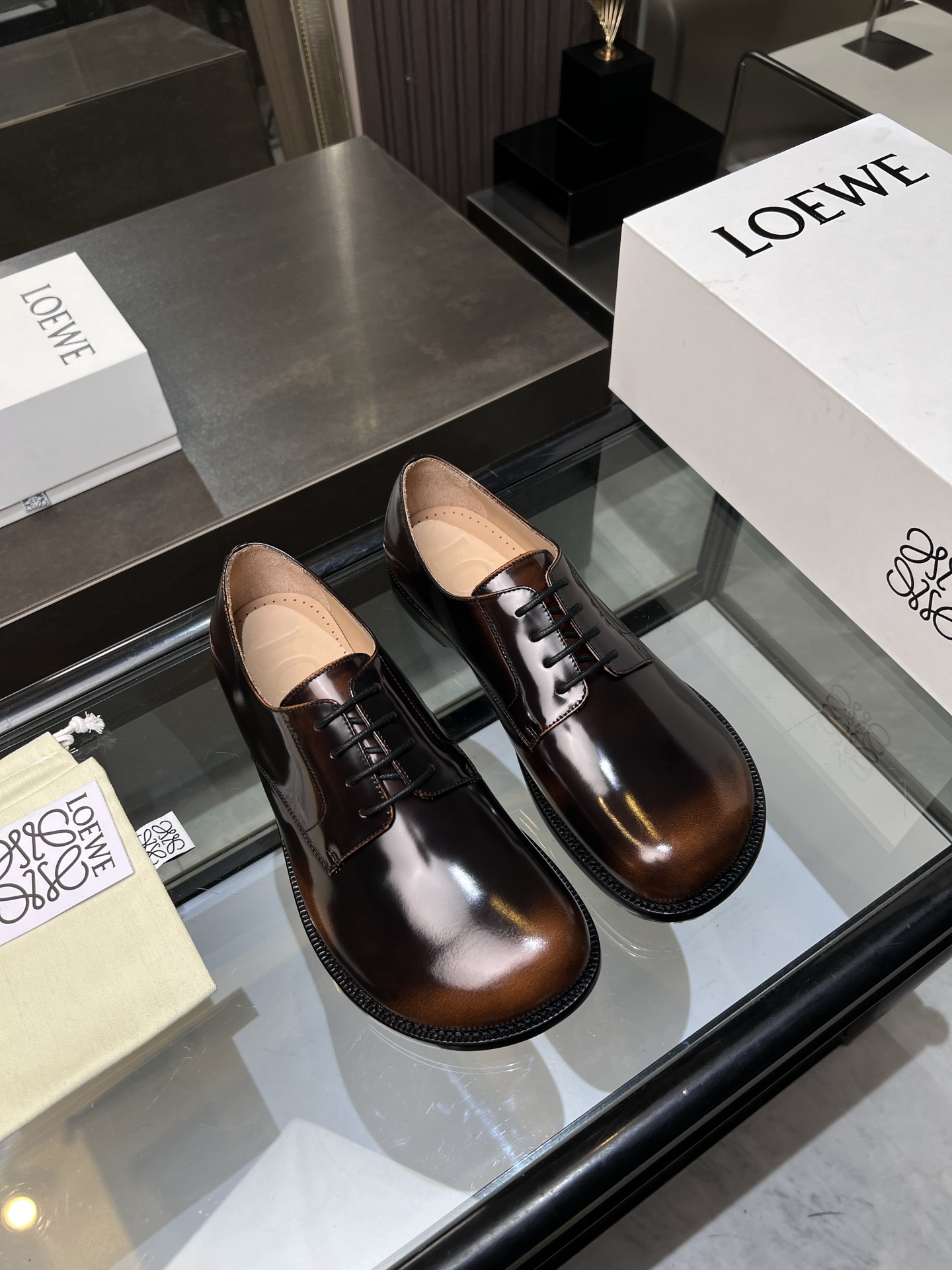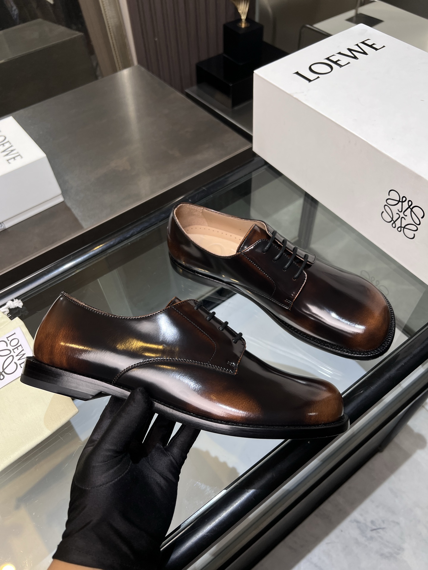 這款鞋子是AAAAA 1:1 質量(非常棒). 使用了和原版一模一樣的材料. 商標部分也保持了和Loewe一樣. 圖片拍攝是實物鞋子拍攝, 您所收到的實物保證和我們圖片一模一樣.