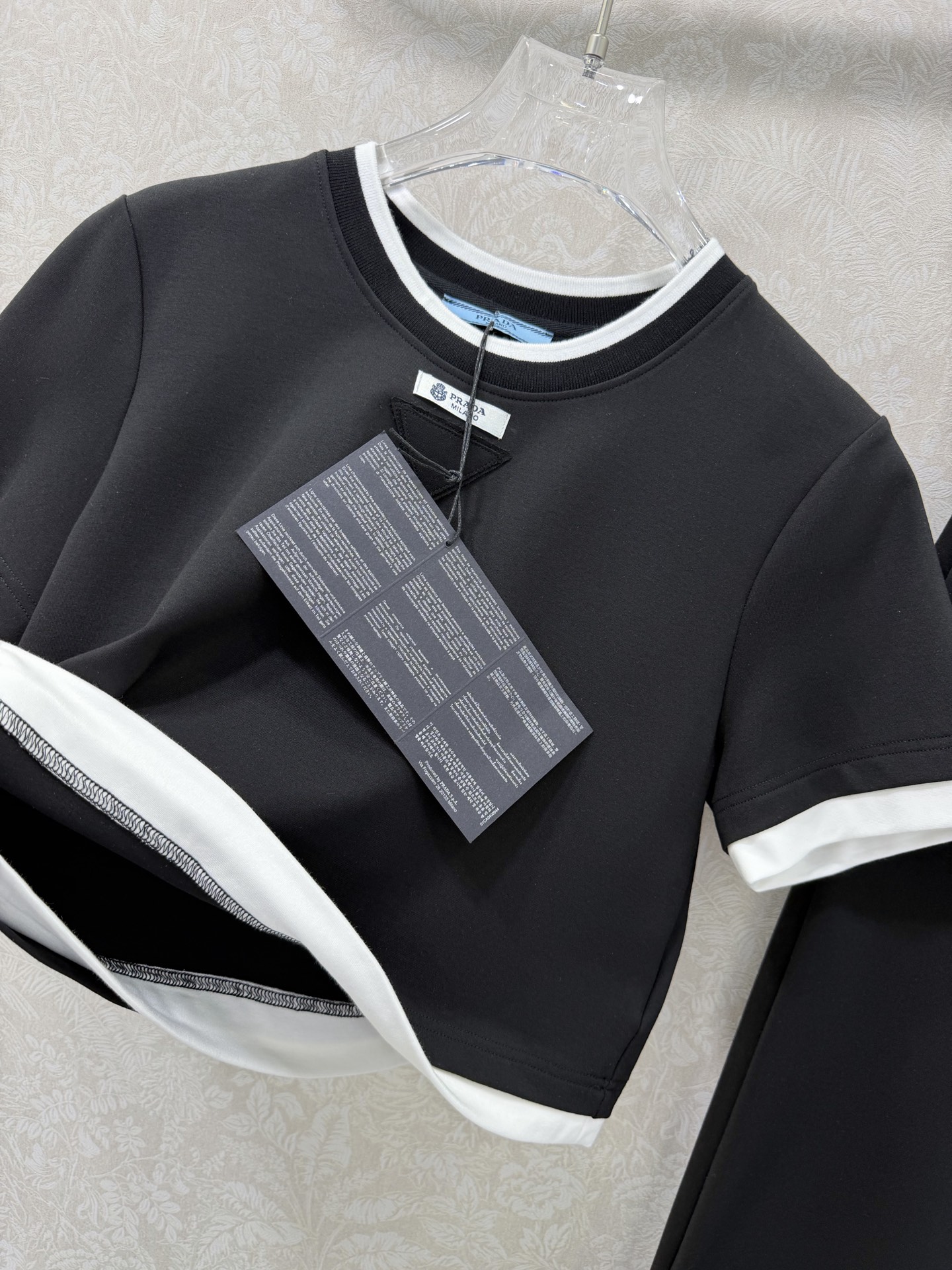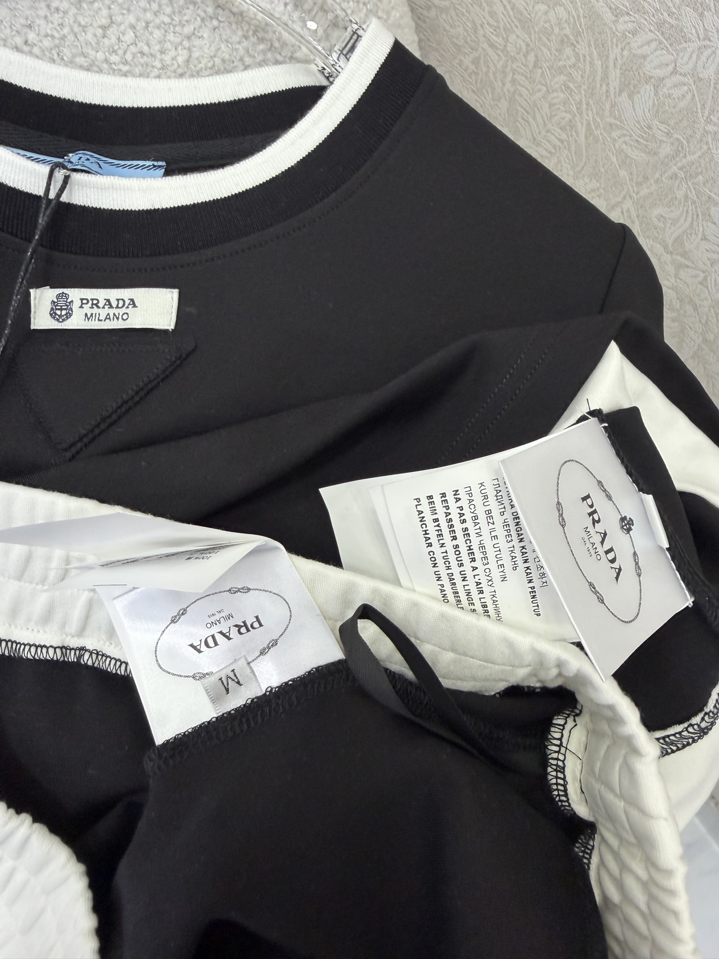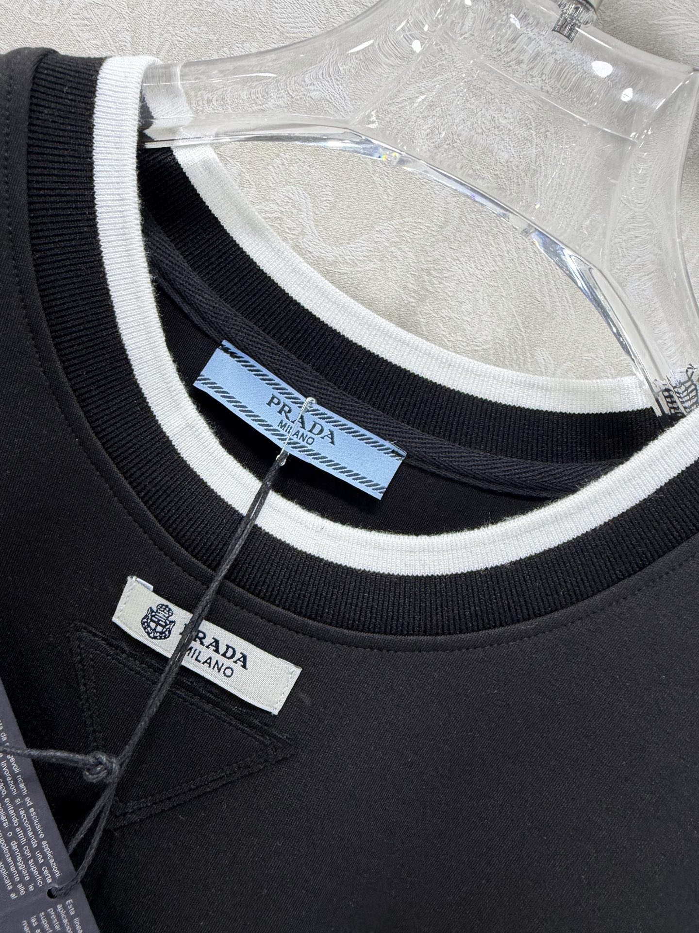 這款衣服是AAAAA 1:1 質量(非常棒). 使用了和原版一模一樣的材料. 商標部分也保持了和普拉達/Prada一樣. 圖片拍攝是實物衣服拍攝, 您所收到的實物保證和我們圖片一模一樣.
