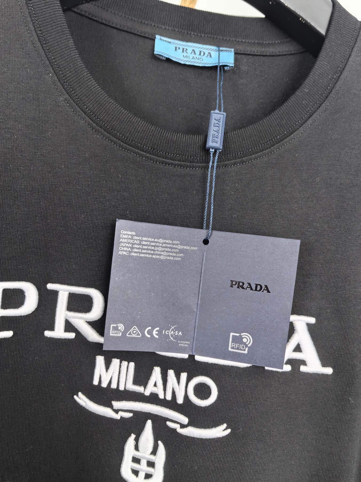 這款衣服是AAAAA 1:1 質量(非常棒). 使用了和原版一模一樣的材料. 商標部分也保持了和普拉達/Prada一樣. 圖片拍攝是實物衣服拍攝, 您所收到的實物保證和我們圖片一模一樣.