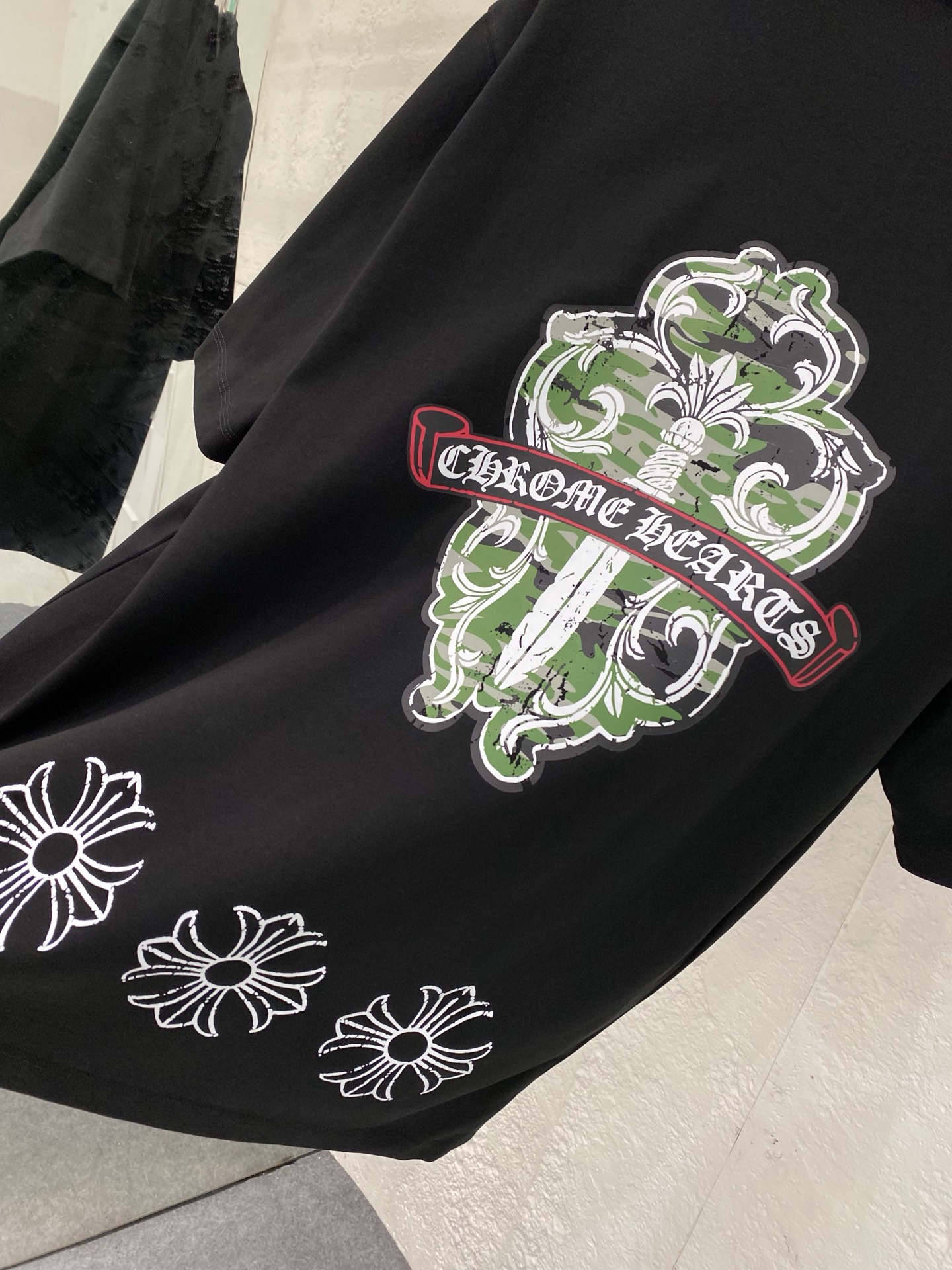 這款衣服是AAAAA 1:1 質量(非常棒). 使用了和原版一模一樣的材料. 商標部分也保持了和鉻心/Chrome Hearts一樣. 圖片拍攝是實物衣服拍攝, 您所收到的實物保證和我們圖片一模一樣.