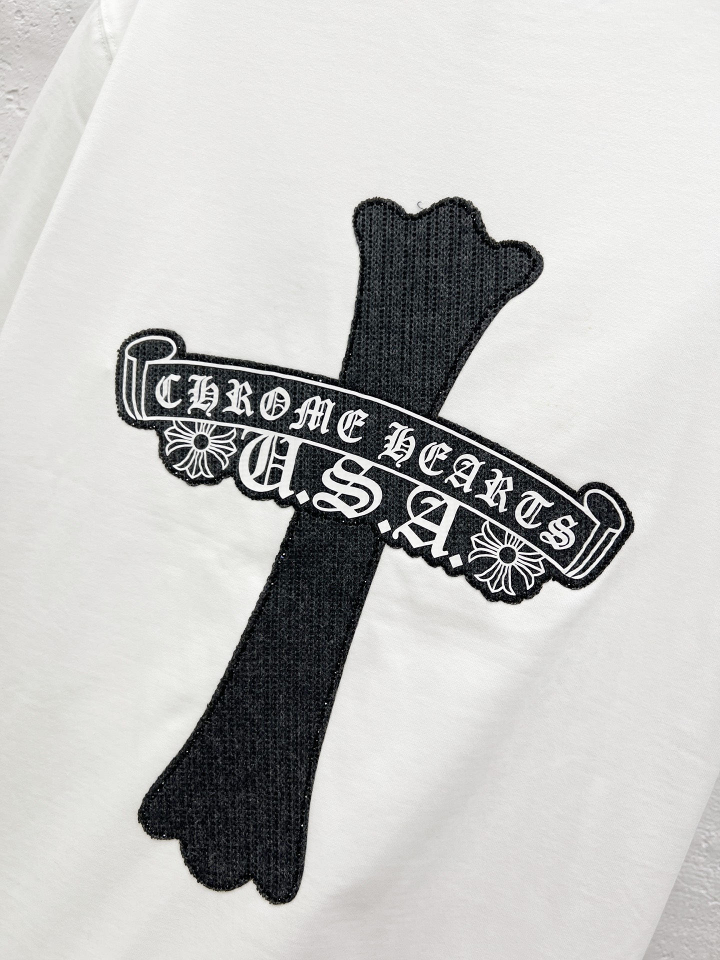這款衣服是AAAAA 1:1 質量(非常棒). 使用了和原版一模一樣的材料. 商標部分也保持了和鉻心/Chrome Hearts一樣. 圖片拍攝是實物衣服拍攝, 您所收到的實物保證和我們圖片一模一樣.