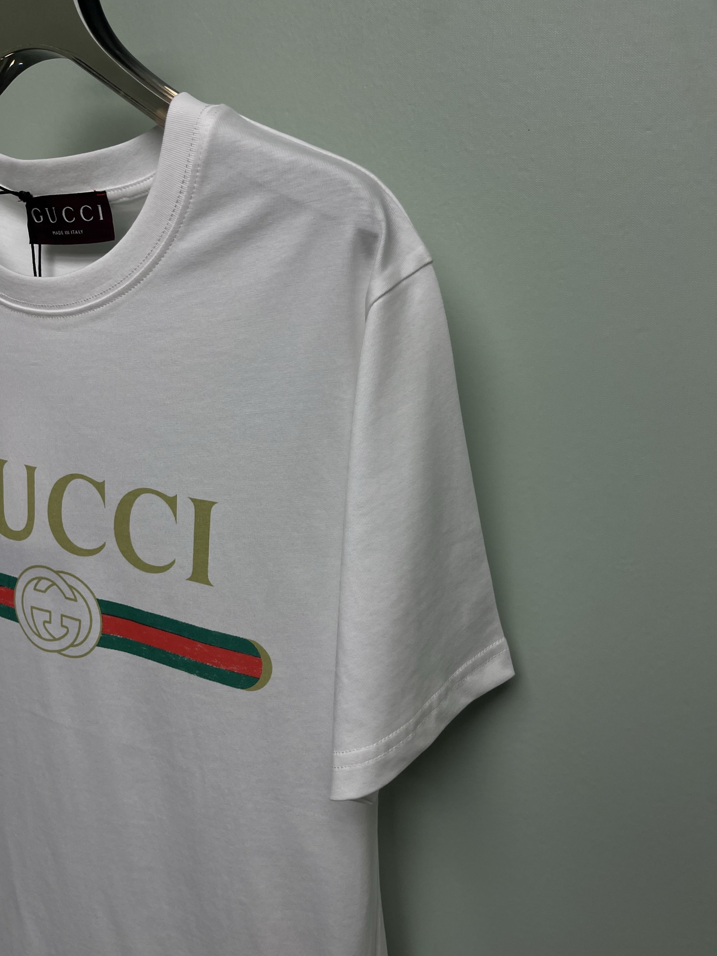 這款衣服是AAAAA 1:1 質量(非常棒). 使用了和原版一模一樣的材料. 商標部分也保持了和古奇/Gucci一樣. 圖片拍攝是實物衣服拍攝, 您所收到的實物保證和我們圖片一模一樣.