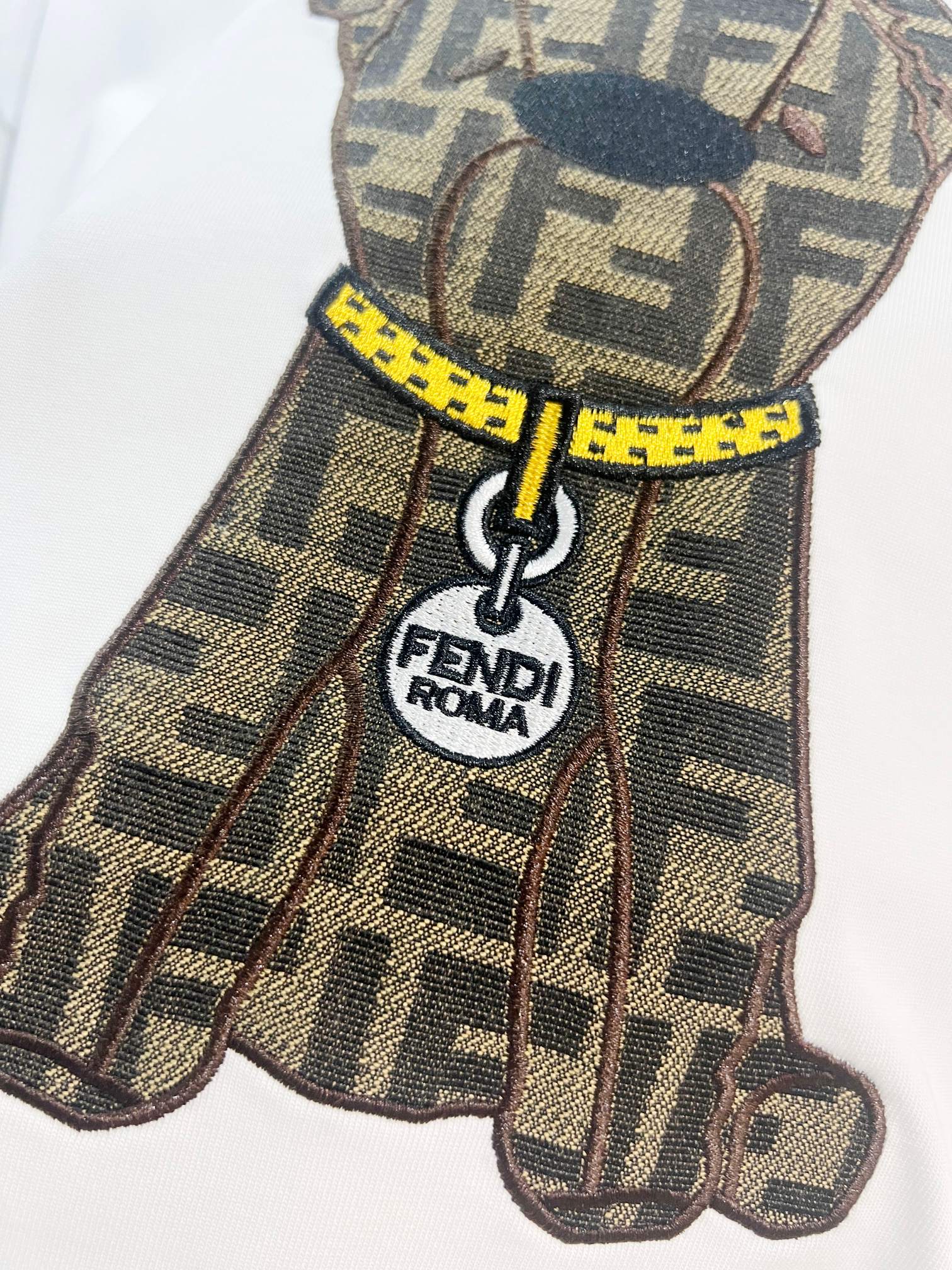 這款衣服是AAAAA 1:1 質量(非常棒). 使用了和原版一模一樣的材料. 商標部分也保持了和芬迪/Fendi一樣. 圖片拍攝是實物衣服拍攝, 您所收到的實物保證和我們圖片一模一樣.