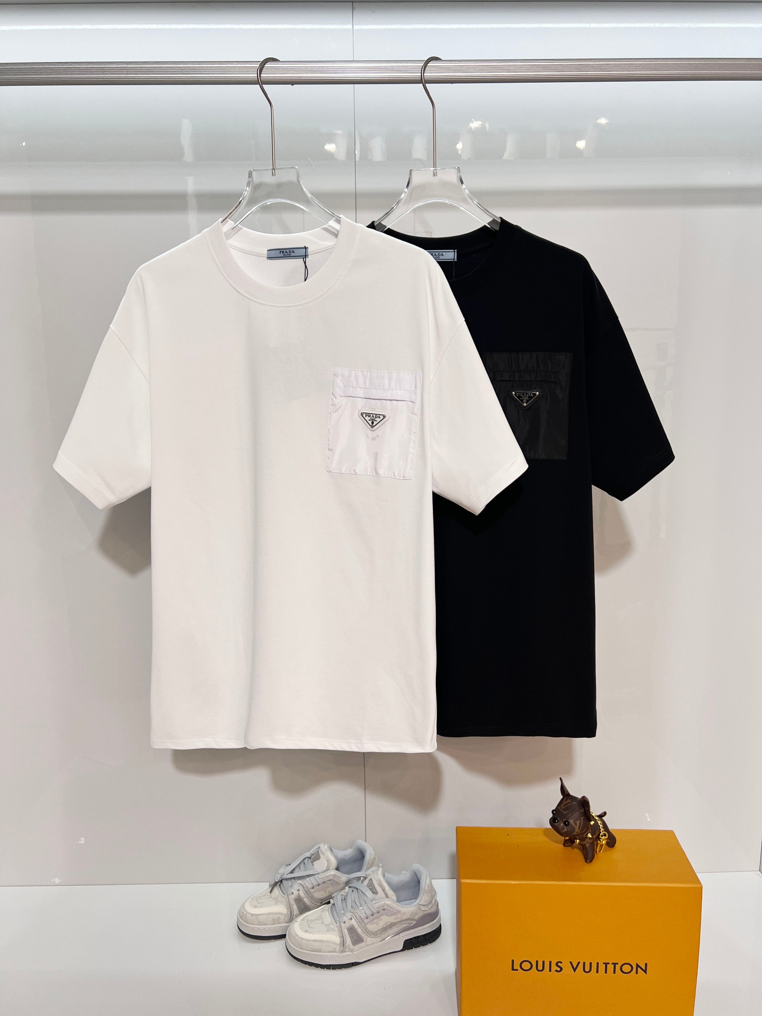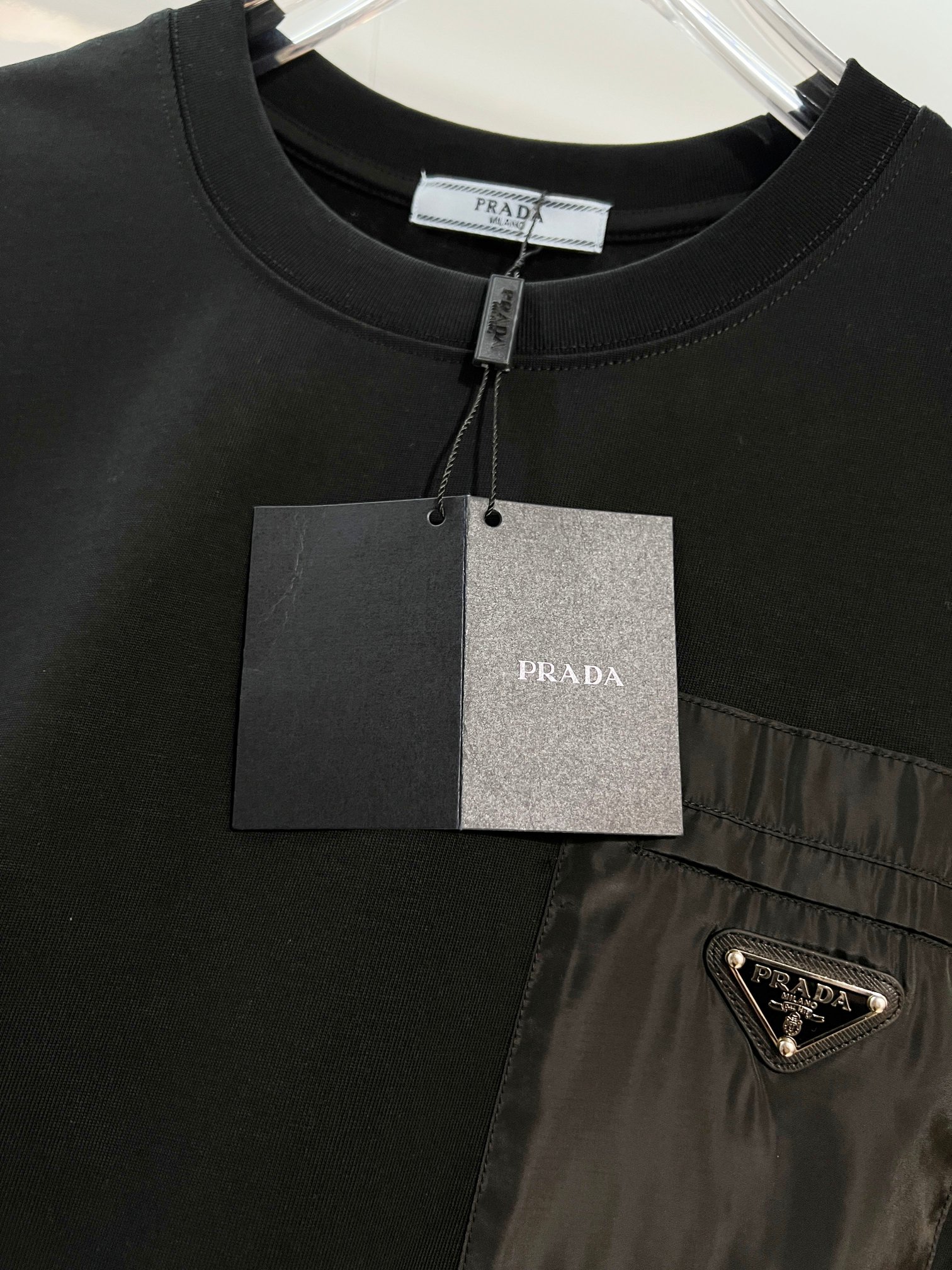 這款衣服是AAAAA 1:1 質量(非常棒). 使用了和原版一模一樣的材料. 商標部分也保持了和普拉達/Prada一樣. 圖片拍攝是實物衣服拍攝, 您所收到的實物保證和我們圖片一模一樣.