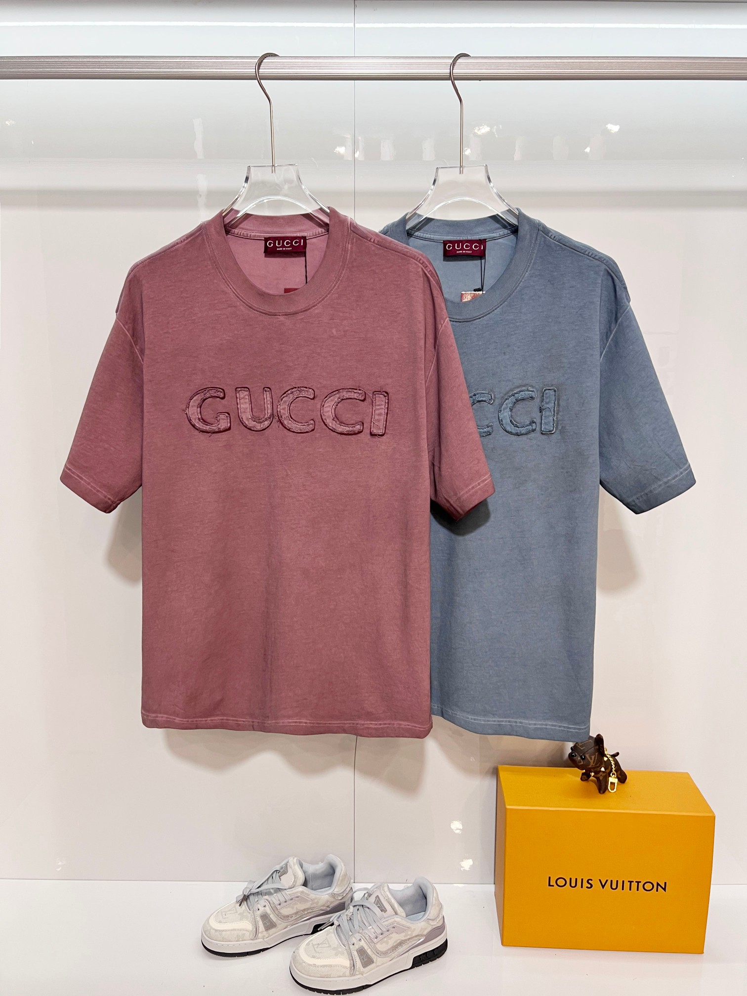 這款衣服是AAAAA 1:1 質量(非常棒). 使用了和原版一模一樣的材料. 商標部分也保持了和古奇/Gucci一樣. 圖片拍攝是實物衣服拍攝, 您所收到的實物保證和我們圖片一模一樣.