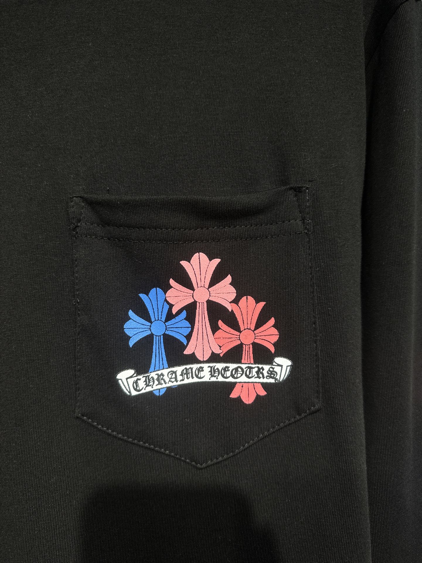 這款衣服是AAAAA 1:1 質量(非常棒). 使用了和原版一模一樣的材料. 商標部分也保持了和鉻心/Chrome Hearts一樣. 圖片拍攝是實物衣服拍攝, 您所收到的實物保證和我們圖片一模一樣.