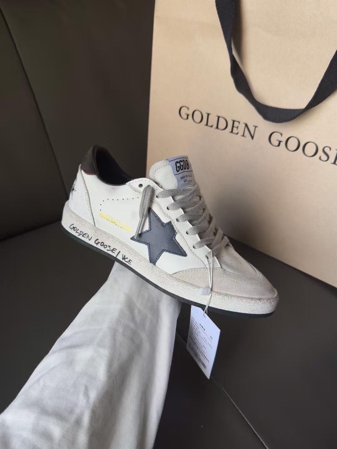這款鞋子是AAAAA 1:1 質量(非常棒). 使用了和原版一模一樣的材料. 商標部分也保持了和Golden Goose一樣. 圖片拍攝是實物鞋子拍攝, 您所收到的實物保證和我們圖片一模一樣.