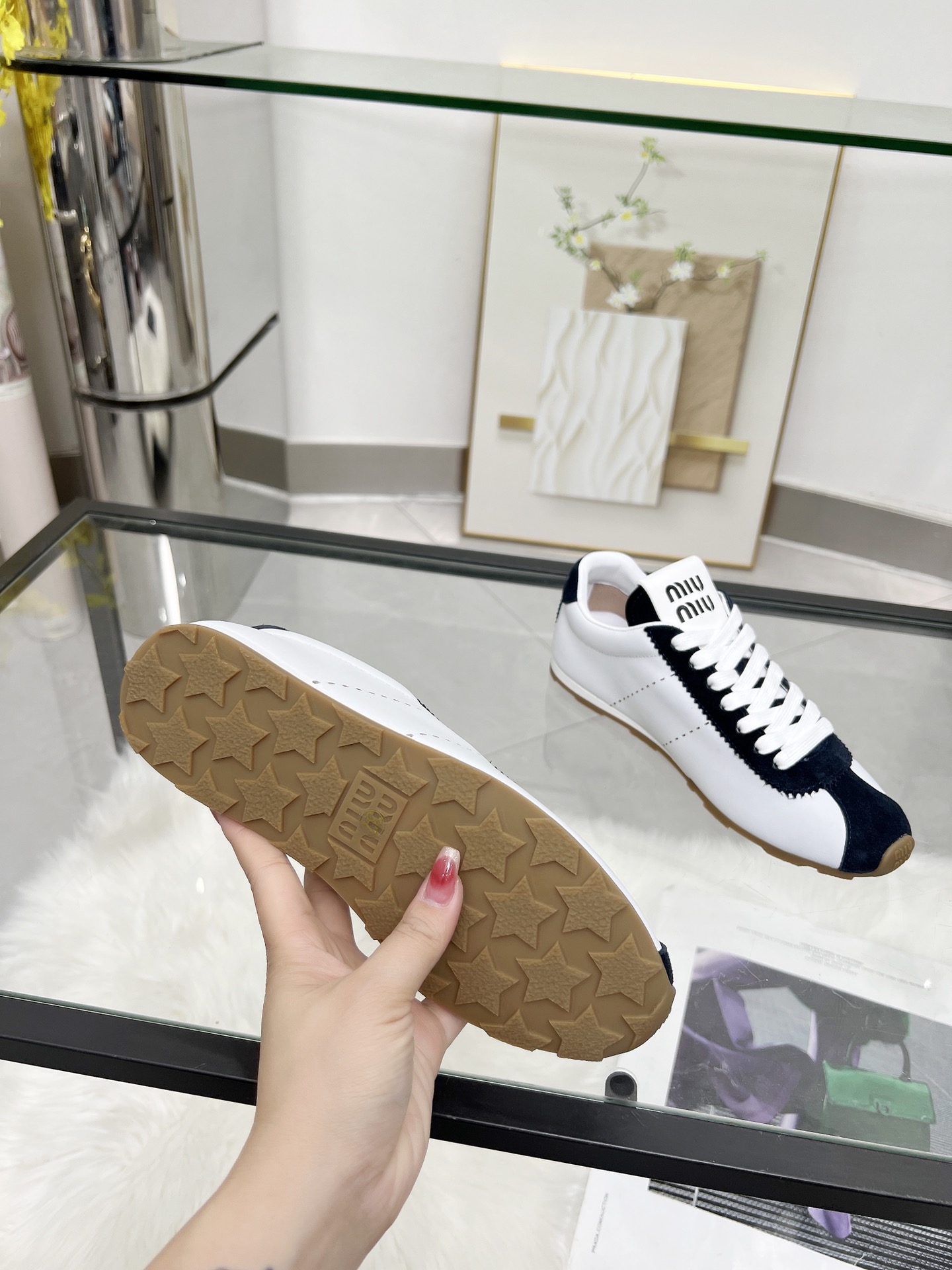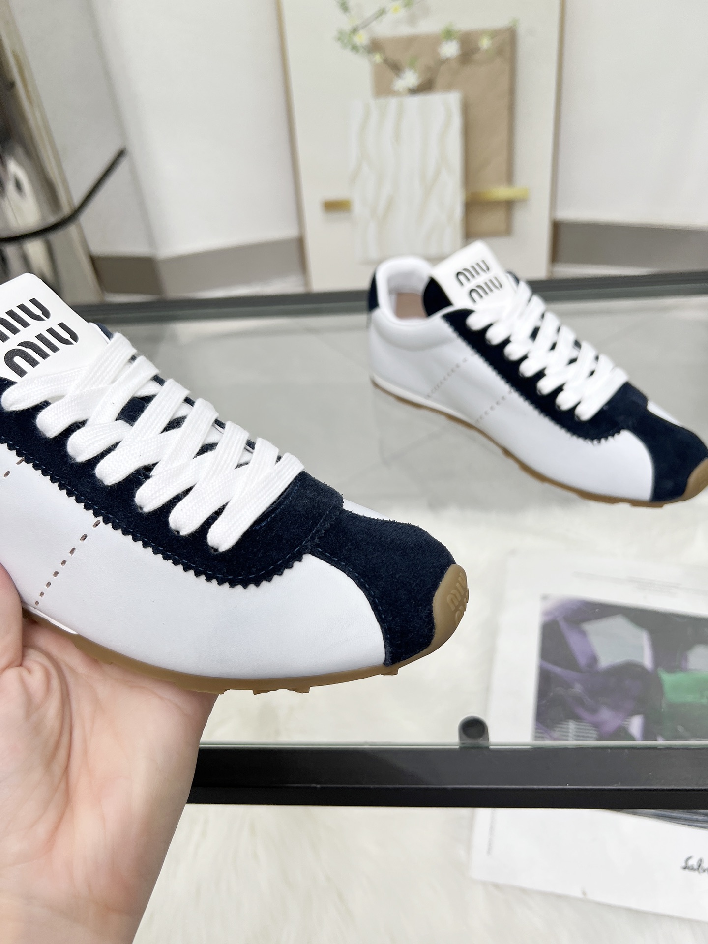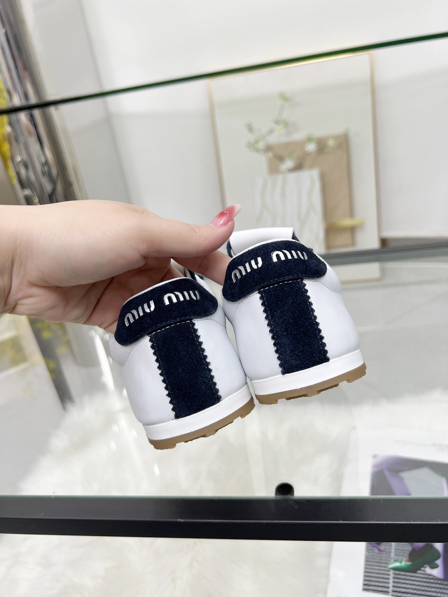 這款鞋子是AAAAA 1:1 質量(非常棒). 使用了和原版一模一樣的材料. 商標部分也保持了和繆繆/Miu Miu一樣. 圖片拍攝是實物鞋子拍攝, 您所收到的實物保證和我們圖片一模一樣.