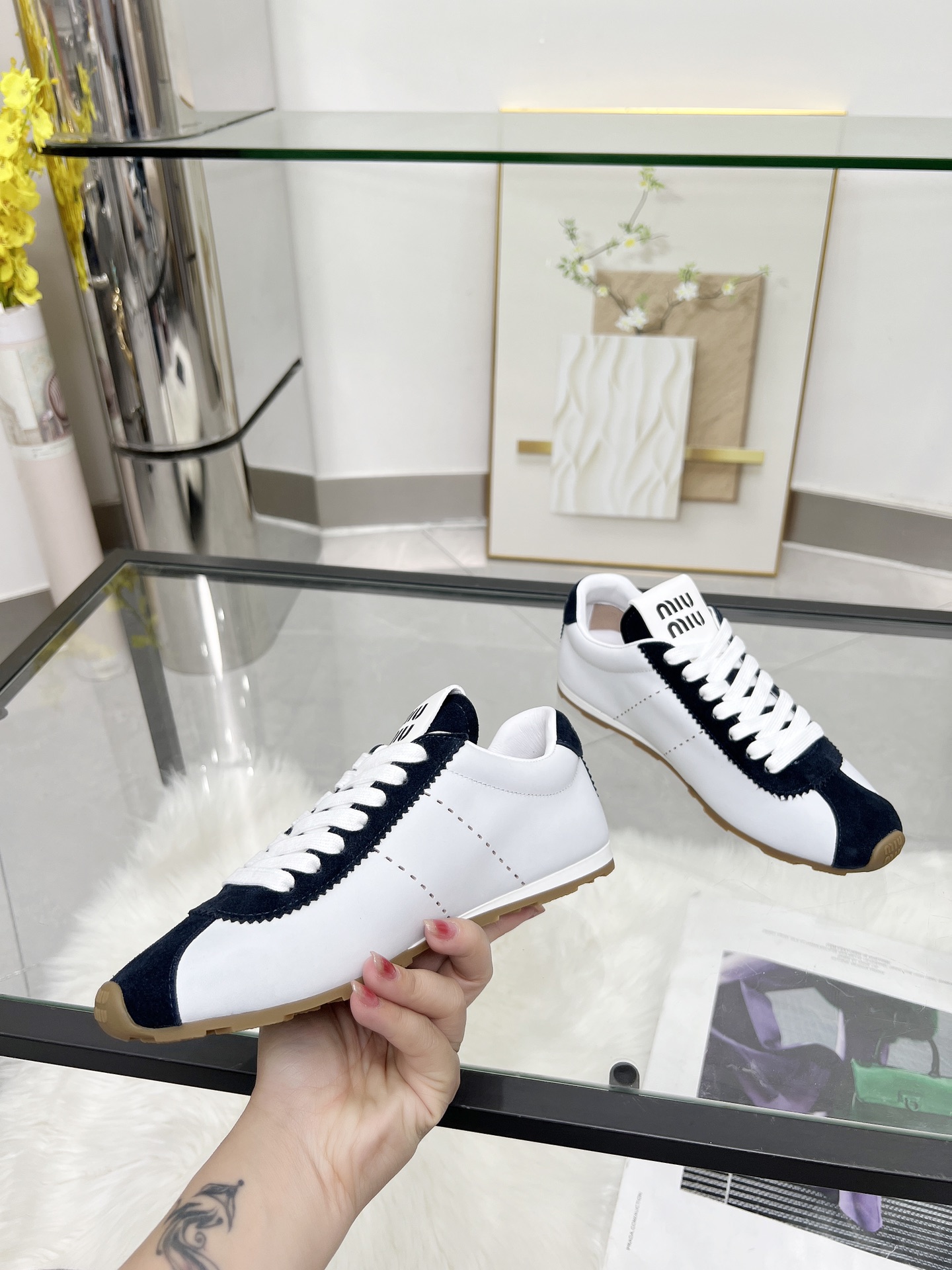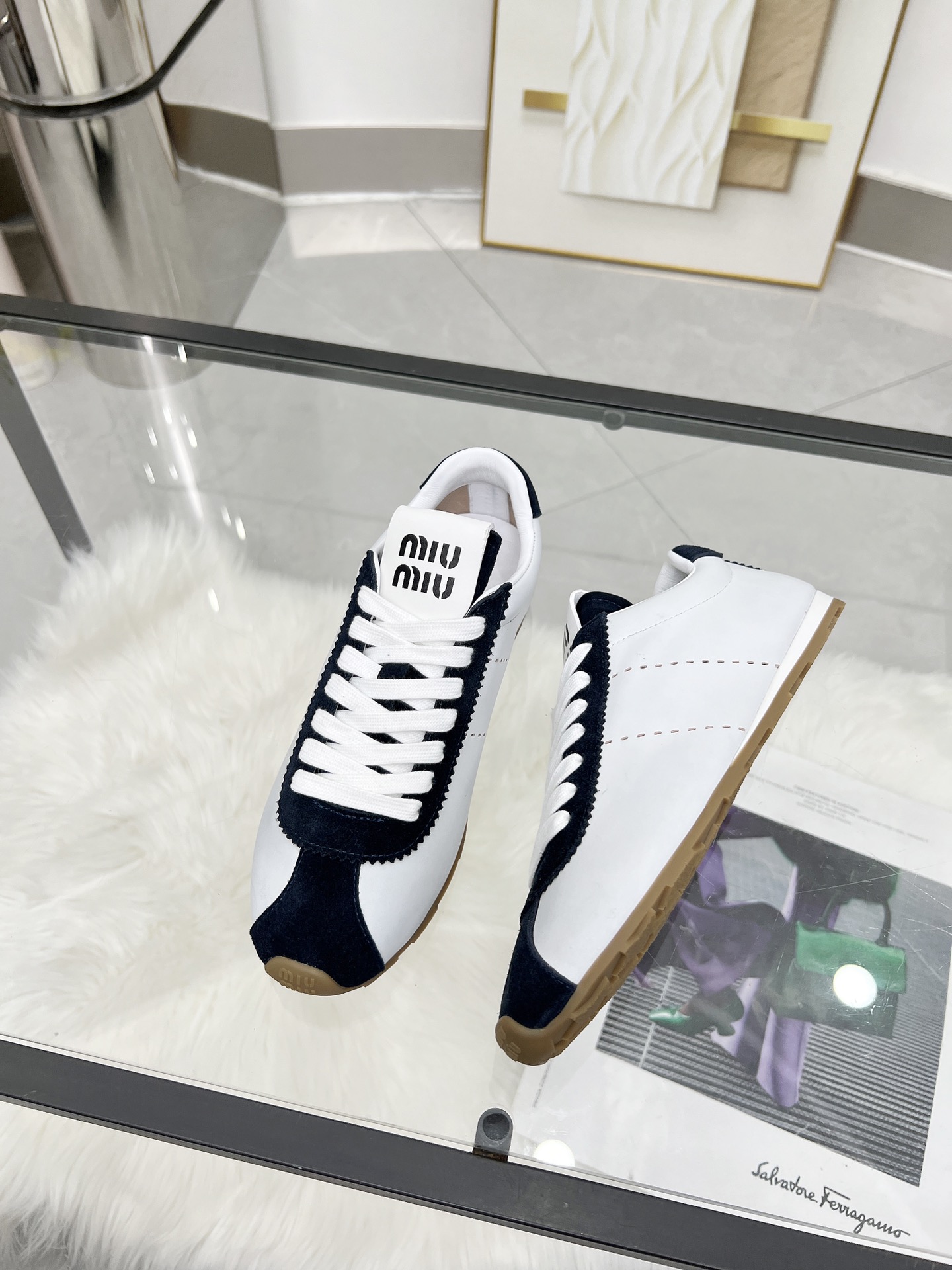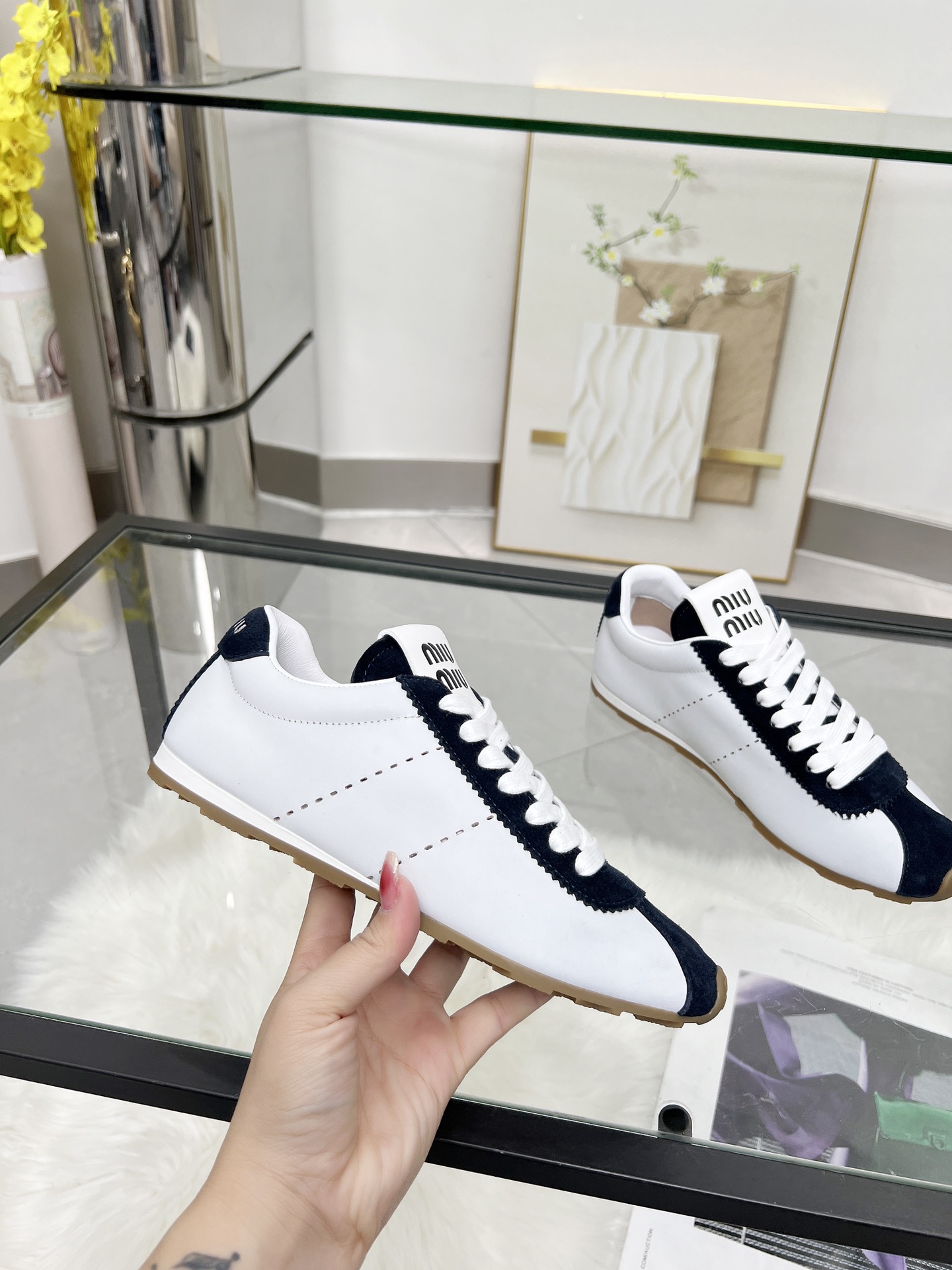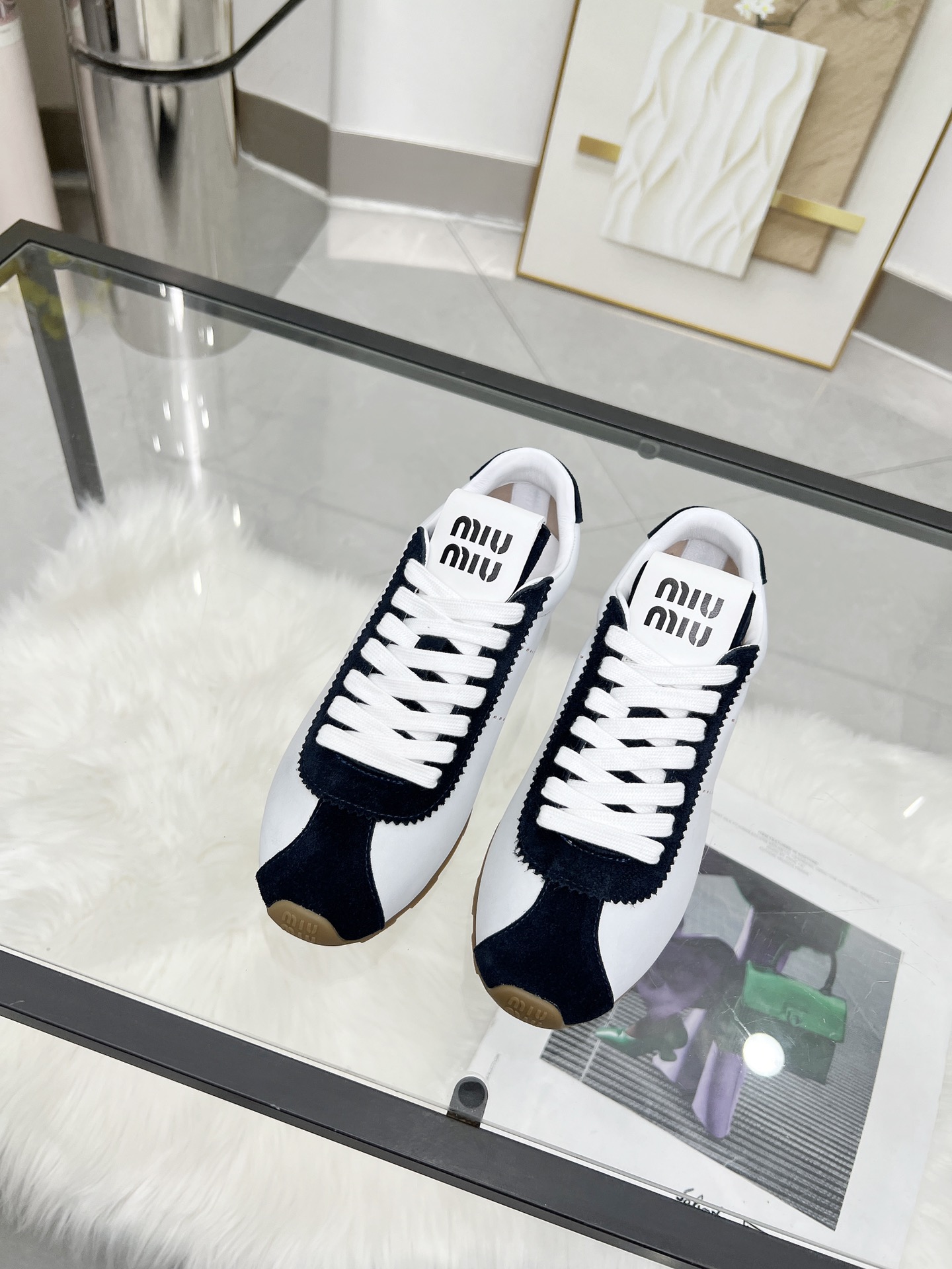 這款鞋子是AAAAA 1:1 質量(非常棒). 使用了和原版一模一樣的材料. 商標部分也保持了和繆繆/Miu Miu一樣. 圖片拍攝是實物鞋子拍攝, 您所收到的實物保證和我們圖片一模一樣.