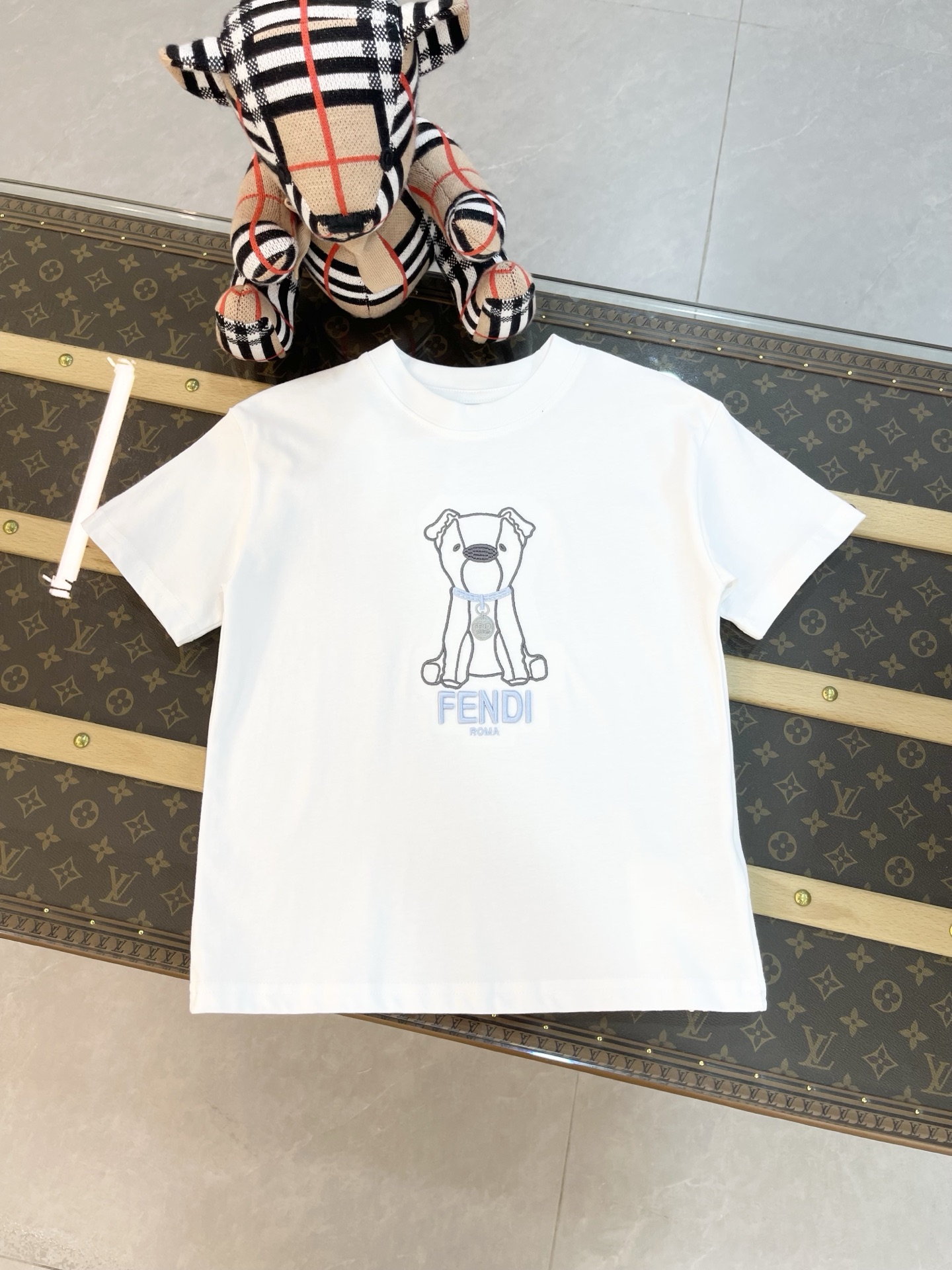 這款children's clothes是AAAAA 1:1 質量(非常棒). 使用了和原版一模一樣的材料. 商標部分也保持了和芬迪/Fendi一樣. 圖片拍攝是實物children's clothes拍攝, 您所收到的實物保證和我們圖片一模一樣.