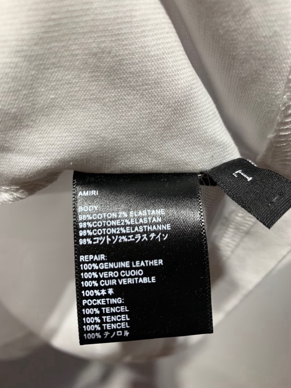 這款衣服是AAAAA 1:1 質量(非常棒). 使用了和原版一模一樣的材料. 商標部分也保持了和AMIRI一樣. 圖片拍攝是實物衣服拍攝, 您所收到的實物保證和我們圖片一模一樣.