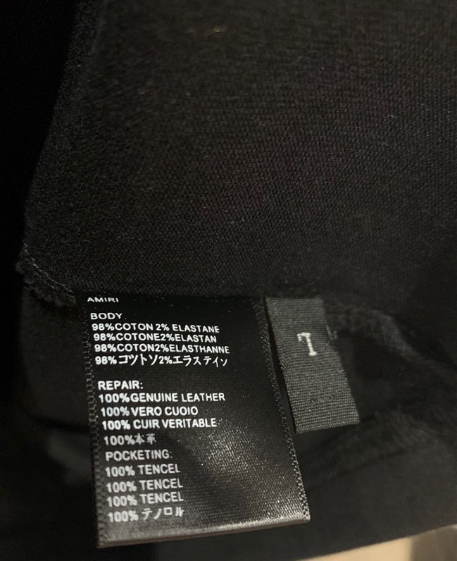 這款衣服是AAAAA 1:1 質量(非常棒). 使用了和原版一模一樣的材料. 商標部分也保持了和AMIRI一樣. 圖片拍攝是實物衣服拍攝, 您所收到的實物保證和我們圖片一模一樣.