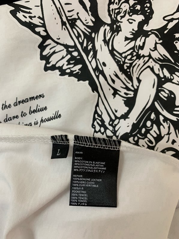 這款衣服是AAAAA 1:1 質量(非常棒). 使用了和原版一模一樣的材料. 商標部分也保持了和AMIRI一樣. 圖片拍攝是實物衣服拍攝, 您所收到的實物保證和我們圖片一模一樣.