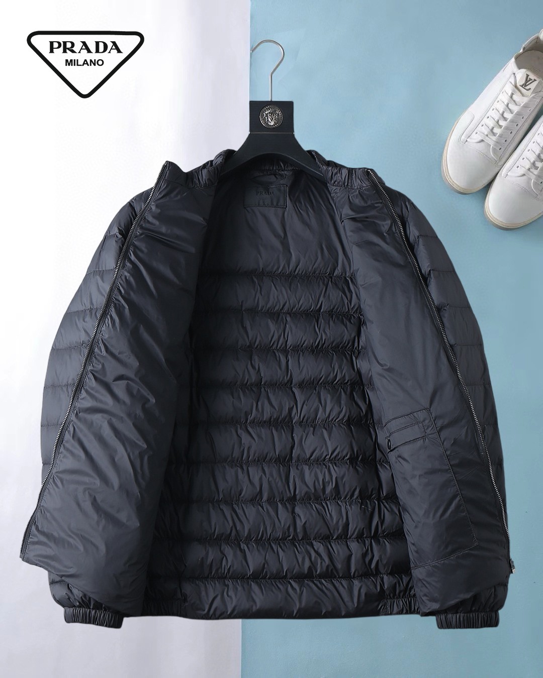這款衣服是AAAAA 1:1 質量(非常棒). 使用了和原版一模一樣的材料. 商標部分也保持了和普拉達/Prada一樣. 圖片拍攝是實物衣服拍攝, 您所收到的實物保證和我們圖片一模一樣.