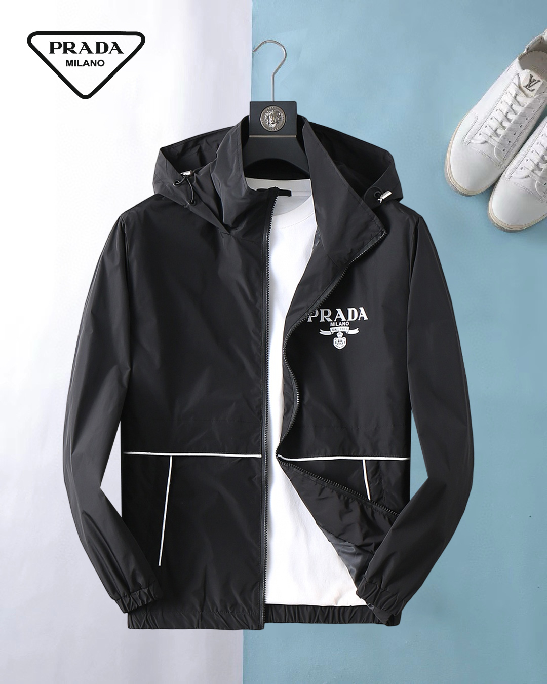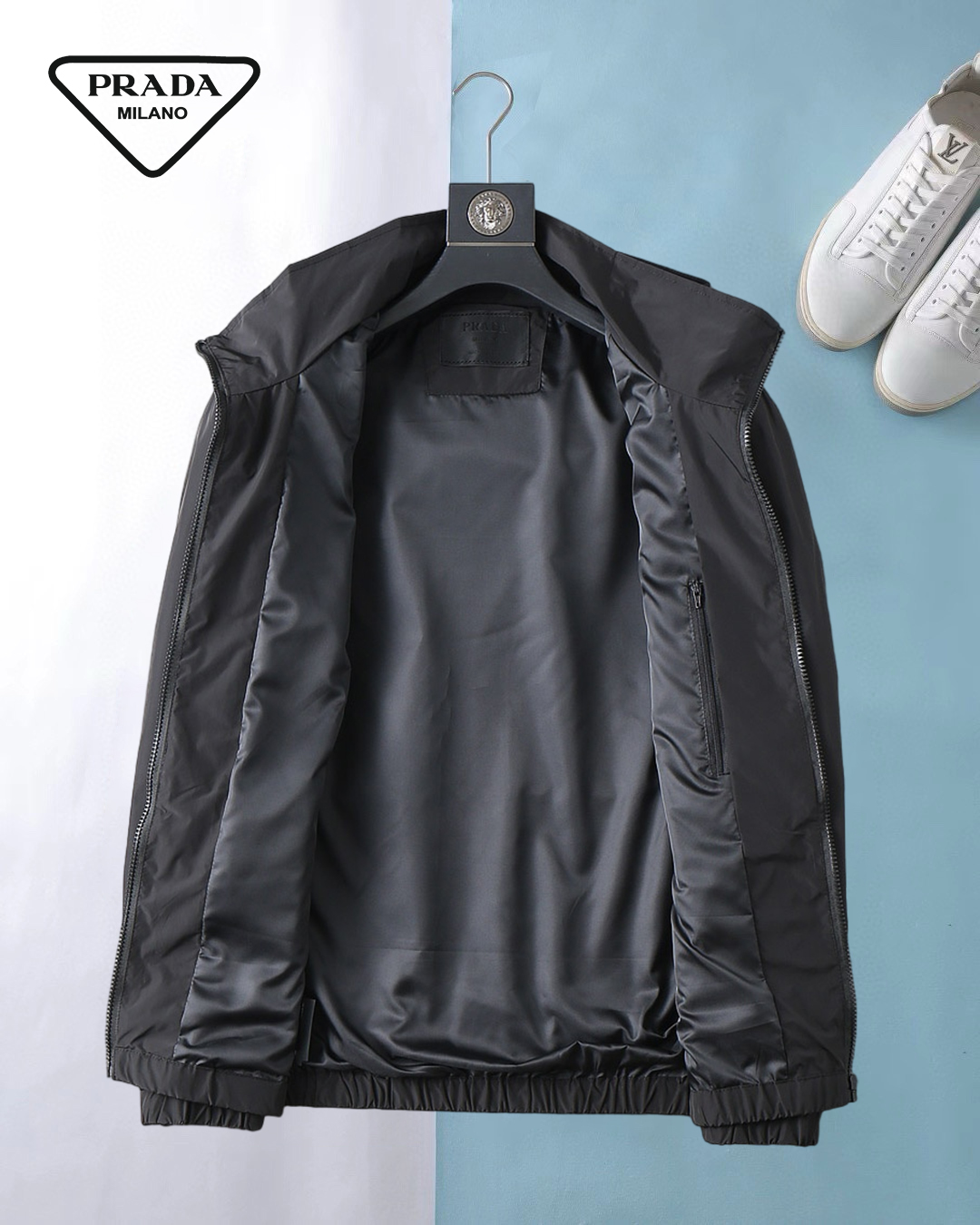 這款衣服是AAAAA 1:1 質量(非常棒). 使用了和原版一模一樣的材料. 商標部分也保持了和普拉達/Prada一樣. 圖片拍攝是實物衣服拍攝, 您所收到的實物保證和我們圖片一模一樣.