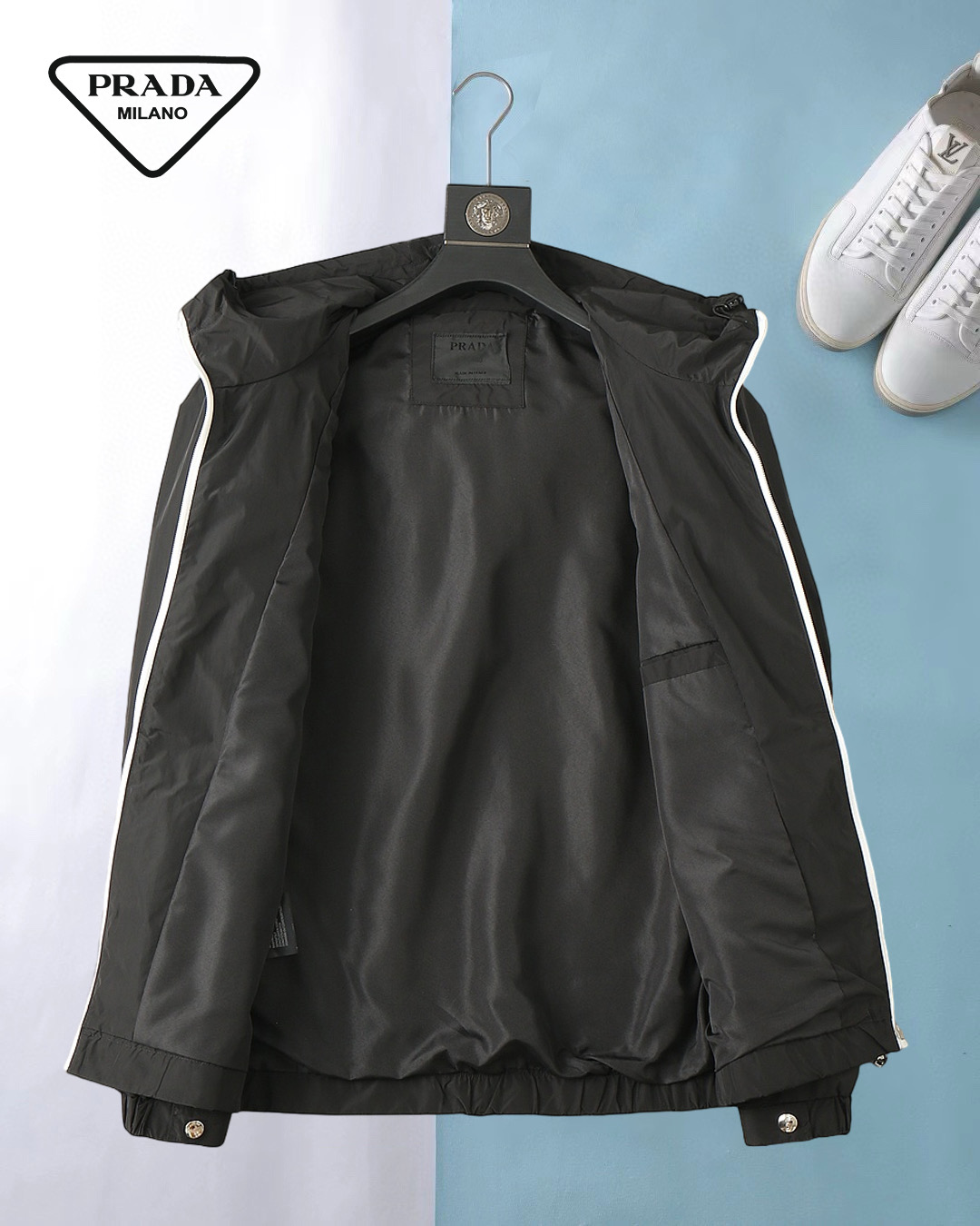 這款衣服是AAAAA 1:1 質量(非常棒). 使用了和原版一模一樣的材料. 商標部分也保持了和普拉達/Prada一樣. 圖片拍攝是實物衣服拍攝, 您所收到的實物保證和我們圖片一模一樣.