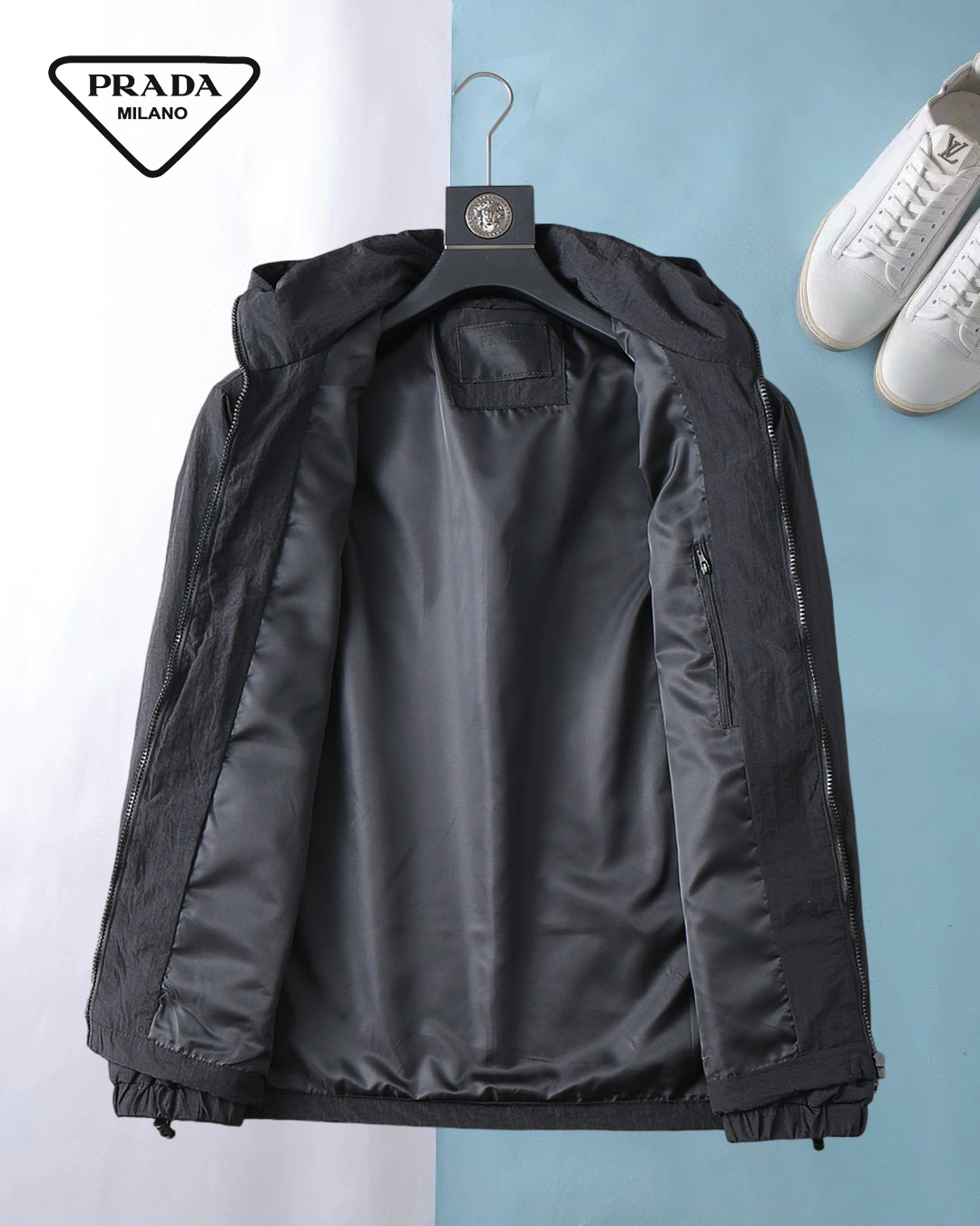 這款衣服是AAAAA 1:1 質量(非常棒). 使用了和原版一模一樣的材料. 商標部分也保持了和普拉達/Prada一樣. 圖片拍攝是實物衣服拍攝, 您所收到的實物保證和我們圖片一模一樣.