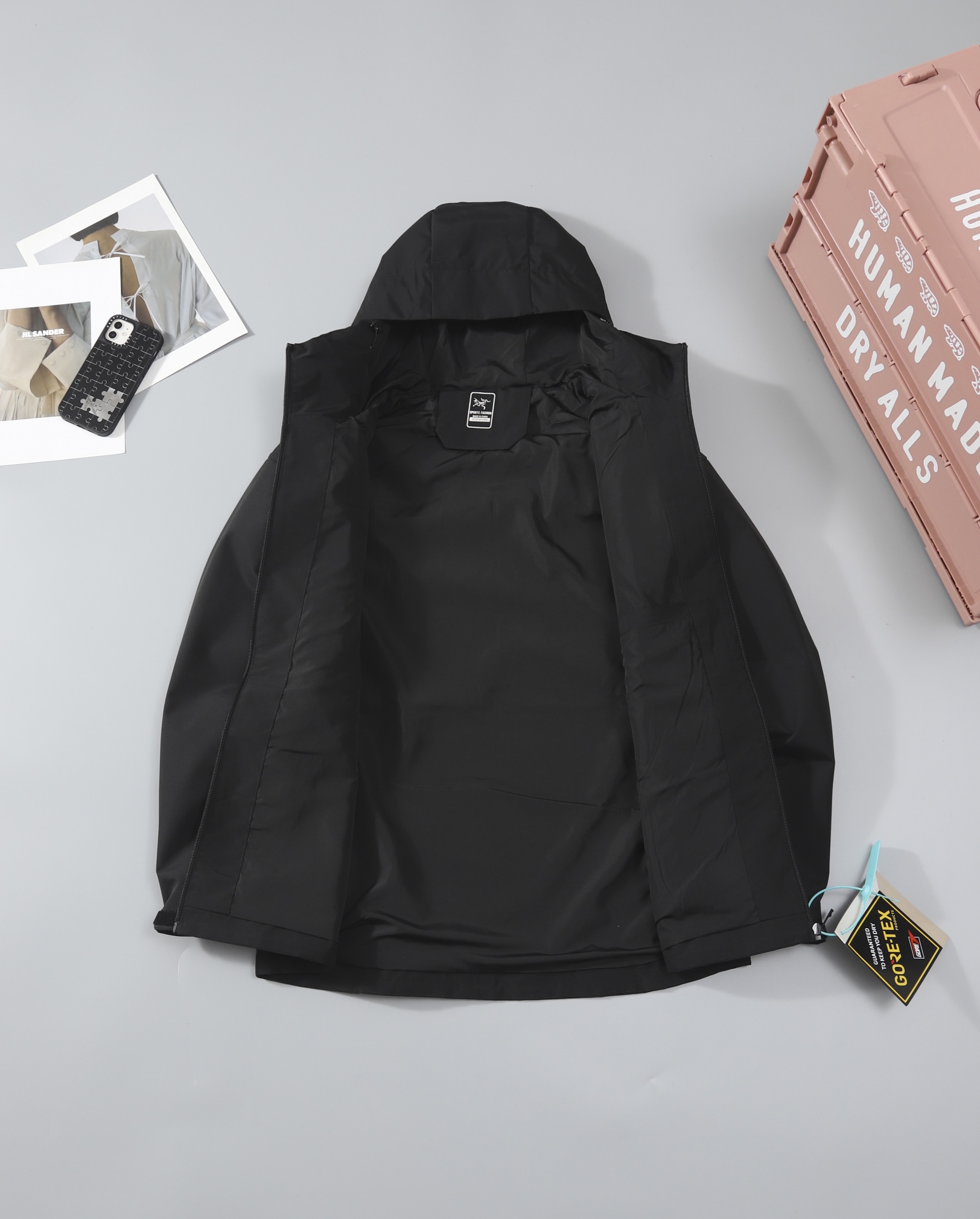 這款衣服是AAAAA 1:1 質量(非常棒). 使用了和原版一模一樣的材料. 商標部分也保持了和ARC'TERYX一樣. 圖片拍攝是實物衣服拍攝, 您所收到的實物保證和我們圖片一模一樣.