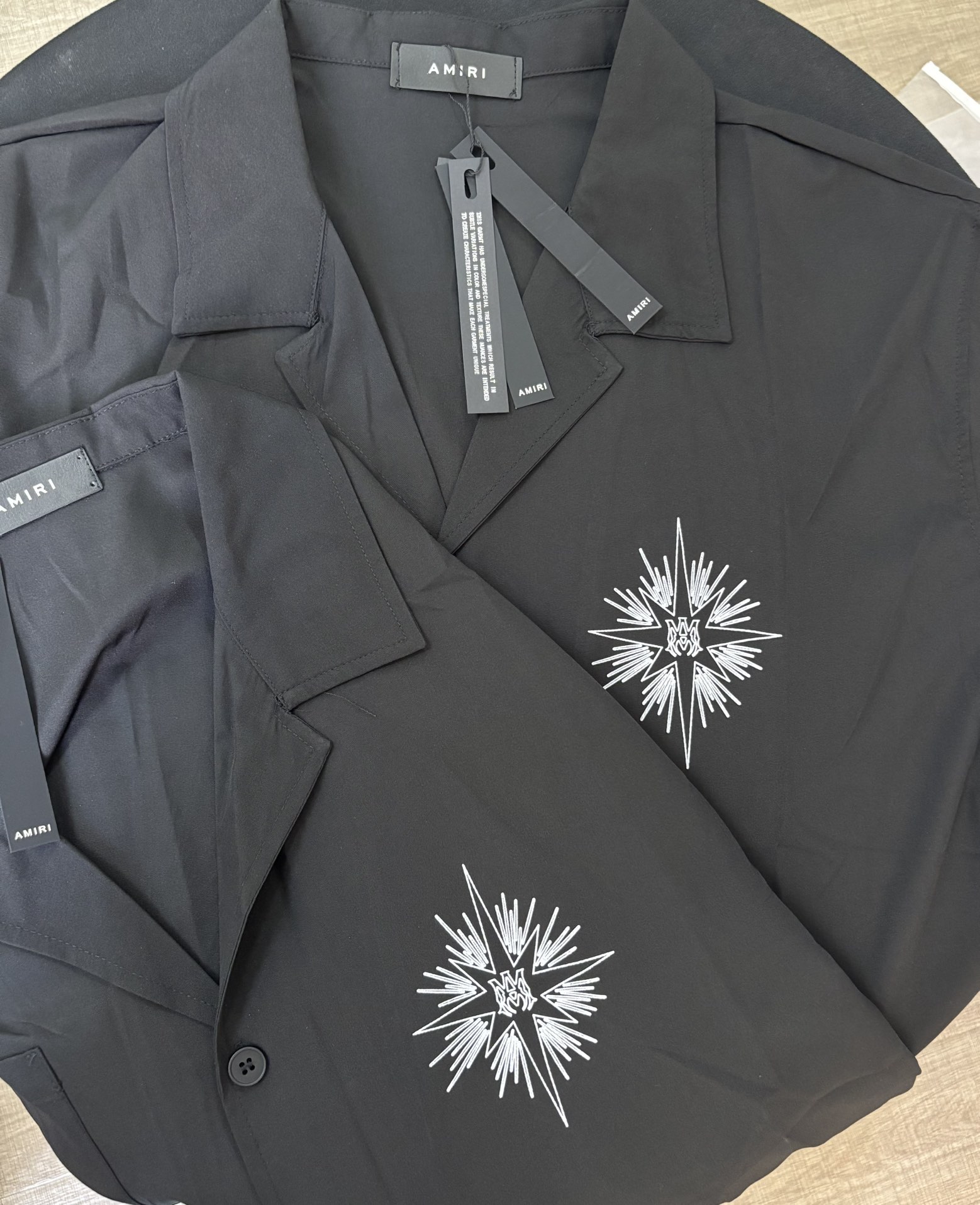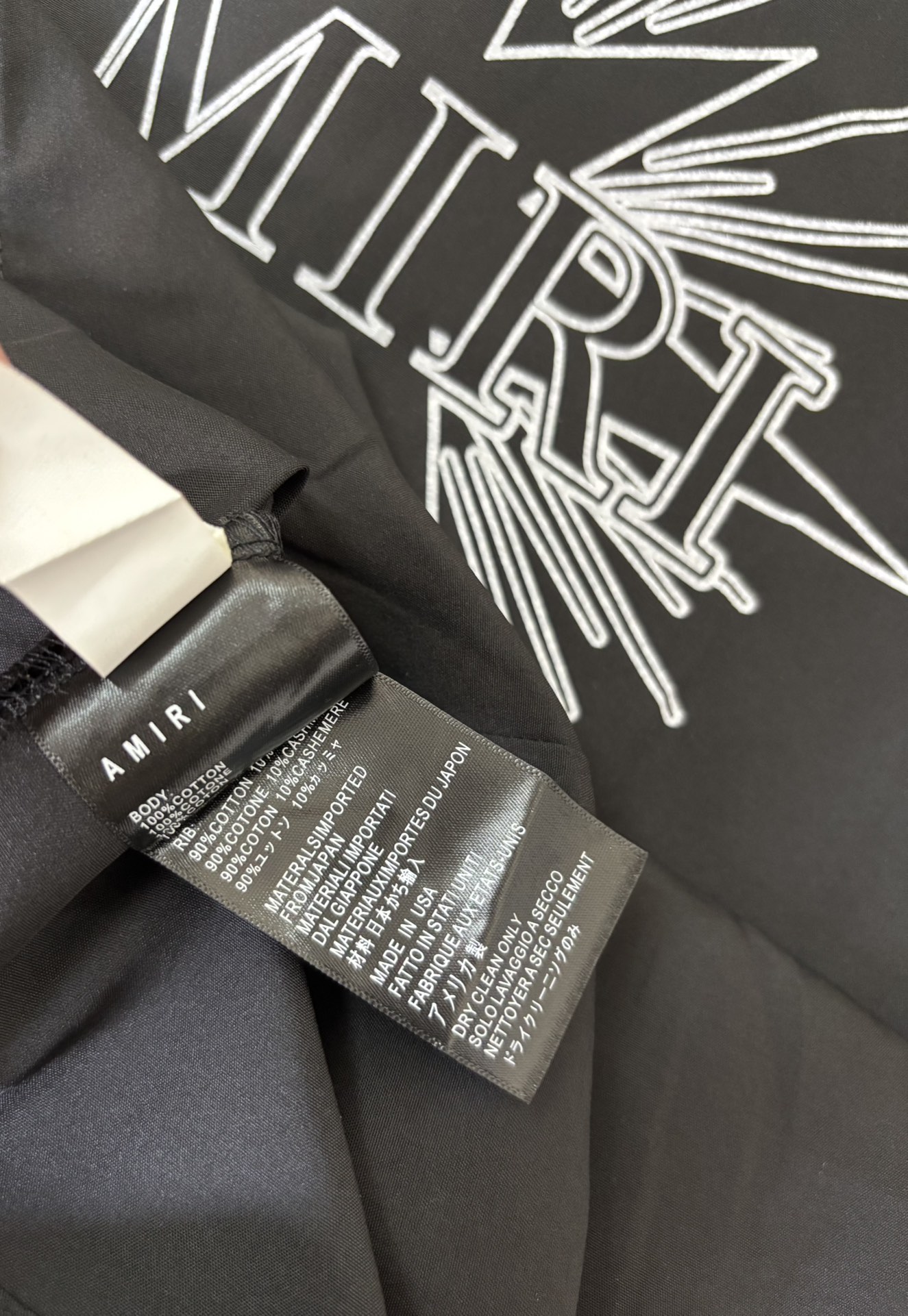 這款衣服是AAAAA 1:1 質量(非常棒). 使用了和原版一模一樣的材料. 商標部分也保持了和AMIRI一樣. 圖片拍攝是實物衣服拍攝, 您所收到的實物保證和我們圖片一模一樣.