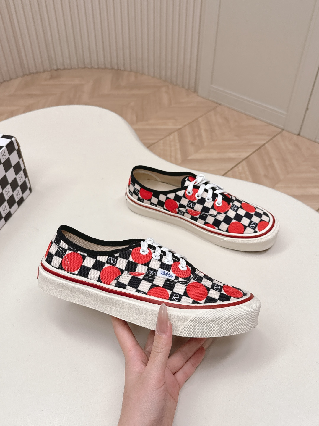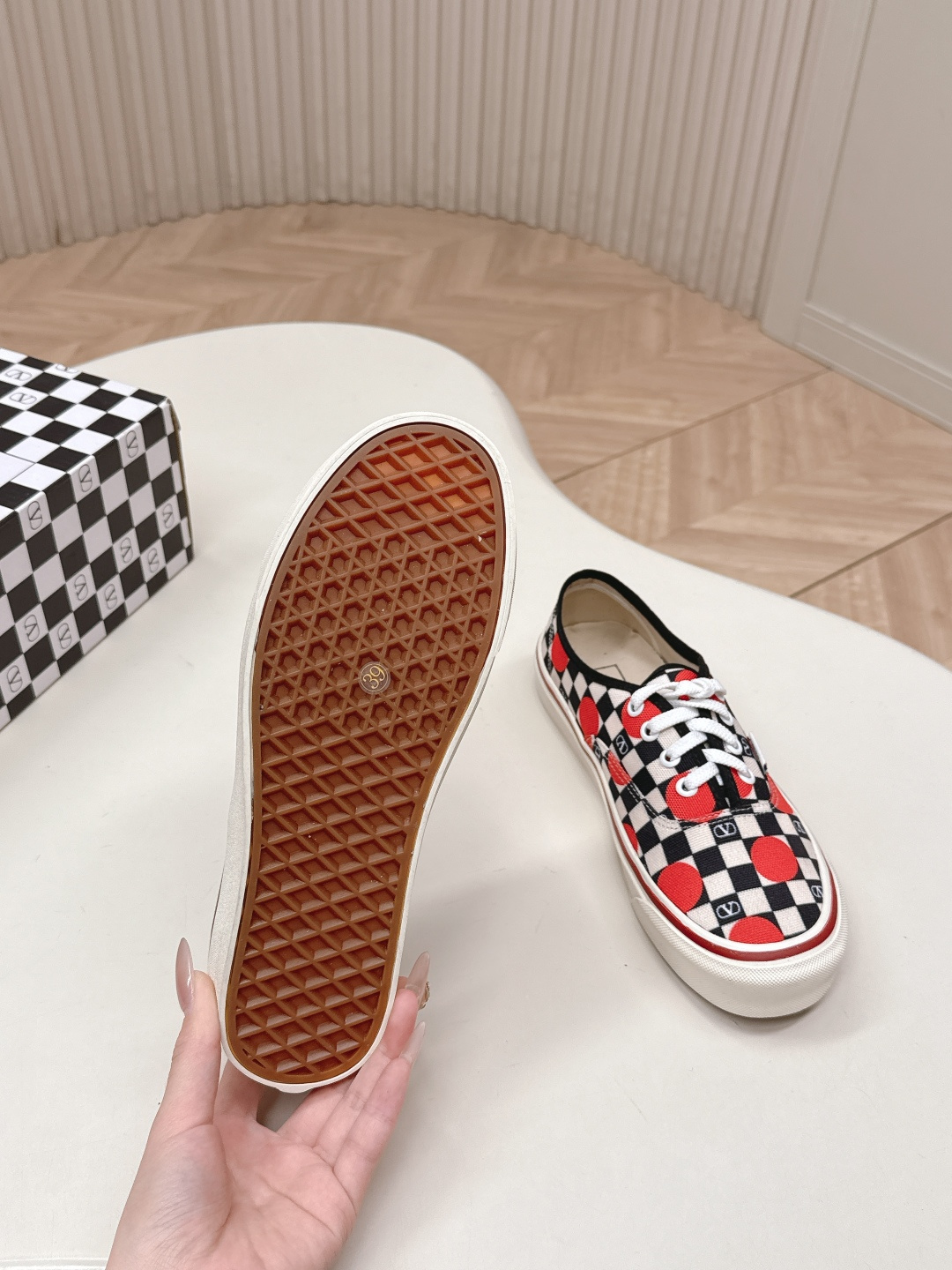 這款鞋子是AAAAA 1:1 質量(非常棒). 使用了和原版一模一樣的材料. 商標部分也保持了和瓦倫蒂諾/Valentino一樣. 圖片拍攝是實物鞋子拍攝, 您所收到的實物保證和我們圖片一模一樣.