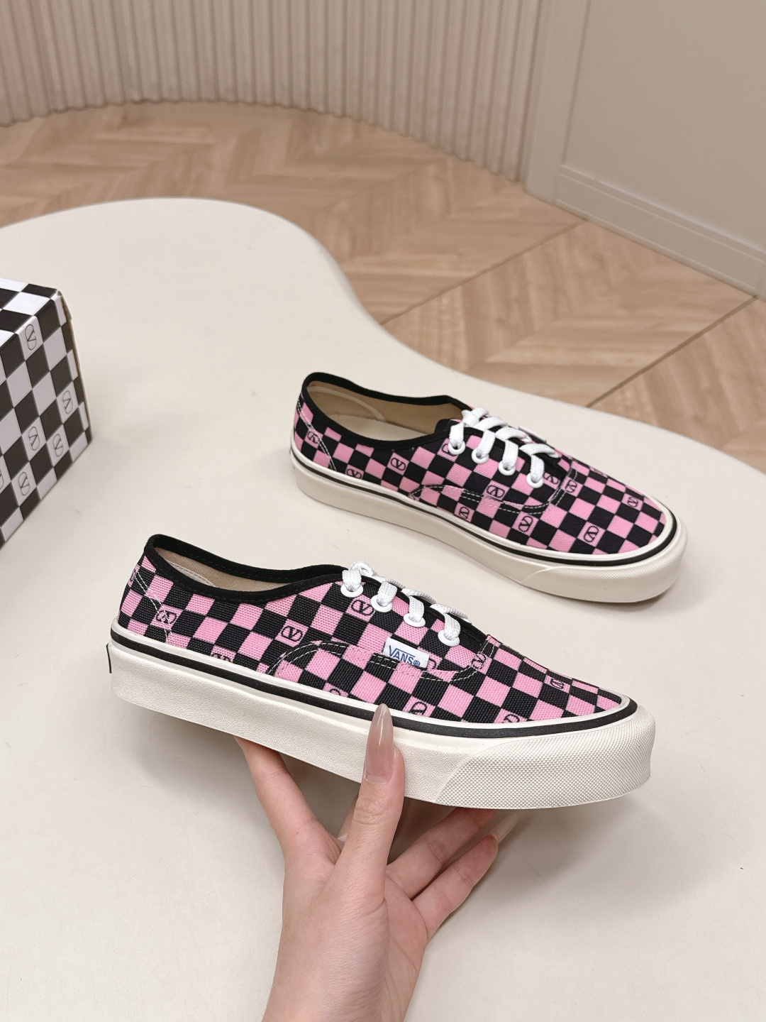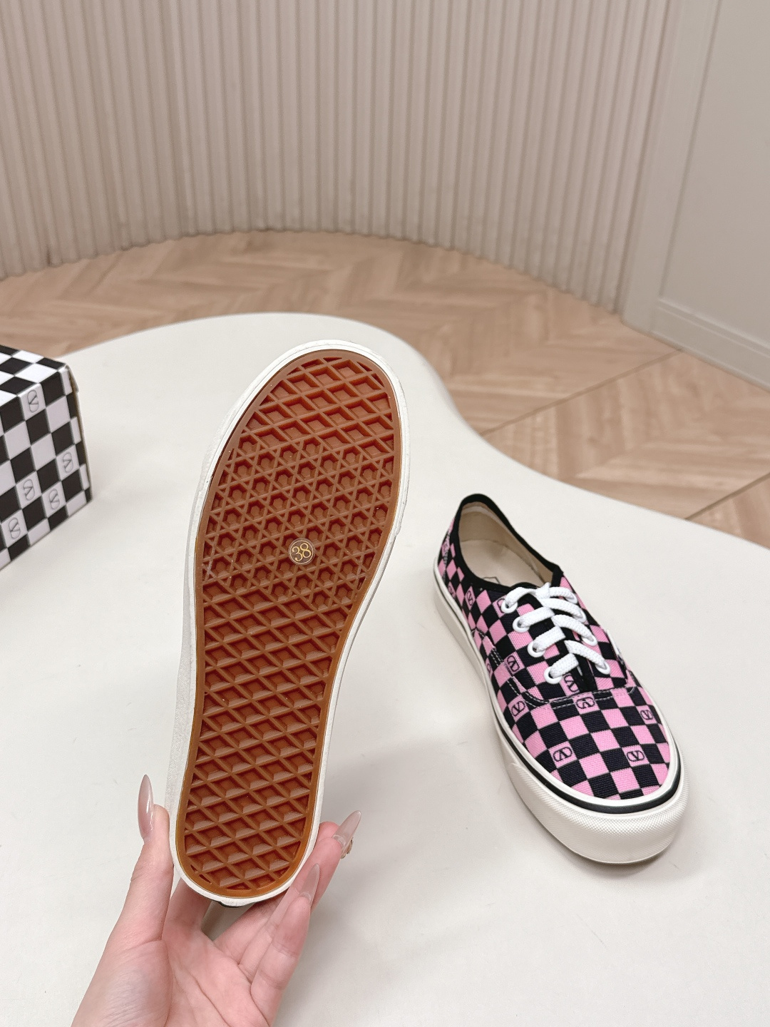 這款鞋子是AAAAA 1:1 質量(非常棒). 使用了和原版一模一樣的材料. 商標部分也保持了和瓦倫蒂諾/Valentino一樣. 圖片拍攝是實物鞋子拍攝, 您所收到的實物保證和我們圖片一模一樣.