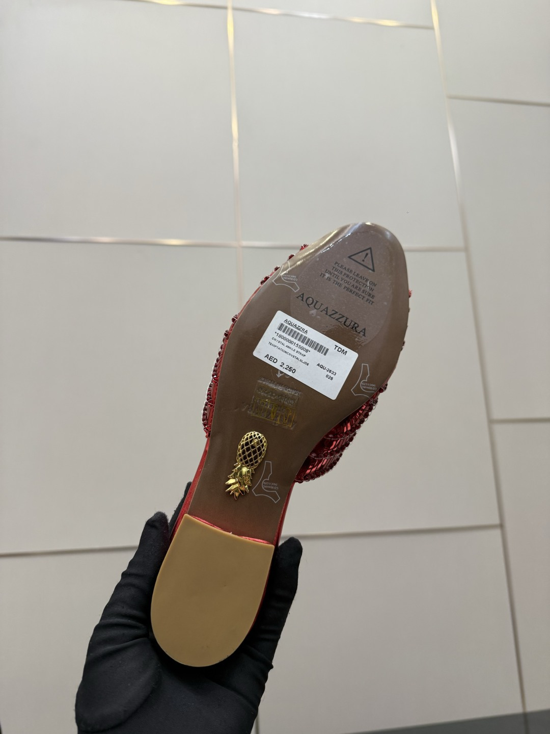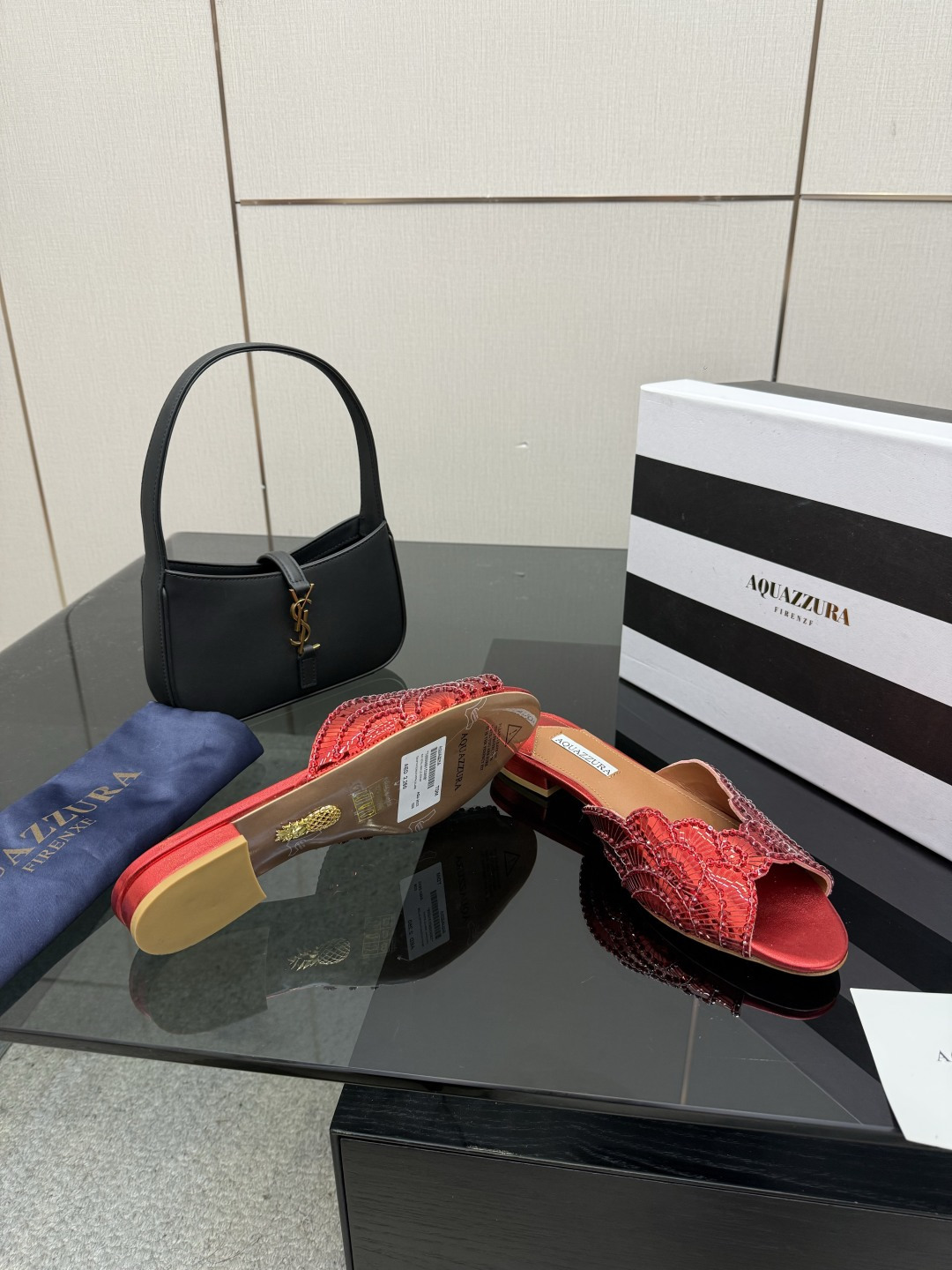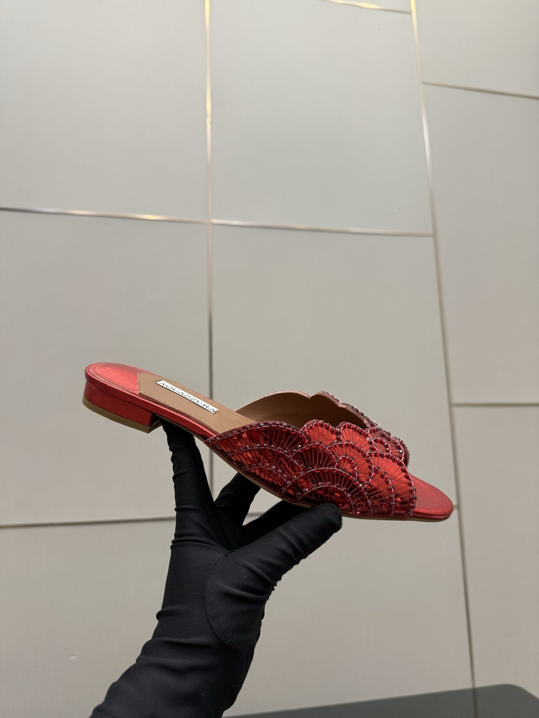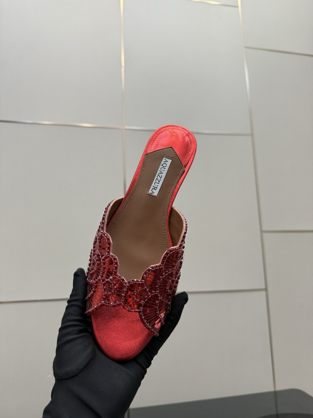 這款鞋子是AAAAA 1:1 質量(非常棒). 使用了和原版一模一樣的材料. 商標部分也保持了和Aquazzura一樣. 圖片拍攝是實物鞋子拍攝, 您所收到的實物保證和我們圖片一模一樣.