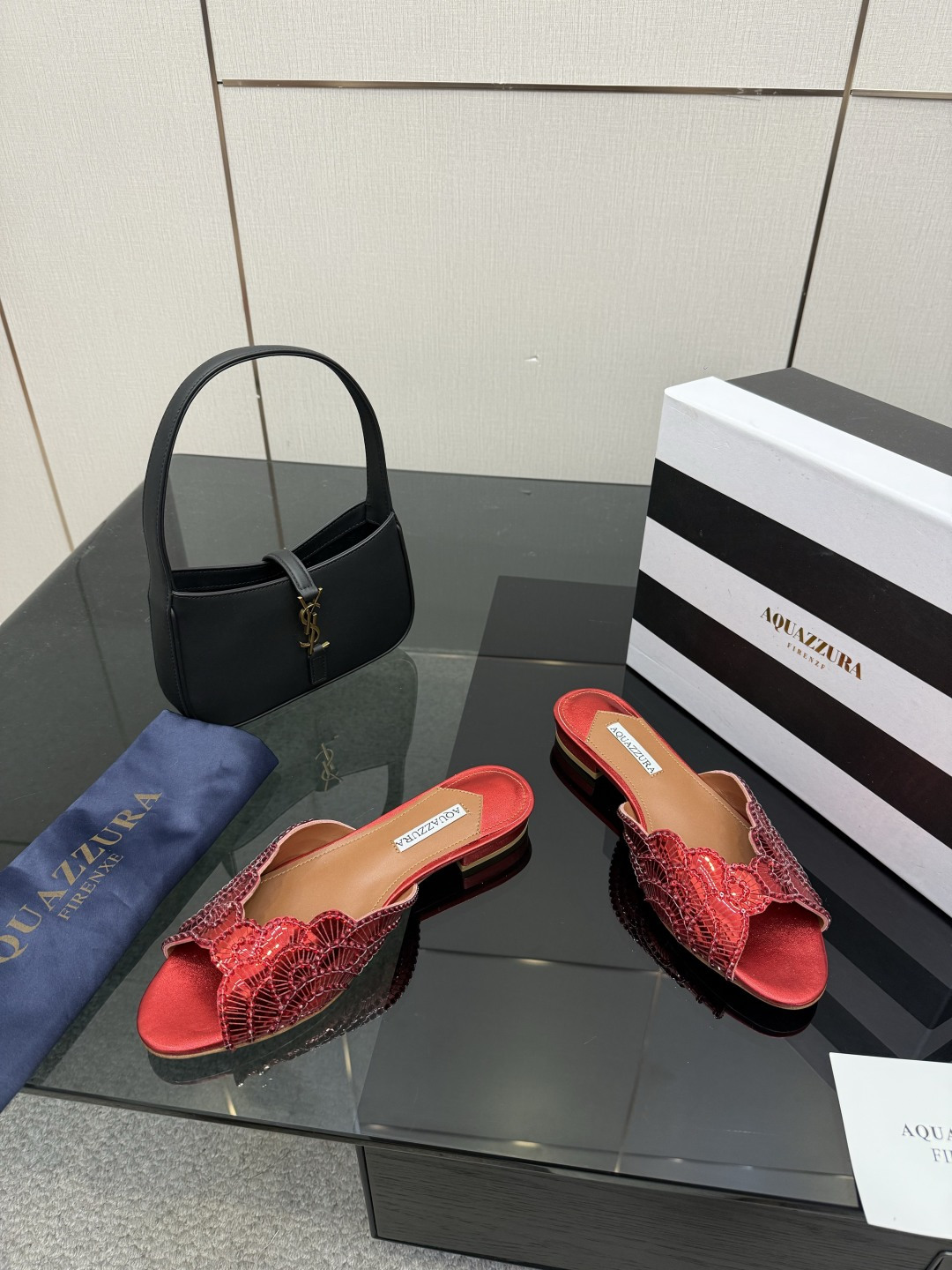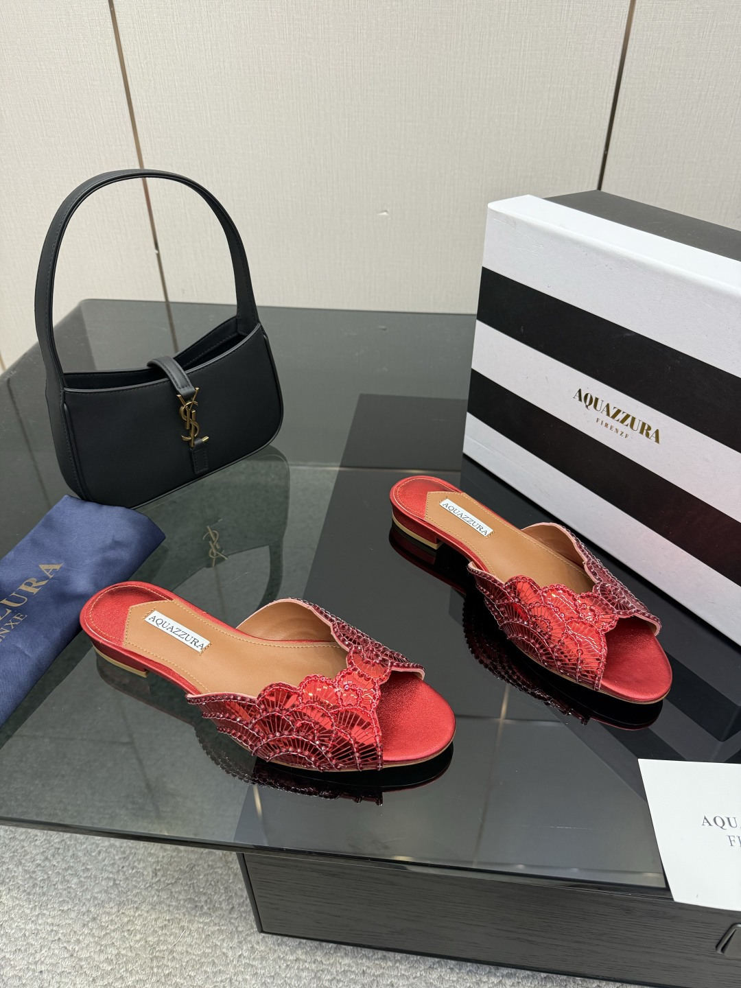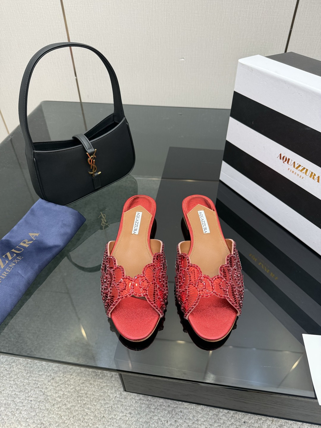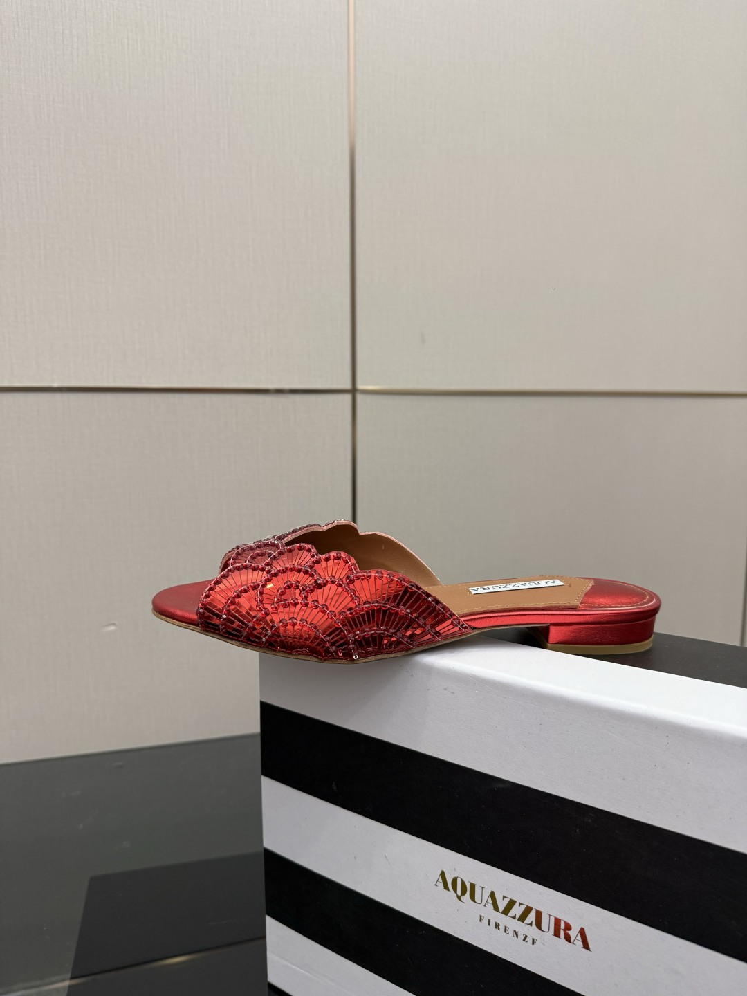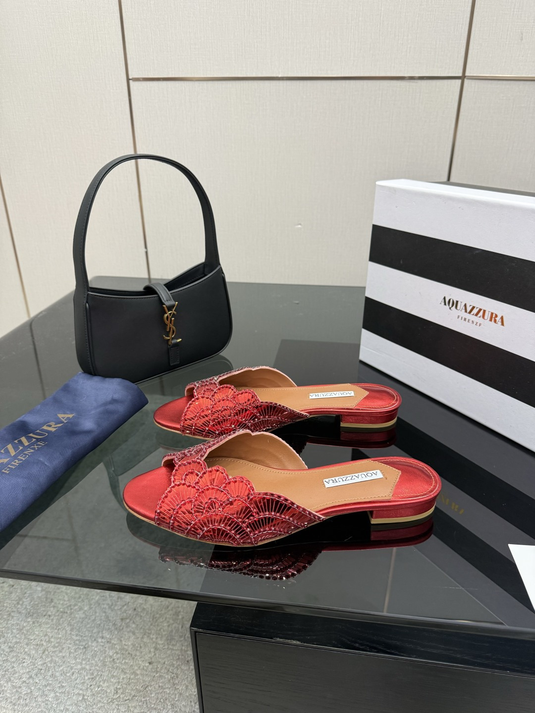 這款鞋子是AAAAA 1:1 質量(非常棒). 使用了和原版一模一樣的材料. 商標部分也保持了和Aquazzura一樣. 圖片拍攝是實物鞋子拍攝, 您所收到的實物保證和我們圖片一模一樣.