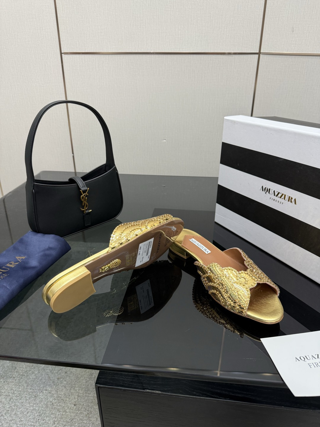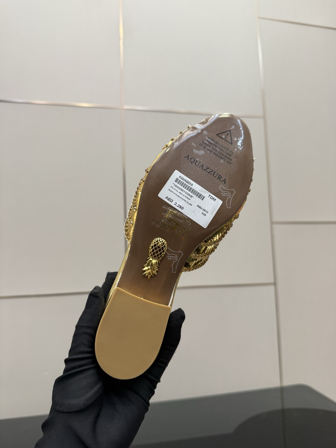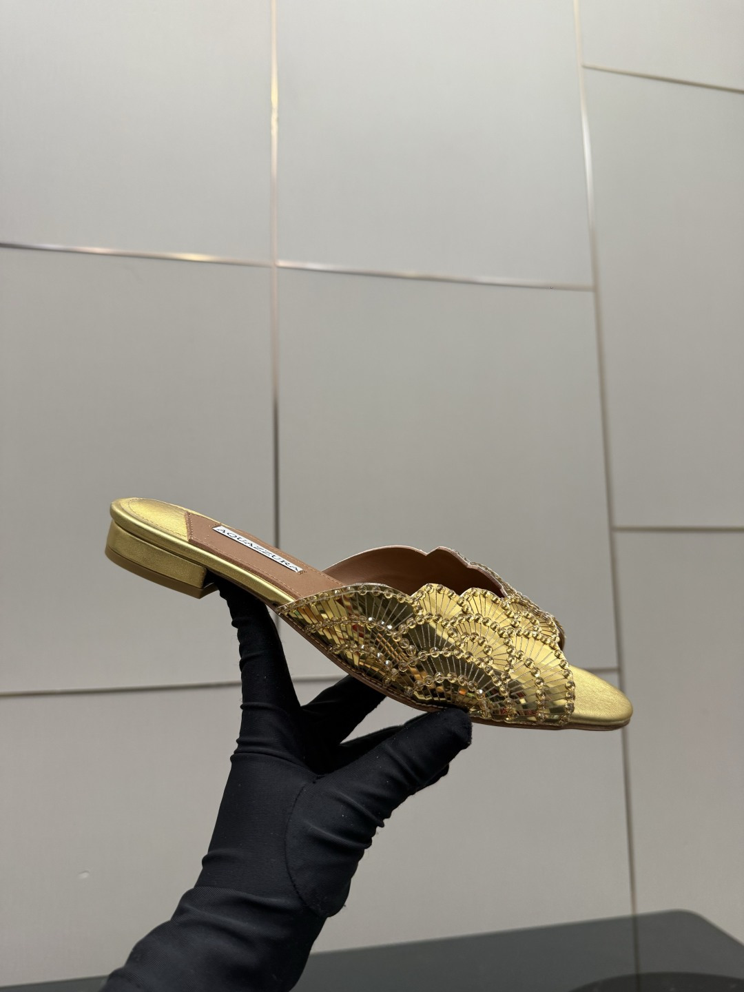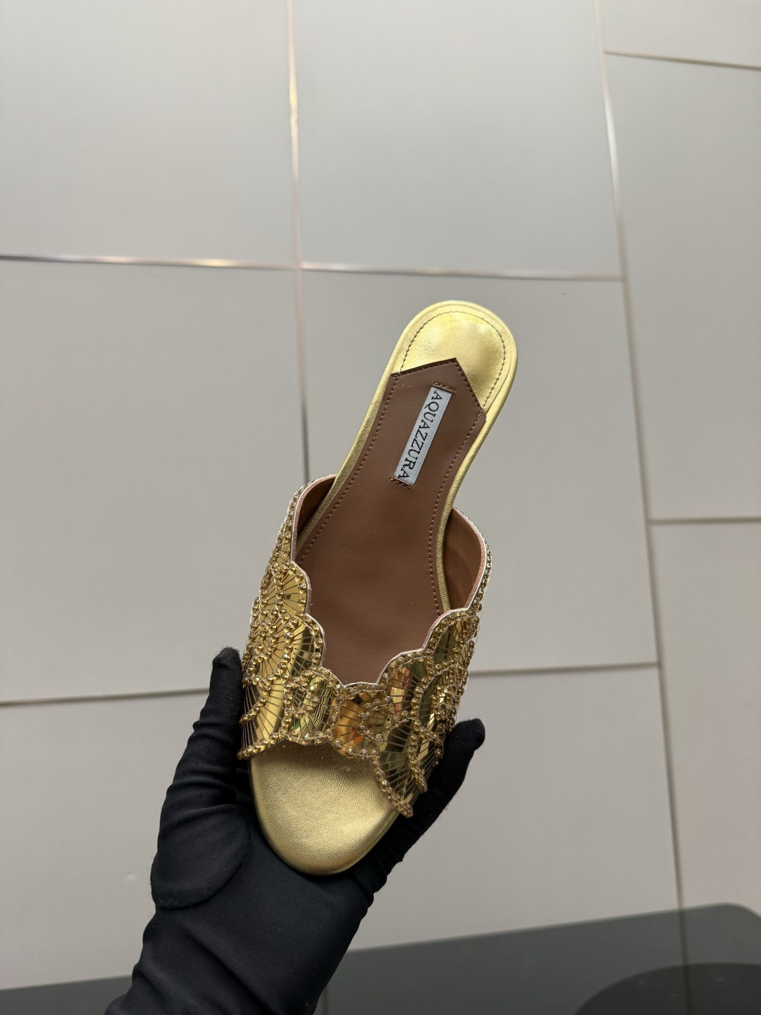 這款鞋子是AAAAA 1:1 質量(非常棒). 使用了和原版一模一樣的材料. 商標部分也保持了和Aquazzura一樣. 圖片拍攝是實物鞋子拍攝, 您所收到的實物保證和我們圖片一模一樣.
