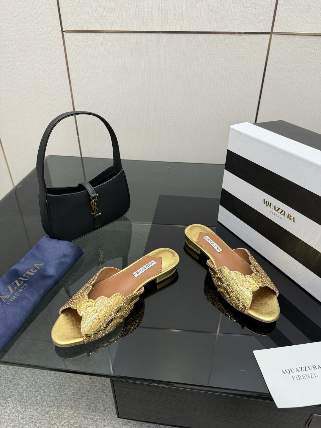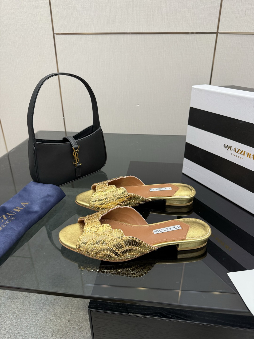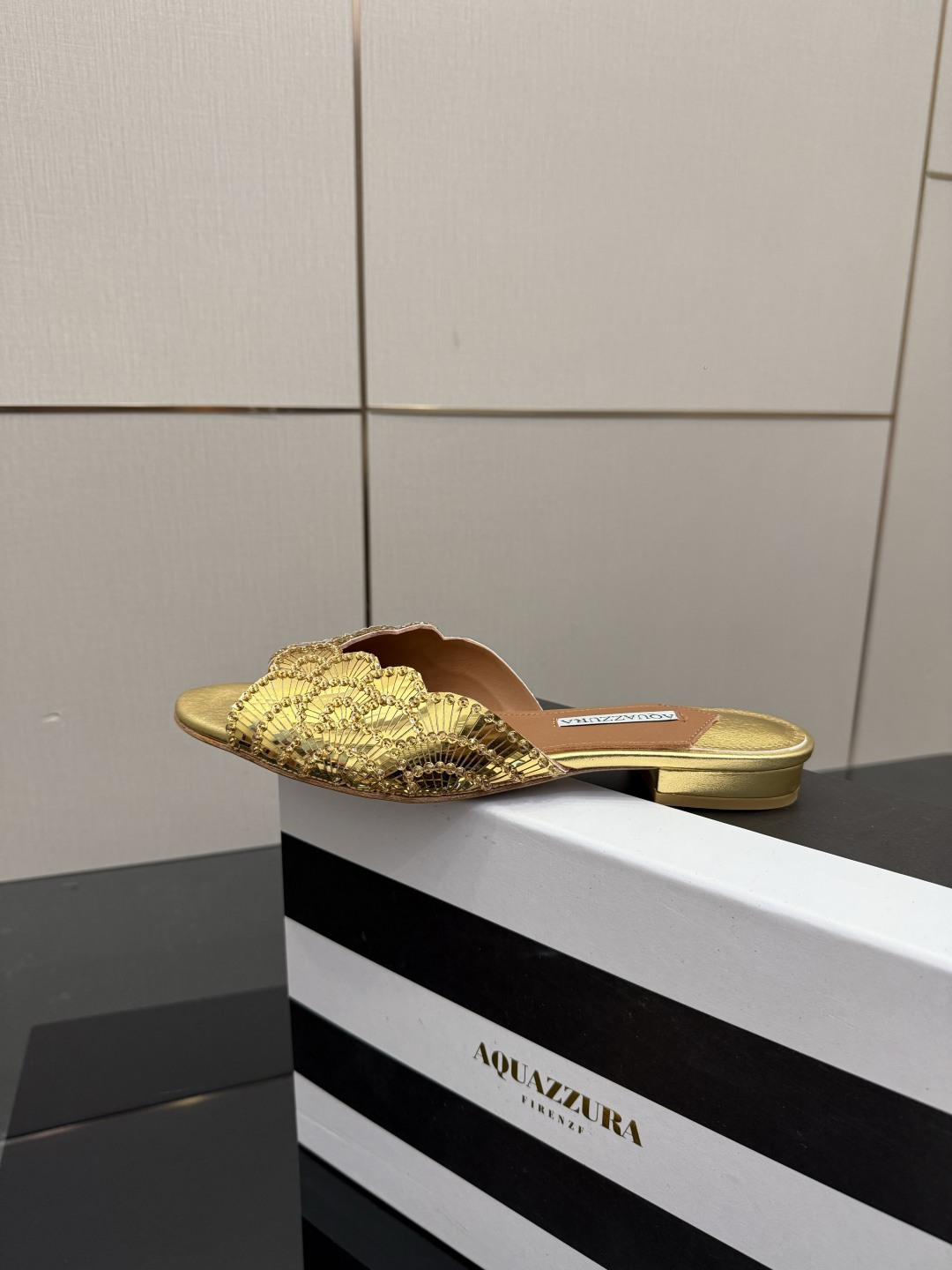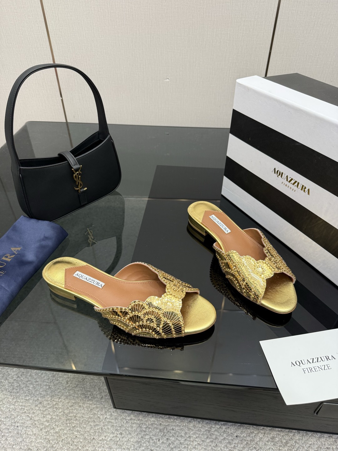 這款鞋子是AAAAA 1:1 質量(非常棒). 使用了和原版一模一樣的材料. 商標部分也保持了和Aquazzura一樣. 圖片拍攝是實物鞋子拍攝, 您所收到的實物保證和我們圖片一模一樣.