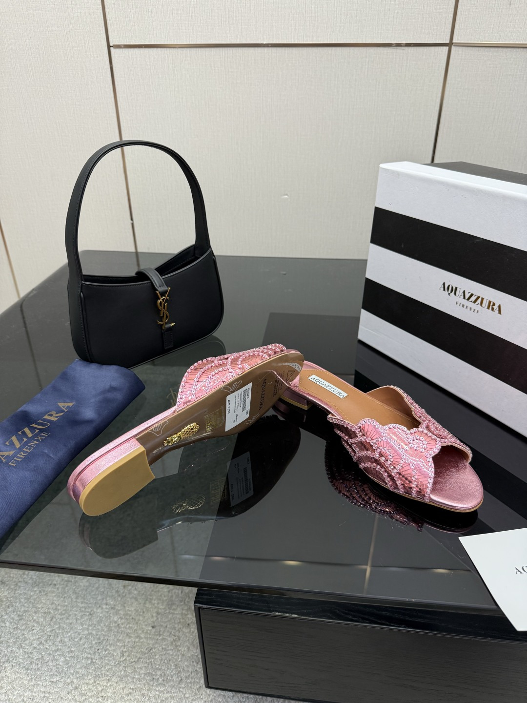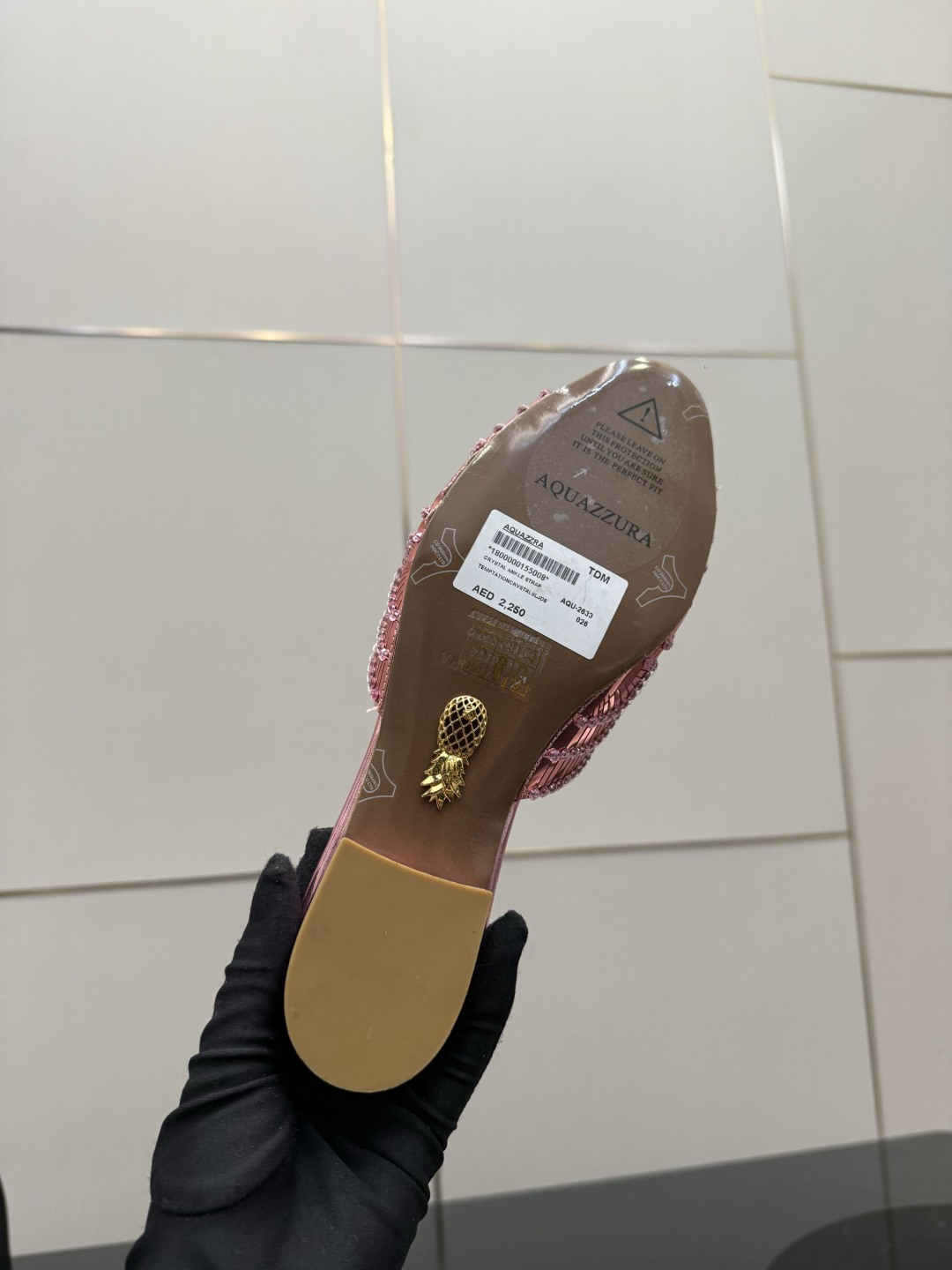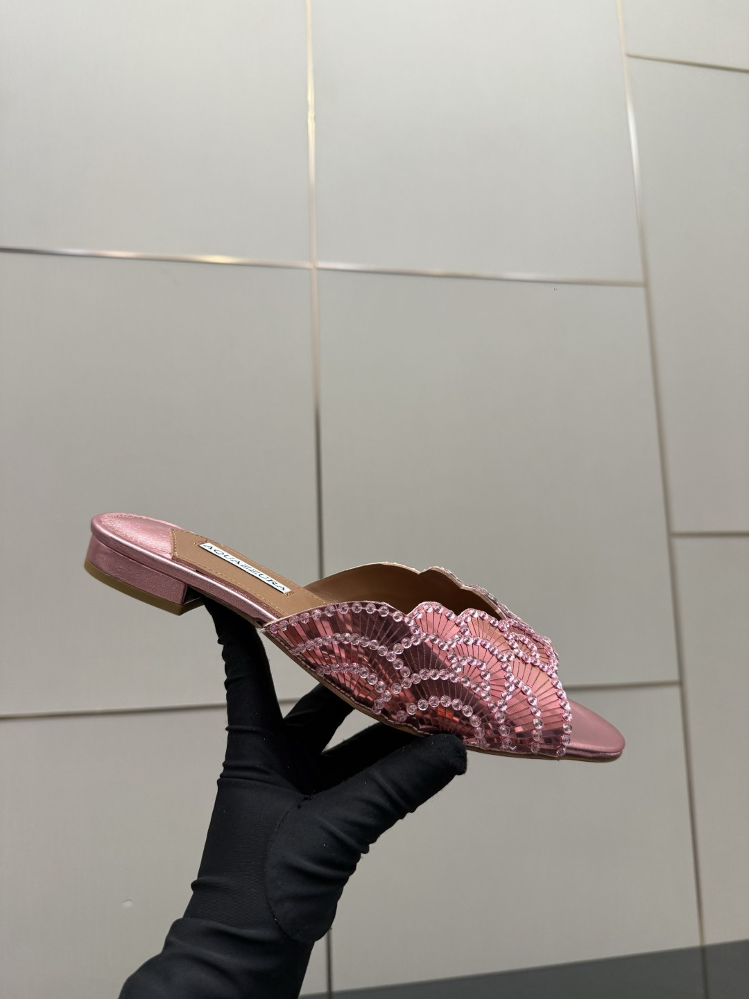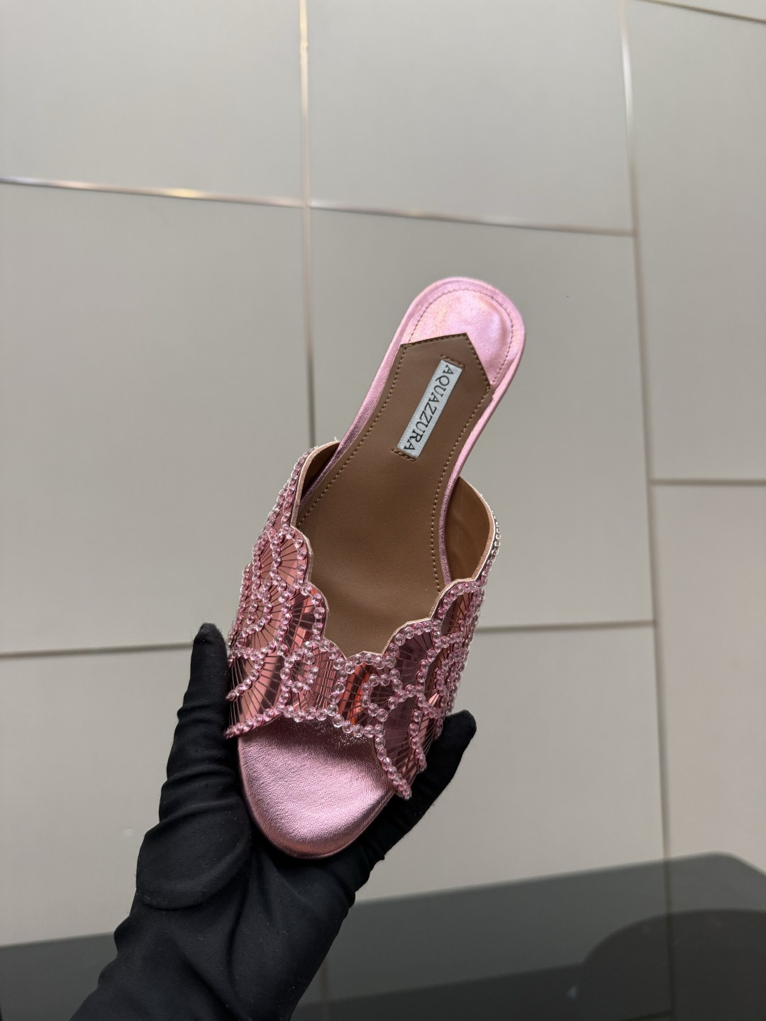這款鞋子是AAAAA 1:1 質量(非常棒). 使用了和原版一模一樣的材料. 商標部分也保持了和Aquazzura一樣. 圖片拍攝是實物鞋子拍攝, 您所收到的實物保證和我們圖片一模一樣.