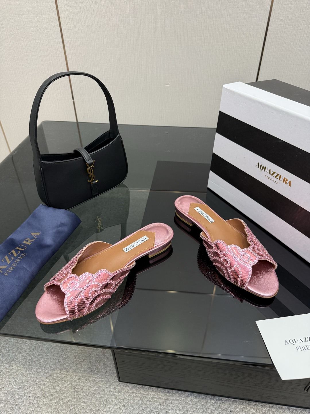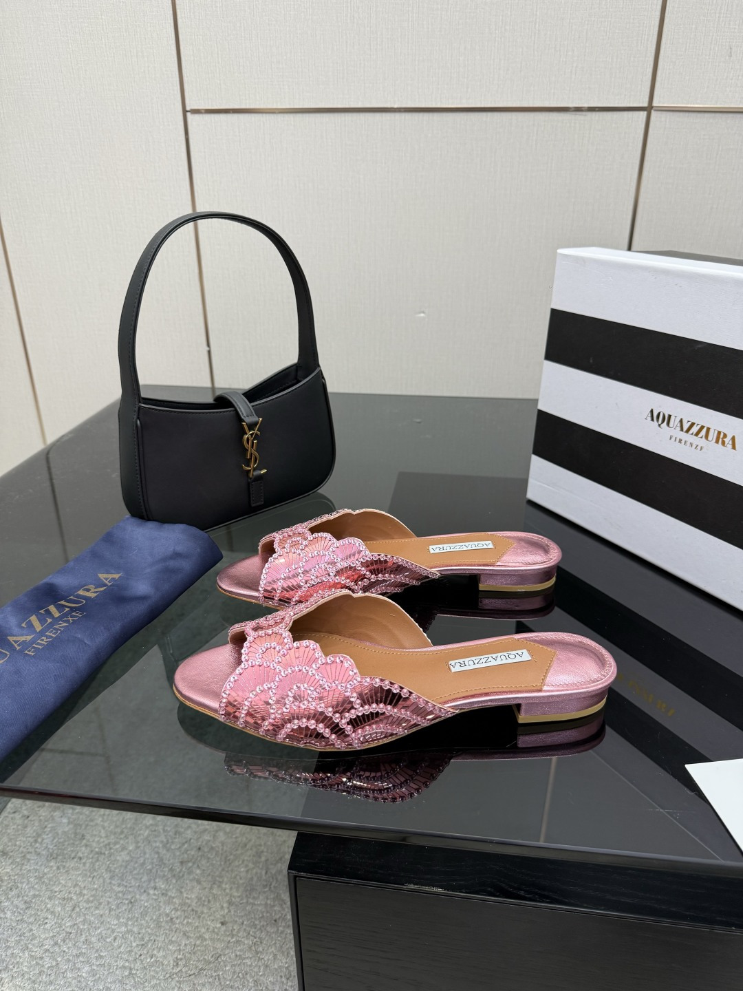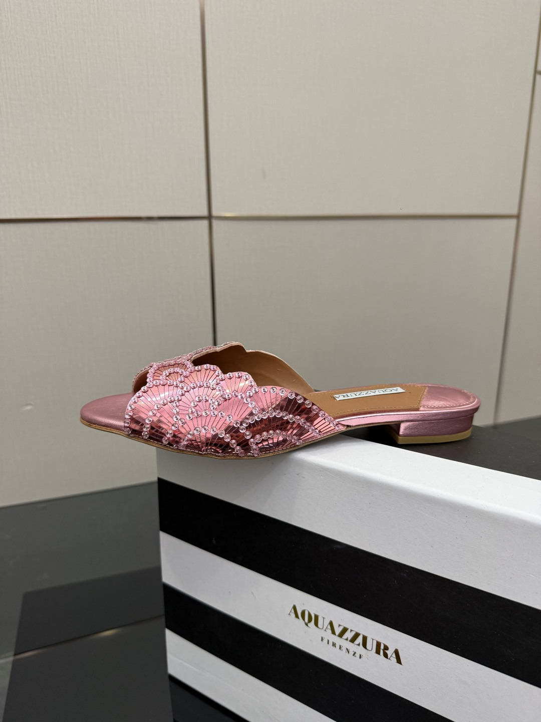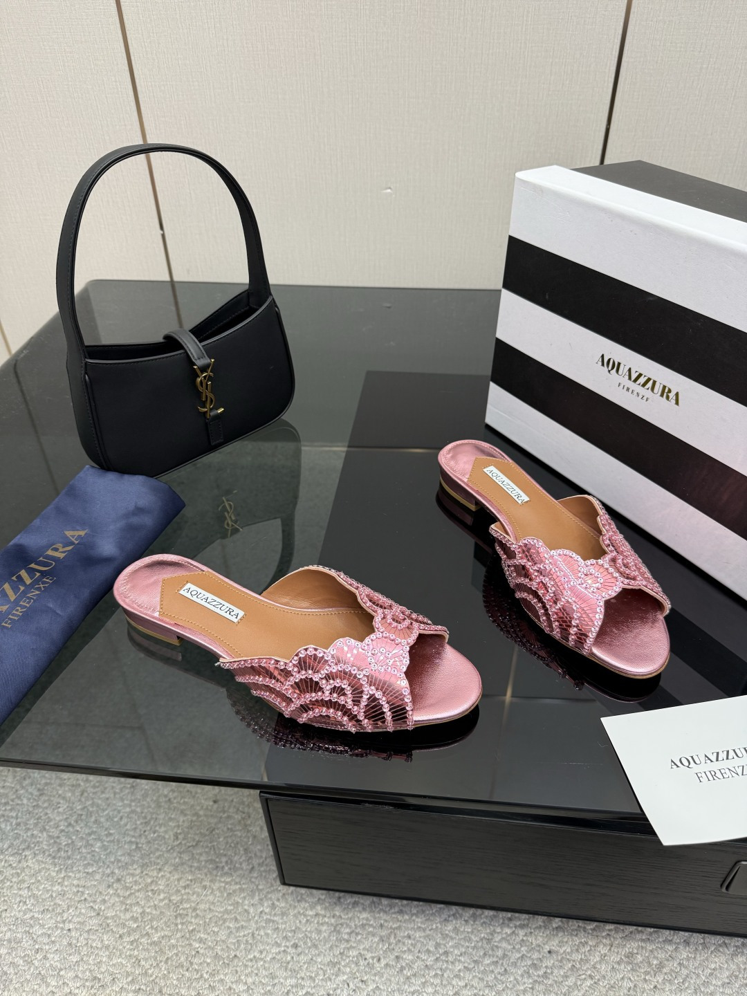 這款鞋子是AAAAA 1:1 質量(非常棒). 使用了和原版一模一樣的材料. 商標部分也保持了和Aquazzura一樣. 圖片拍攝是實物鞋子拍攝, 您所收到的實物保證和我們圖片一模一樣.