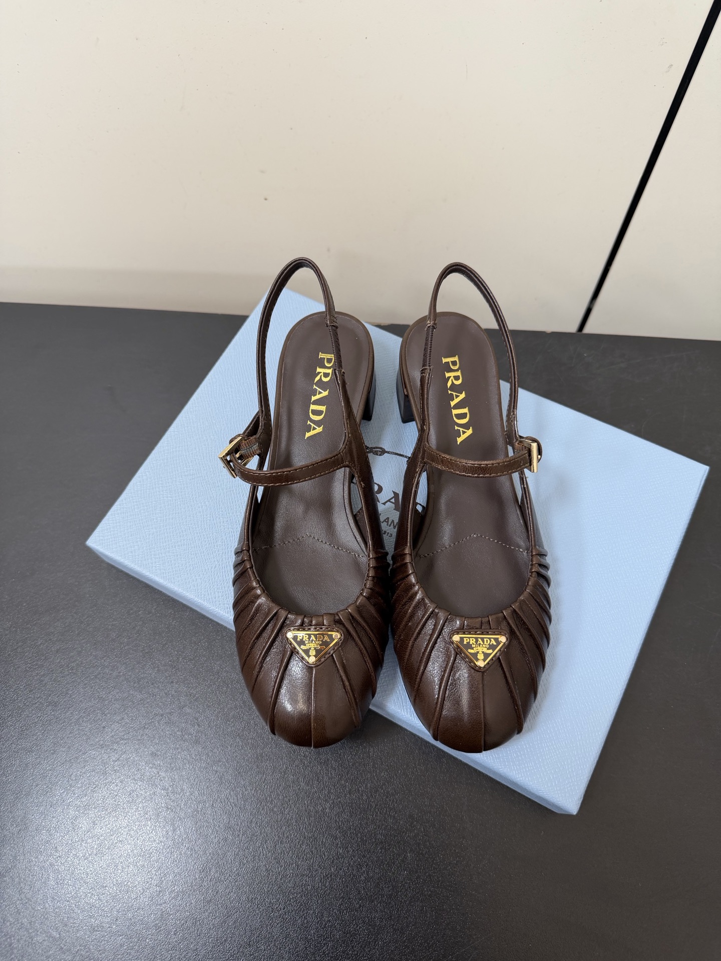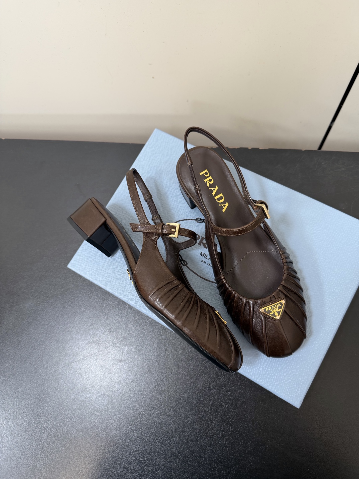 這款鞋子是AAAAA 1:1 質量(非常棒). 使用了和原版一模一樣的材料. 商標部分也保持了和普拉達/Prada一樣. 圖片拍攝是實物鞋子拍攝, 您所收到的實物保證和我們圖片一模一樣.