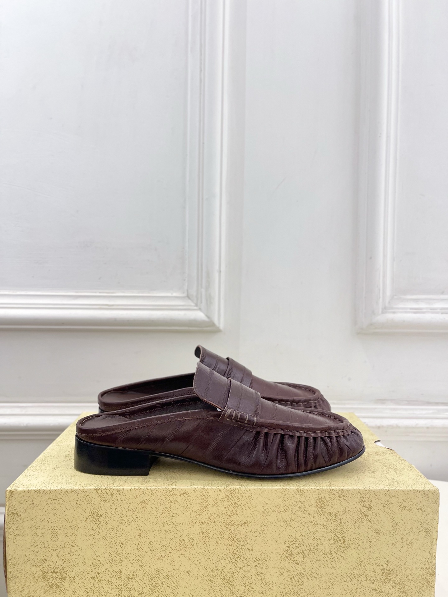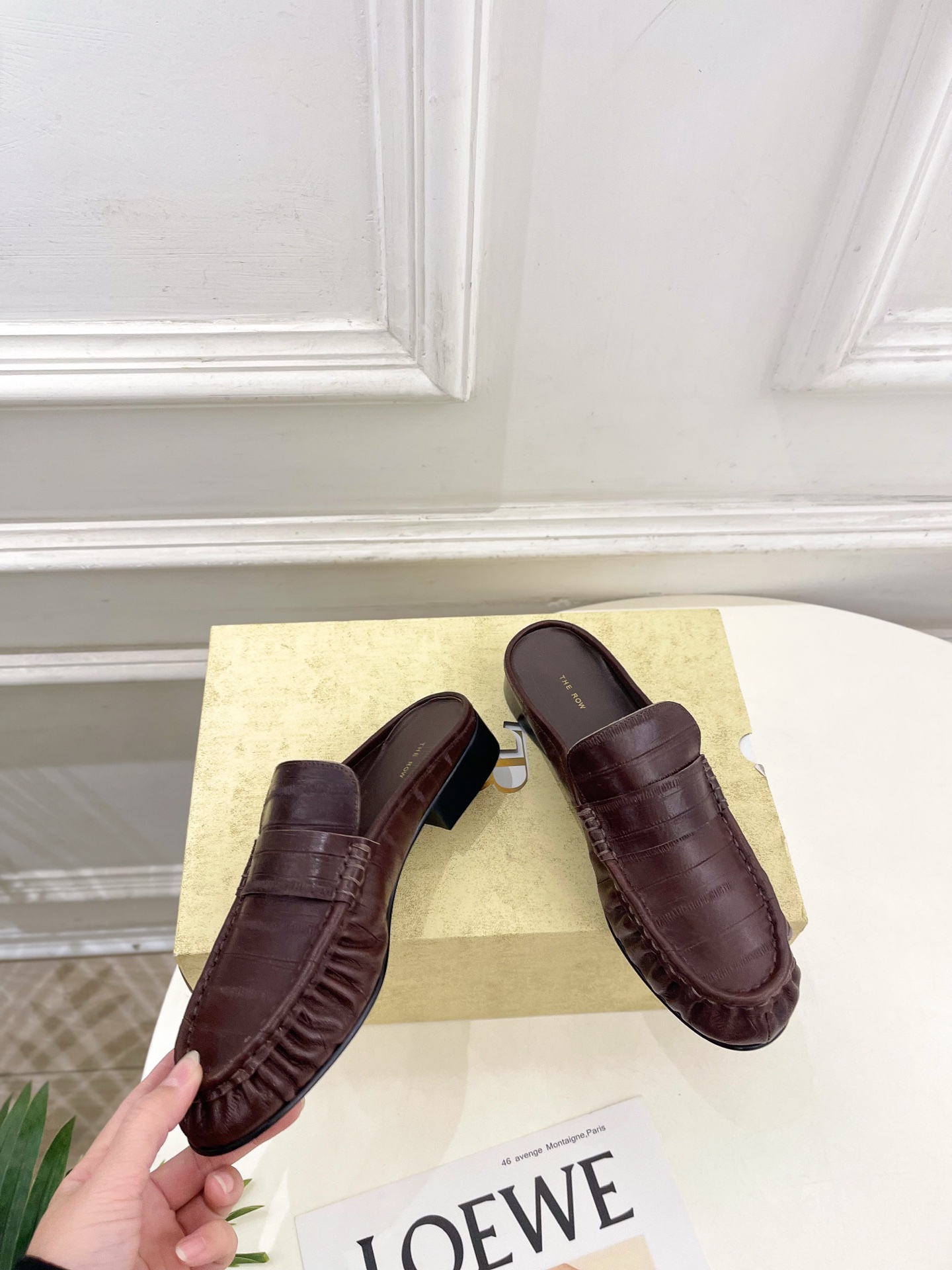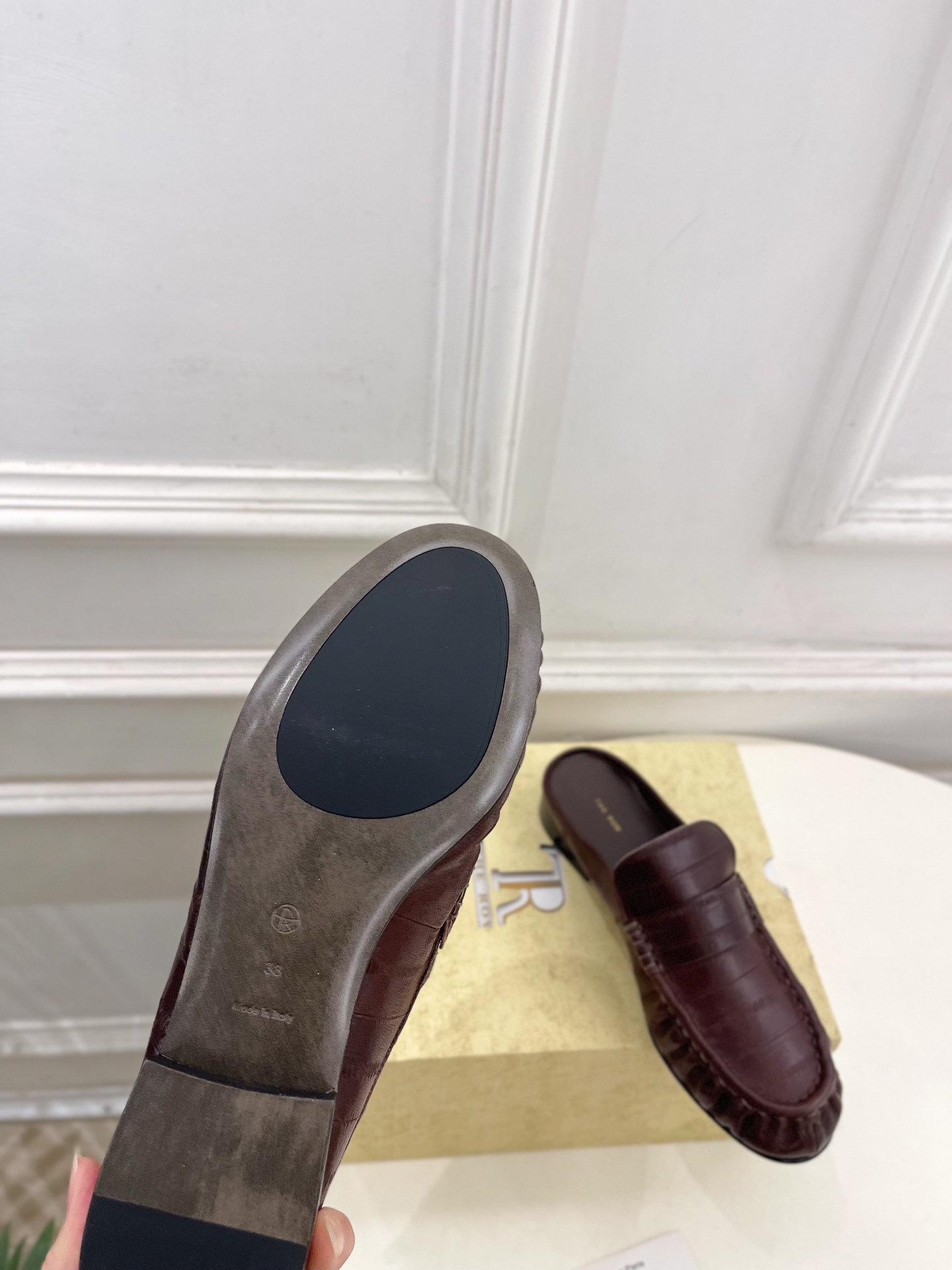 這款鞋子是AAAAA 1:1 質量(非常棒). 使用了和原版一模一樣的材料. 商標部分也保持了和The Row一樣. 圖片拍攝是實物鞋子拍攝, 您所收到的實物保證和我們圖片一模一樣.