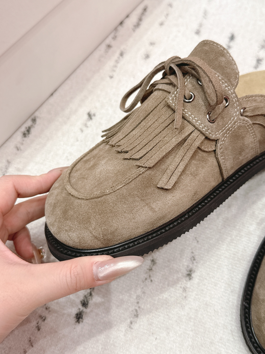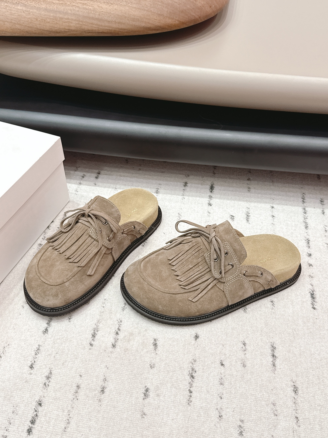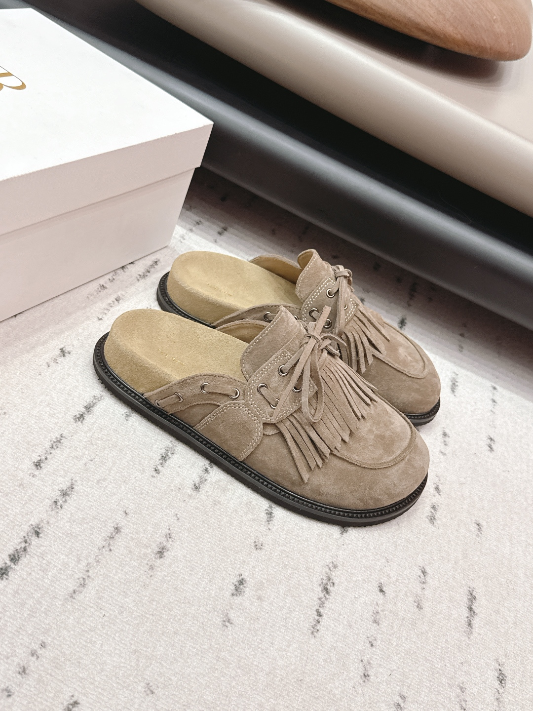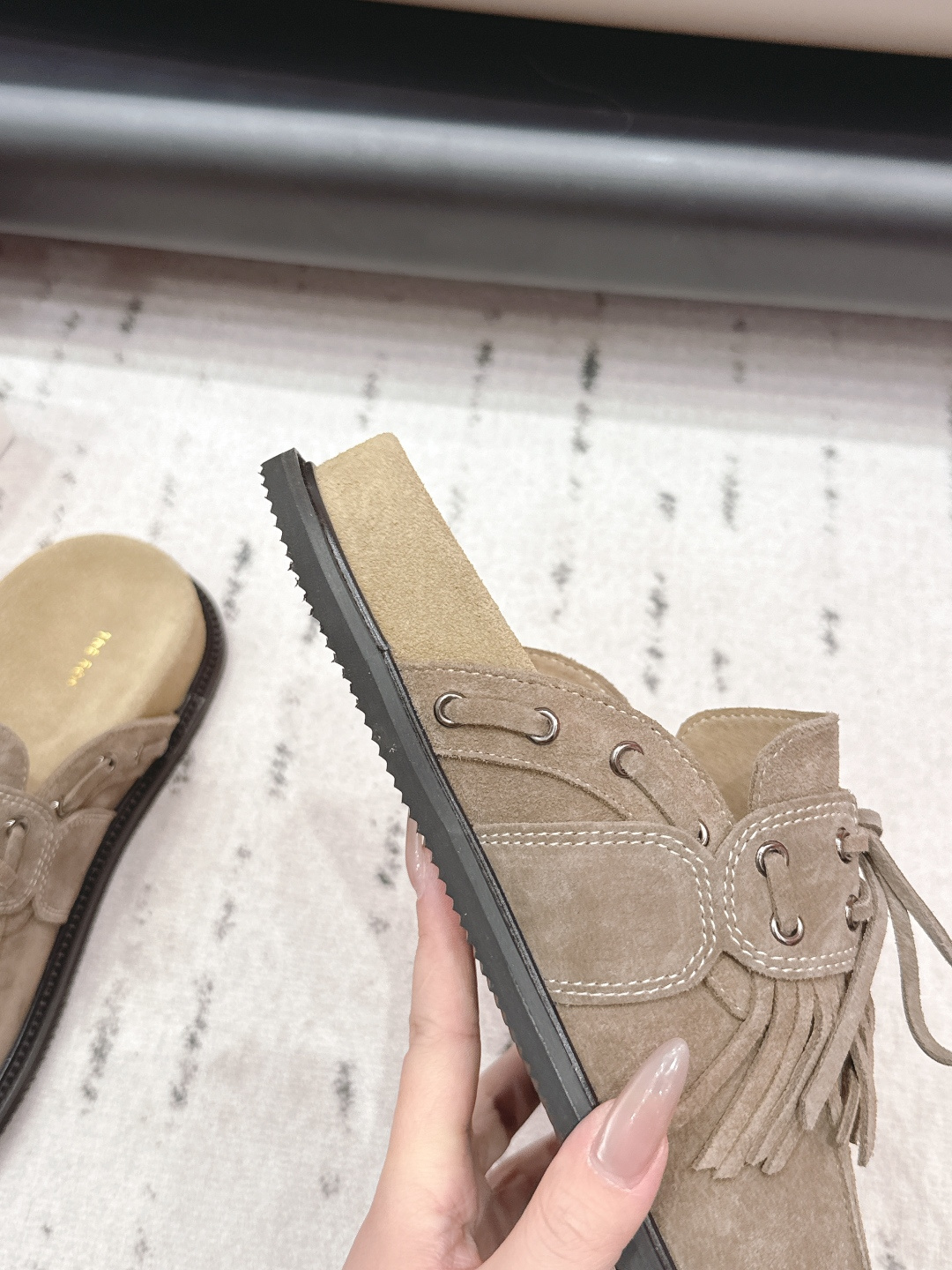 這款鞋子是AAAAA 1:1 質量(非常棒). 使用了和原版一模一樣的材料. 商標部分也保持了和The Row一樣. 圖片拍攝是實物鞋子拍攝, 您所收到的實物保證和我們圖片一模一樣.