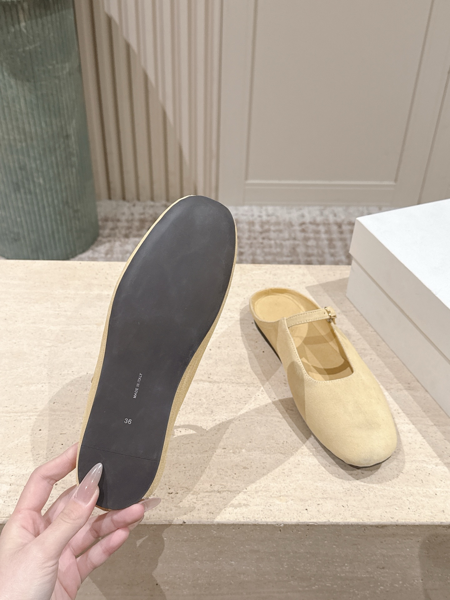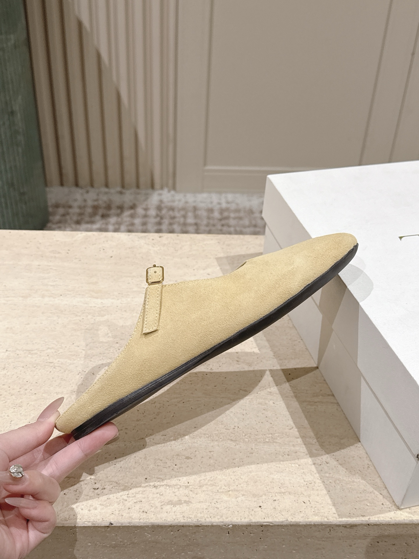 這款鞋子是AAAAA 1:1 質量(非常棒). 使用了和原版一模一樣的材料. 商標部分也保持了和The Row一樣. 圖片拍攝是實物鞋子拍攝, 您所收到的實物保證和我們圖片一模一樣.
