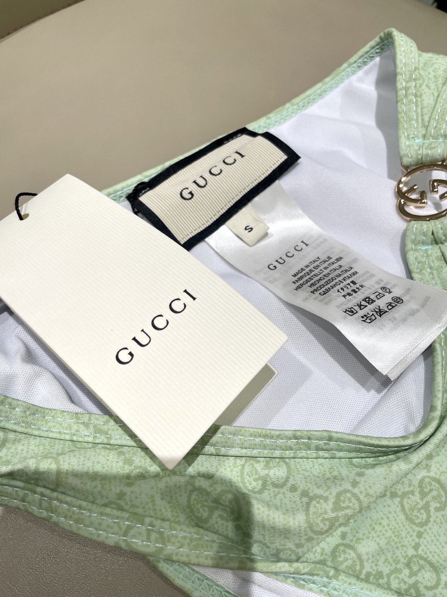 這款衣服是AAAAA 1:1 質量(非常棒). 使用了和原版一模一樣的材料. 商標部分也保持了和古奇/Gucci一樣. 圖片拍攝是實物衣服拍攝, 您所收到的實物保證和我們圖片一模一樣.