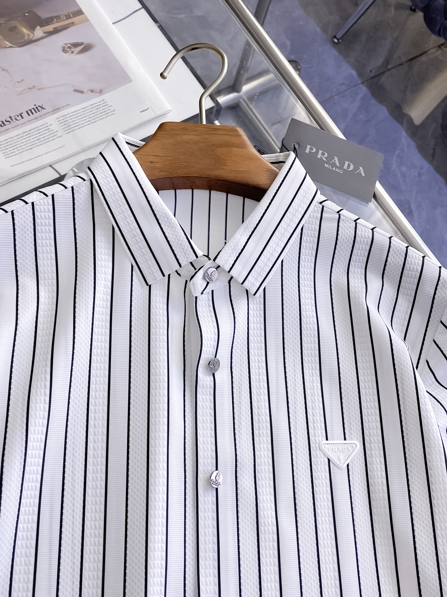 這款衣服是AAAAA 1:1 質量(非常棒). 使用了和原版一模一樣的材料. 商標部分也保持了和普拉達/Prada一樣. 圖片拍攝是實物衣服拍攝, 您所收到的實物保證和我們圖片一模一樣.