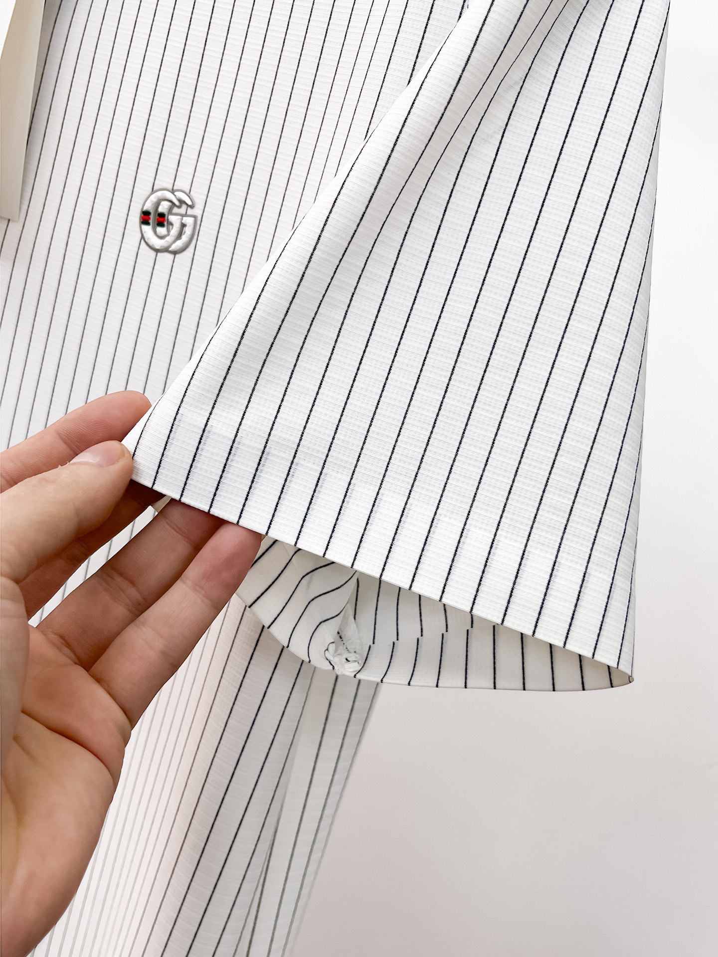這款衣服是AAAAA 1:1 質量(非常棒). 使用了和原版一模一樣的材料. 商標部分也保持了和古奇/Gucci一樣. 圖片拍攝是實物衣服拍攝, 您所收到的實物保證和我們圖片一模一樣.