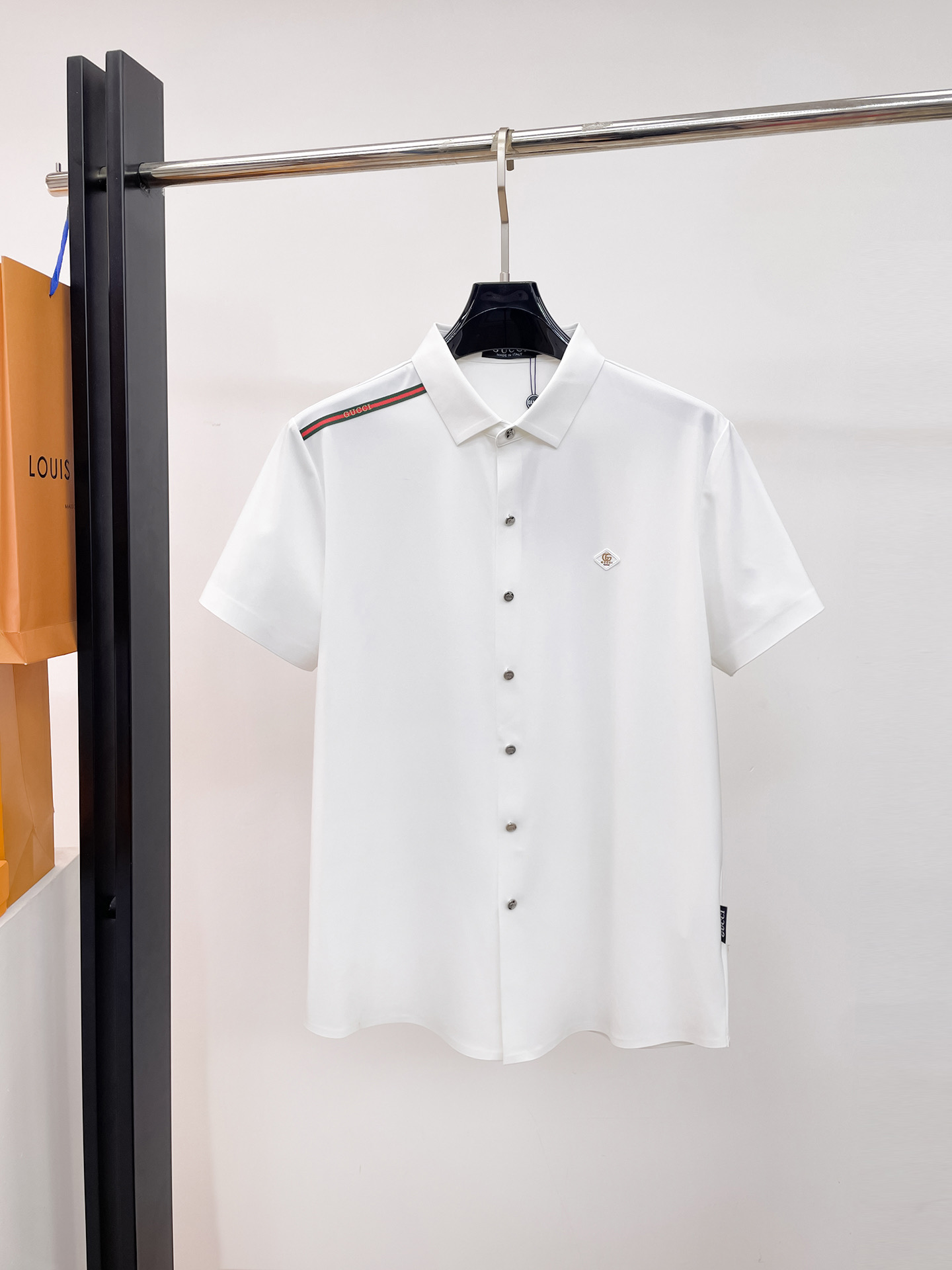 這款衣服是AAAAA 1:1 質量(非常棒). 使用了和原版一模一樣的材料. 商標部分也保持了和古奇/Gucci一樣. 圖片拍攝是實物衣服拍攝, 您所收到的實物保證和我們圖片一模一樣.