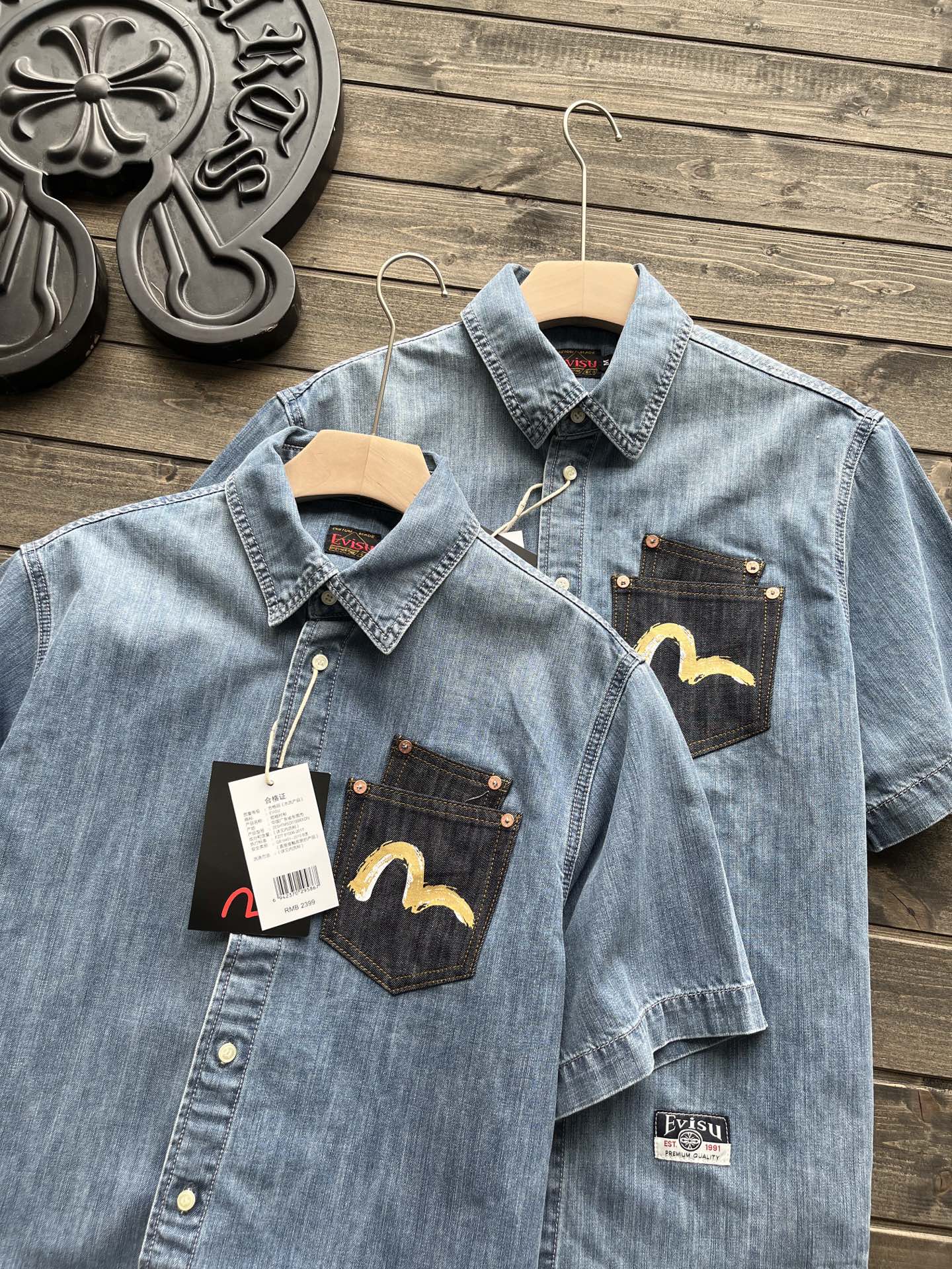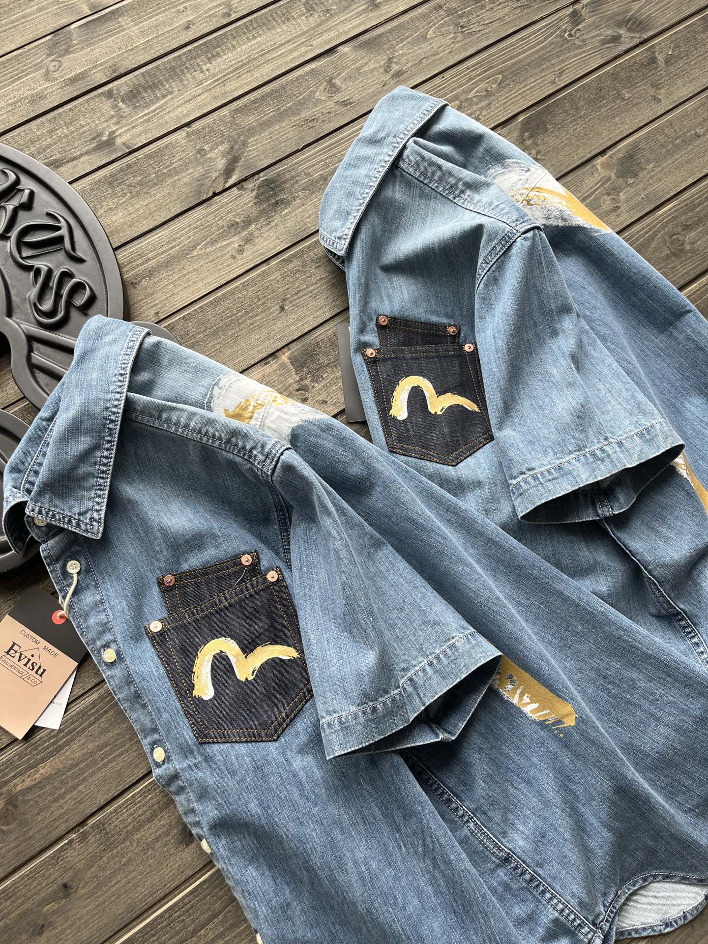 這款衣服是AAAAA 1:1 質量(非常棒). 使用了和原版一模一樣的材料. 商標部分也保持了和EVISU一樣. 圖片拍攝是實物衣服拍攝, 您所收到的實物保證和我們圖片一模一樣.
