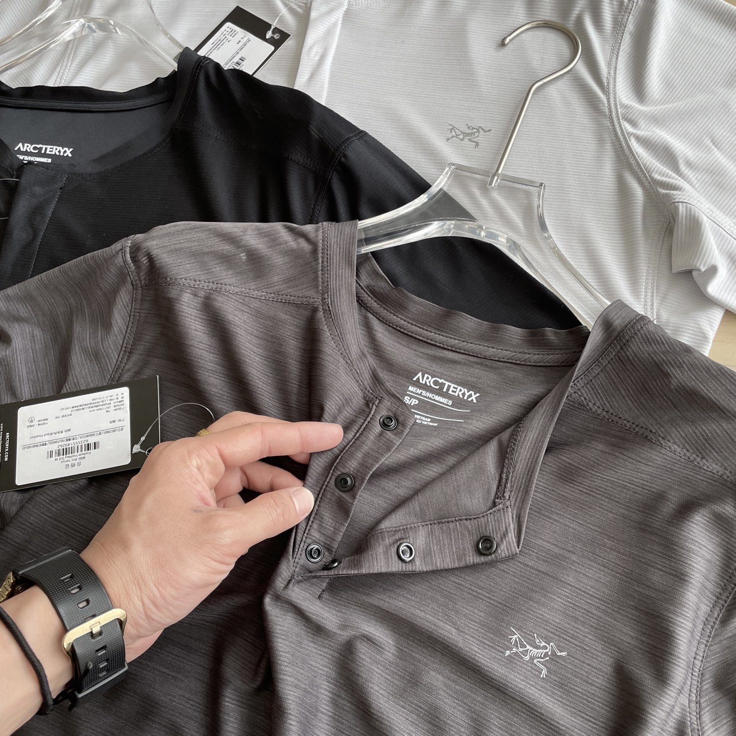 這款衣服是AAAAA 1:1 質量(非常棒). 使用了和原版一模一樣的材料. 商標部分也保持了和ARC'TERYX一樣. 圖片拍攝是實物衣服拍攝, 您所收到的實物保證和我們圖片一模一樣.