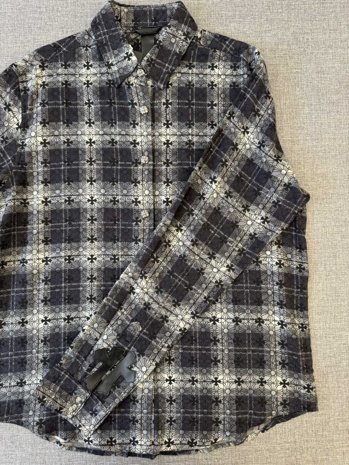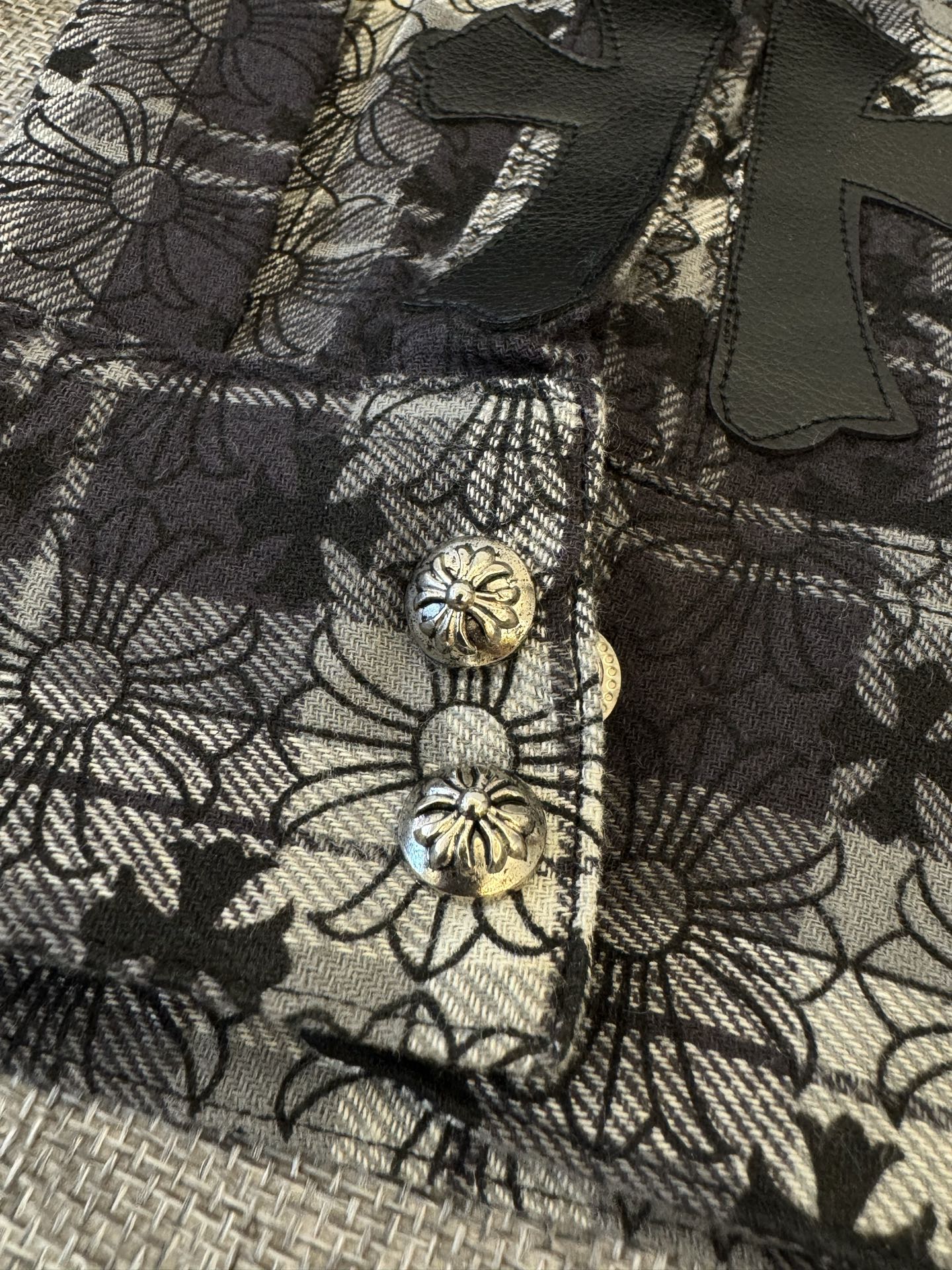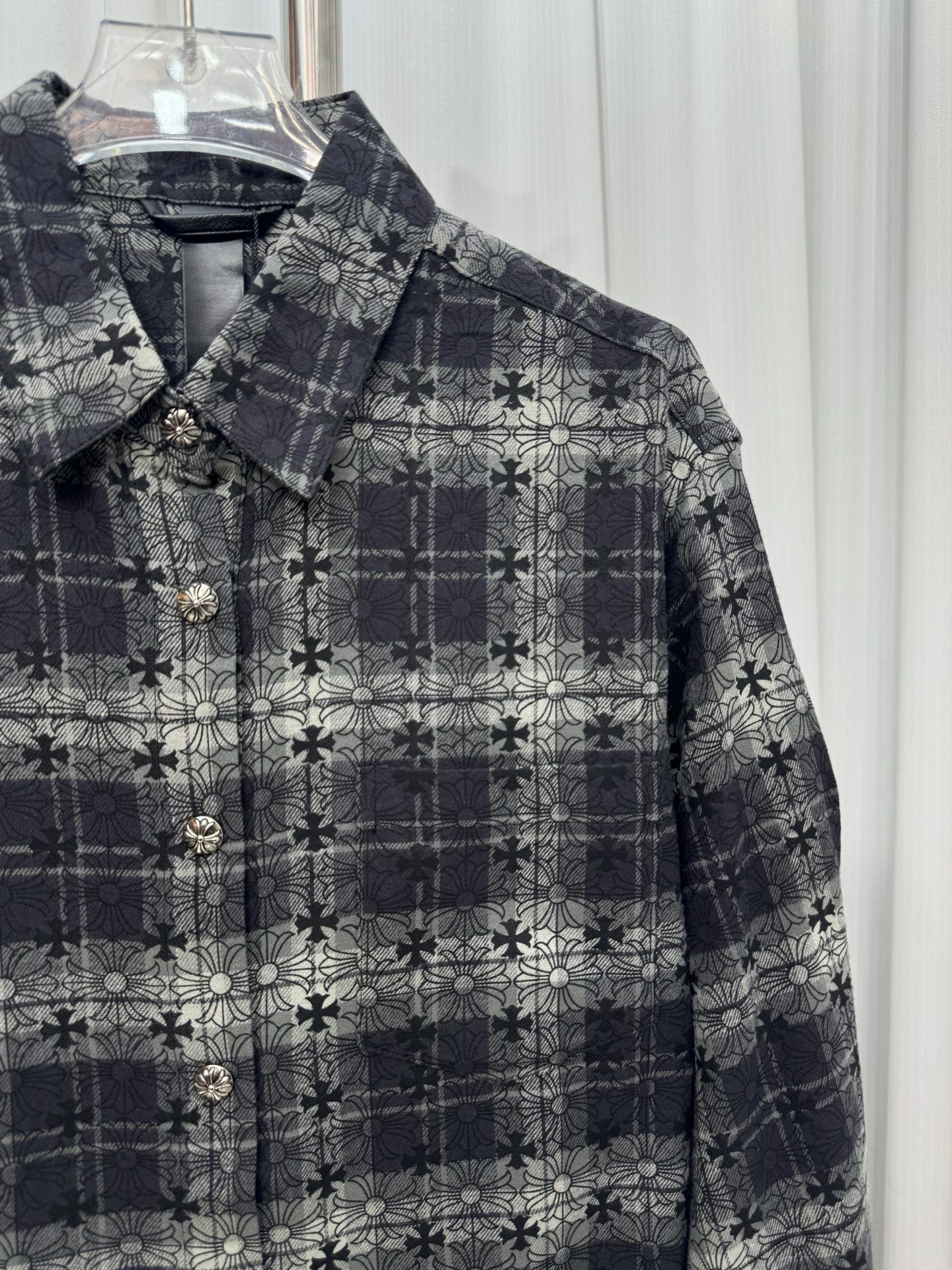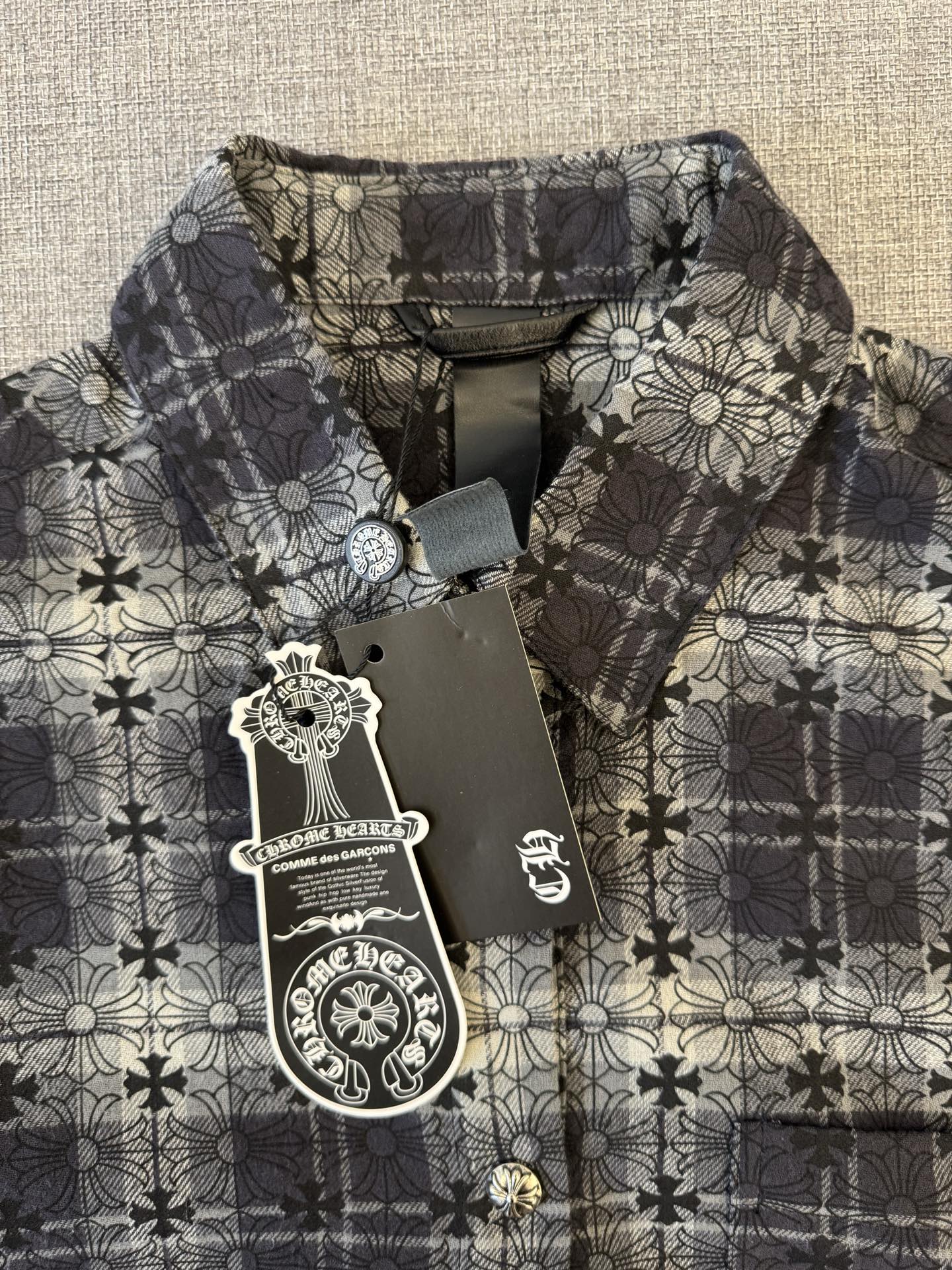 這款衣服是AAAAA 1:1 質量(非常棒). 使用了和原版一模一樣的材料. 商標部分也保持了和鉻心/Chrome Hearts一樣. 圖片拍攝是實物衣服拍攝, 您所收到的實物保證和我們圖片一模一樣.